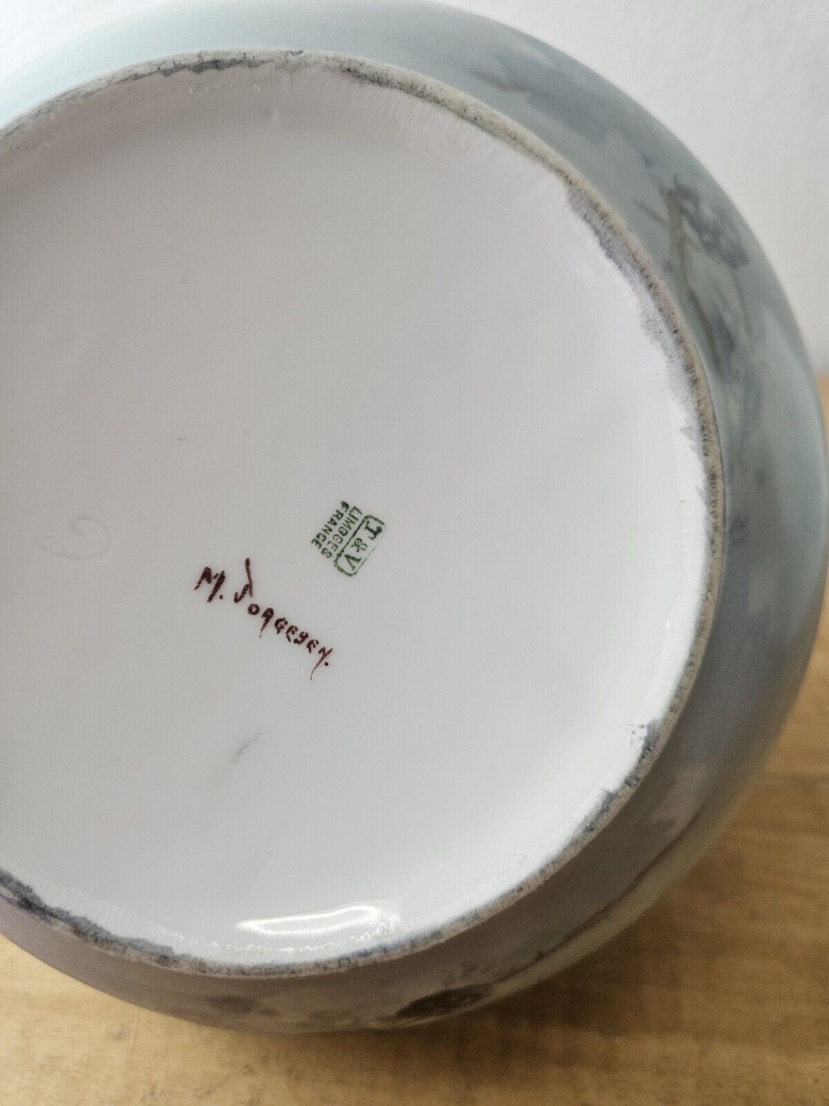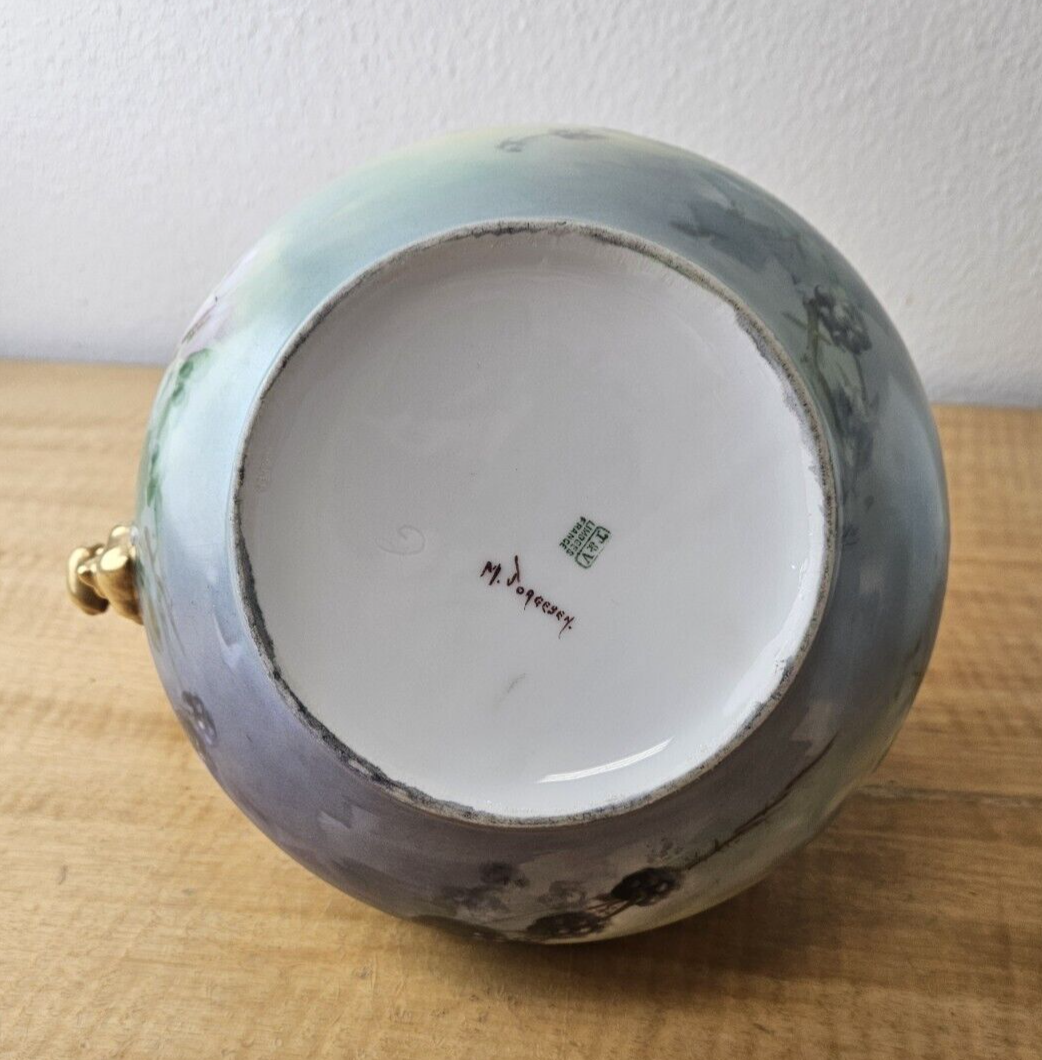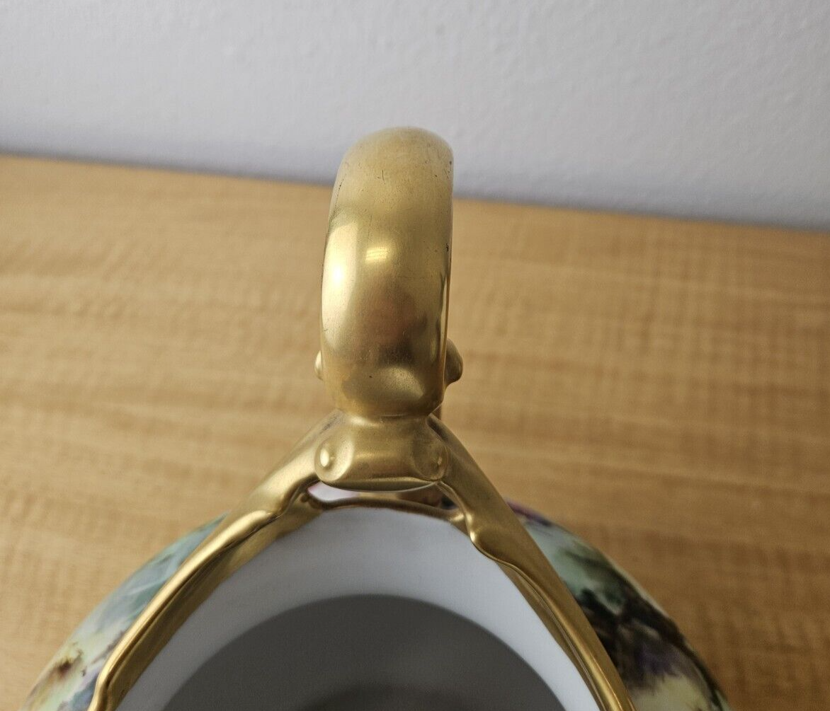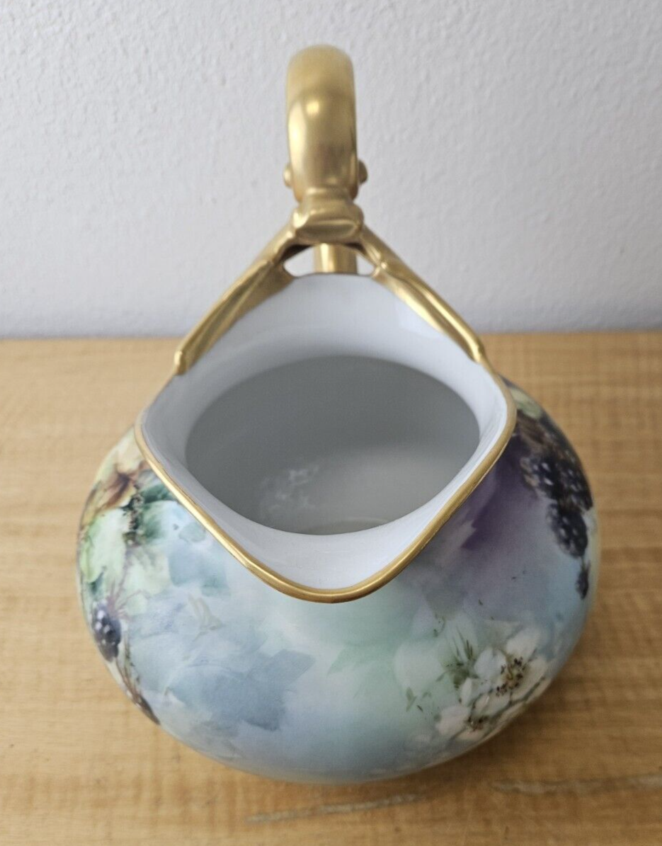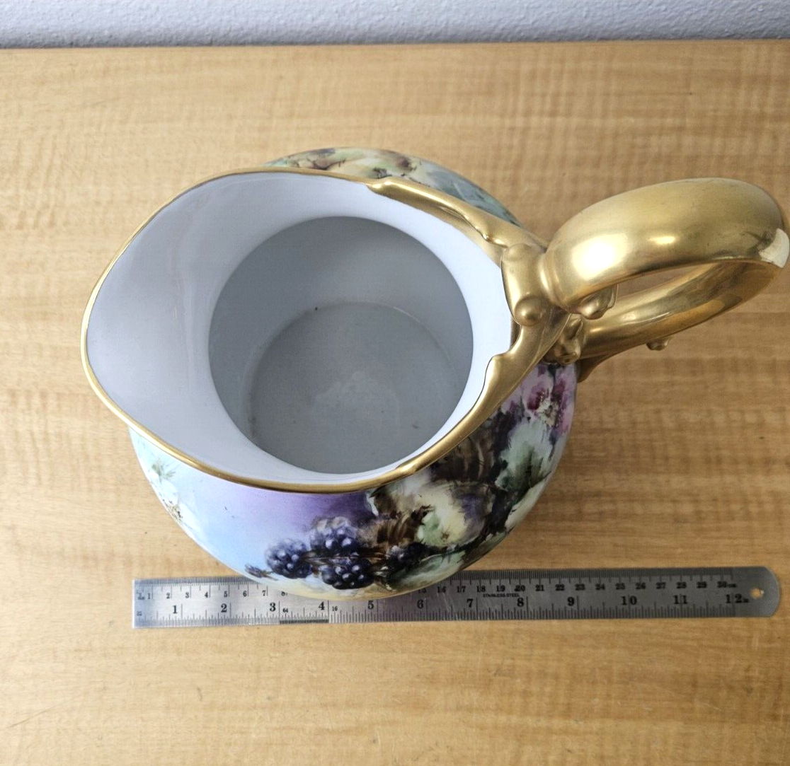 LIMOGES France large pitcher Purple Floral with Gold handle and trim