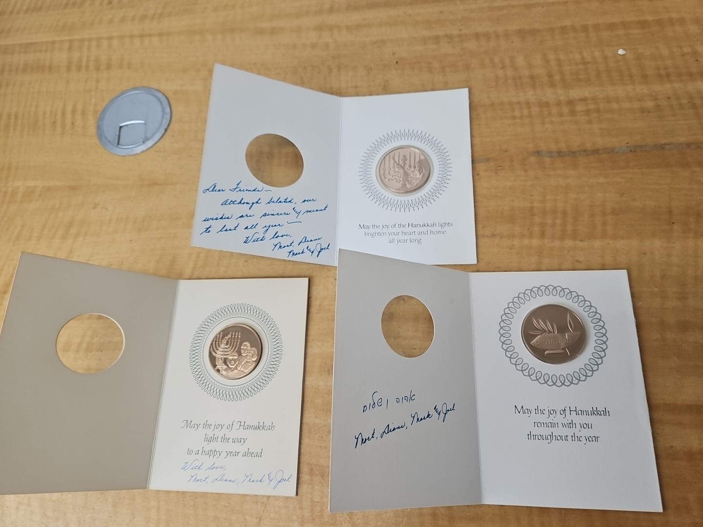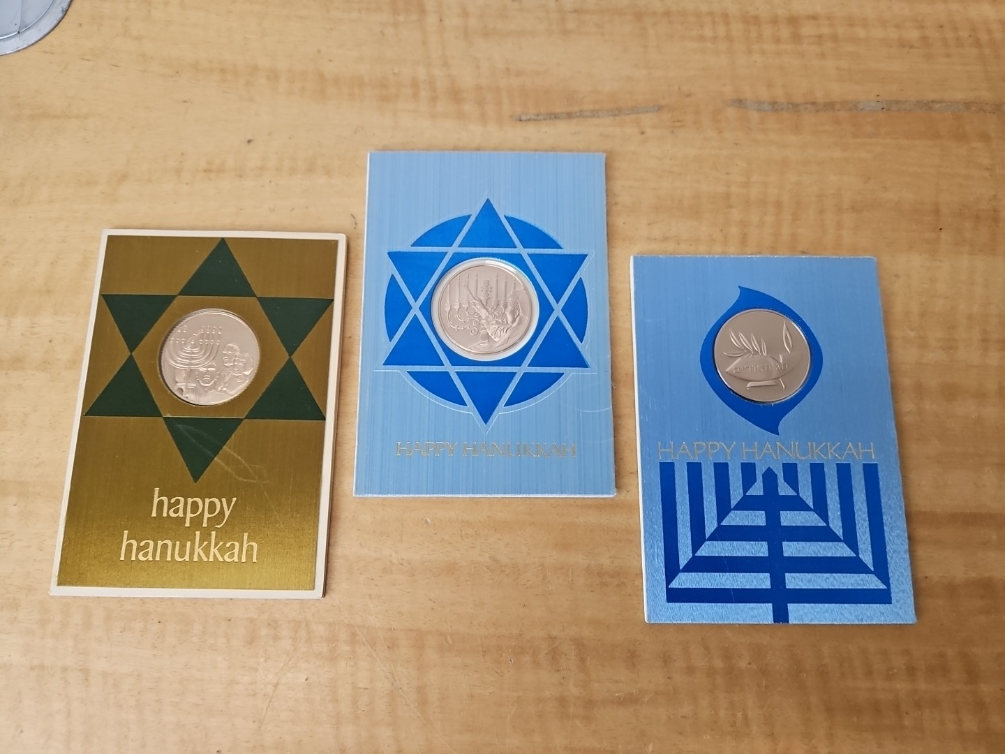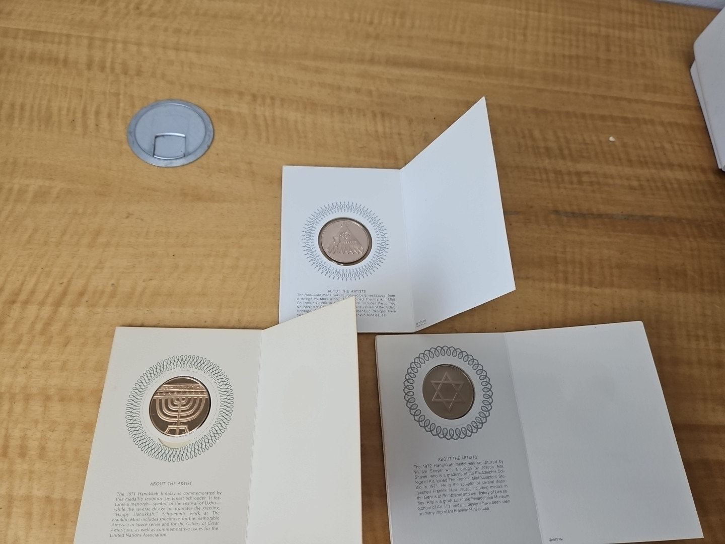 Lot of 3 Vintage Franklin Mint Happy Hanukkah Coin Cards 1971, 1972, 1973
