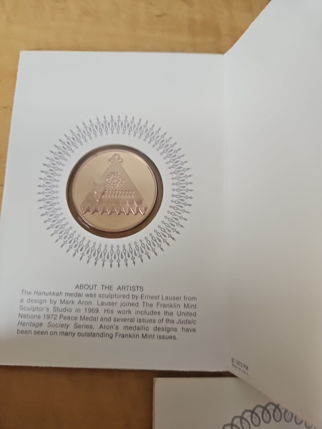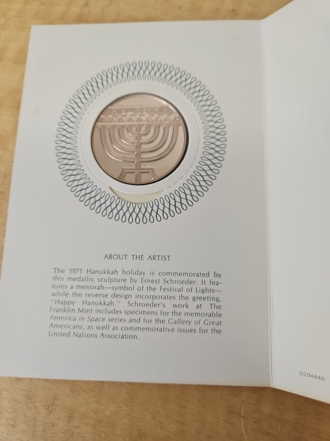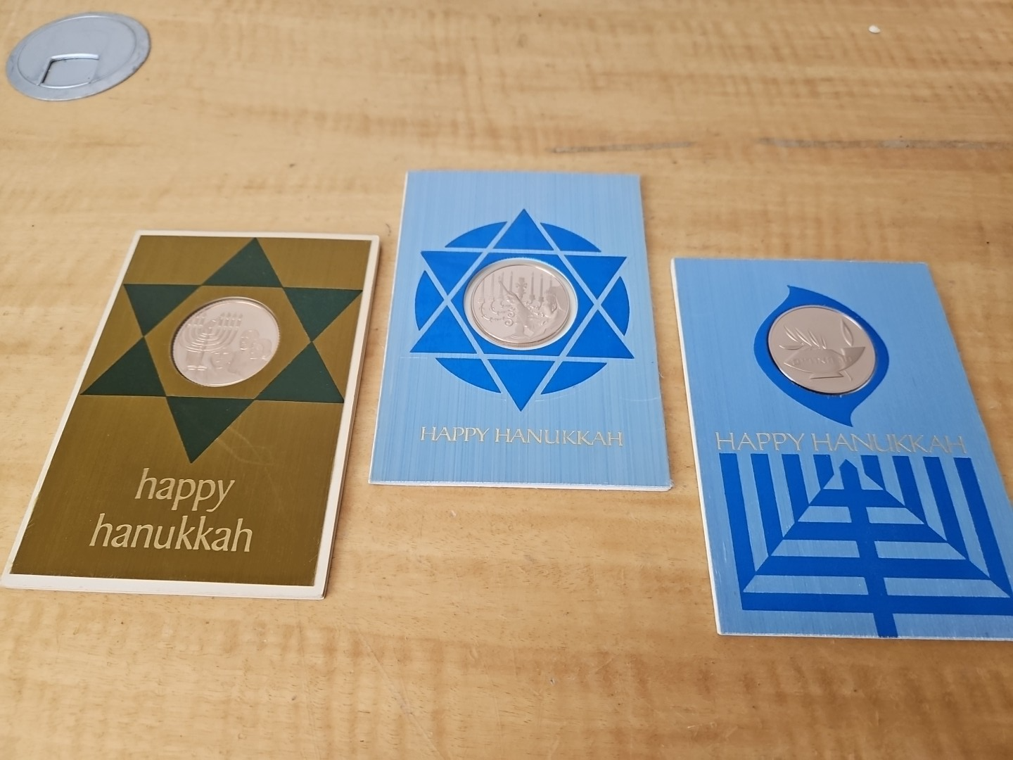 Lot of 3 Vintage Franklin Mint Happy Hanukkah Coin Cards 1971, 1972, 1973