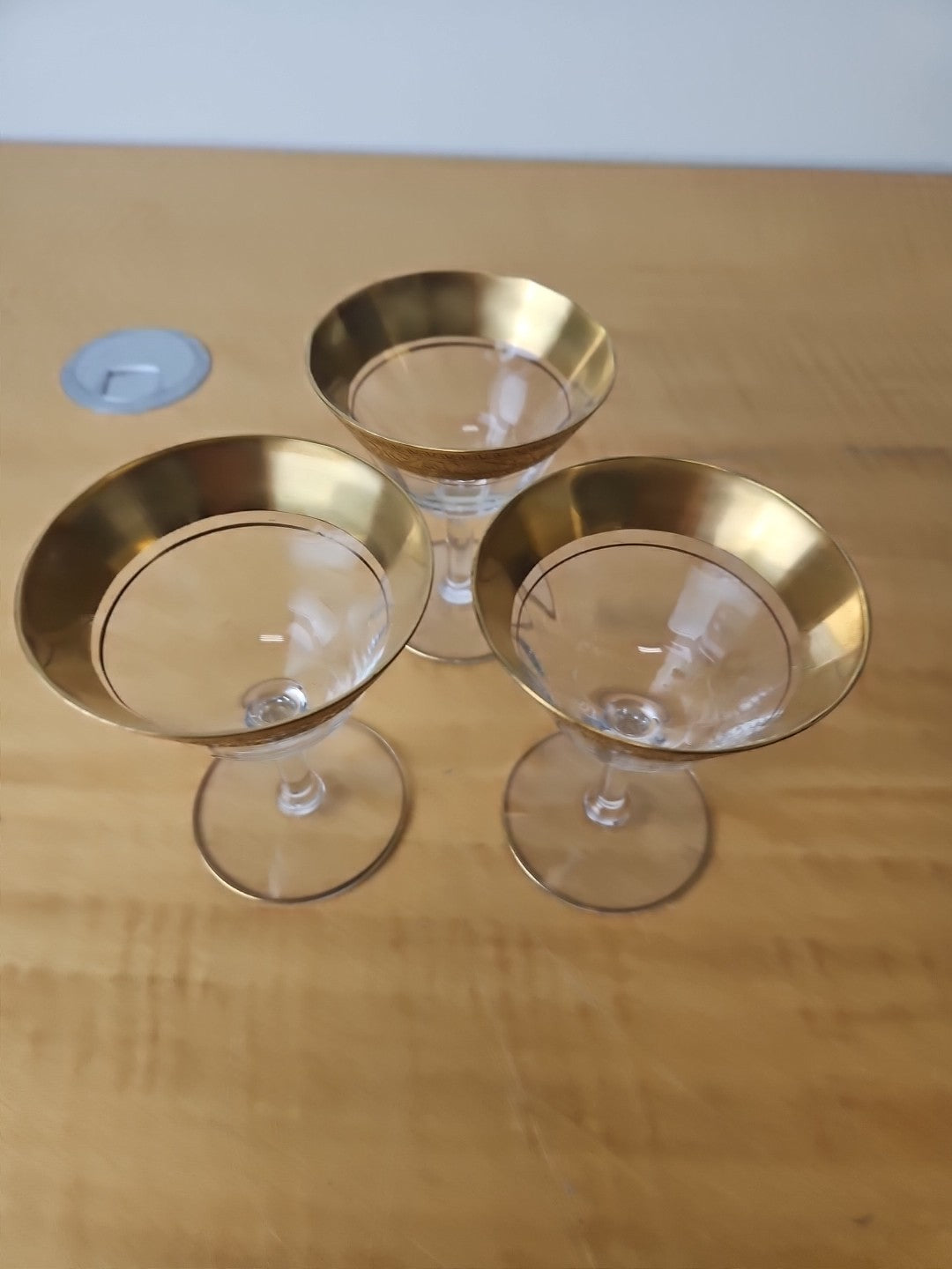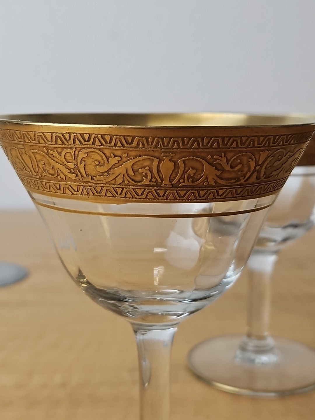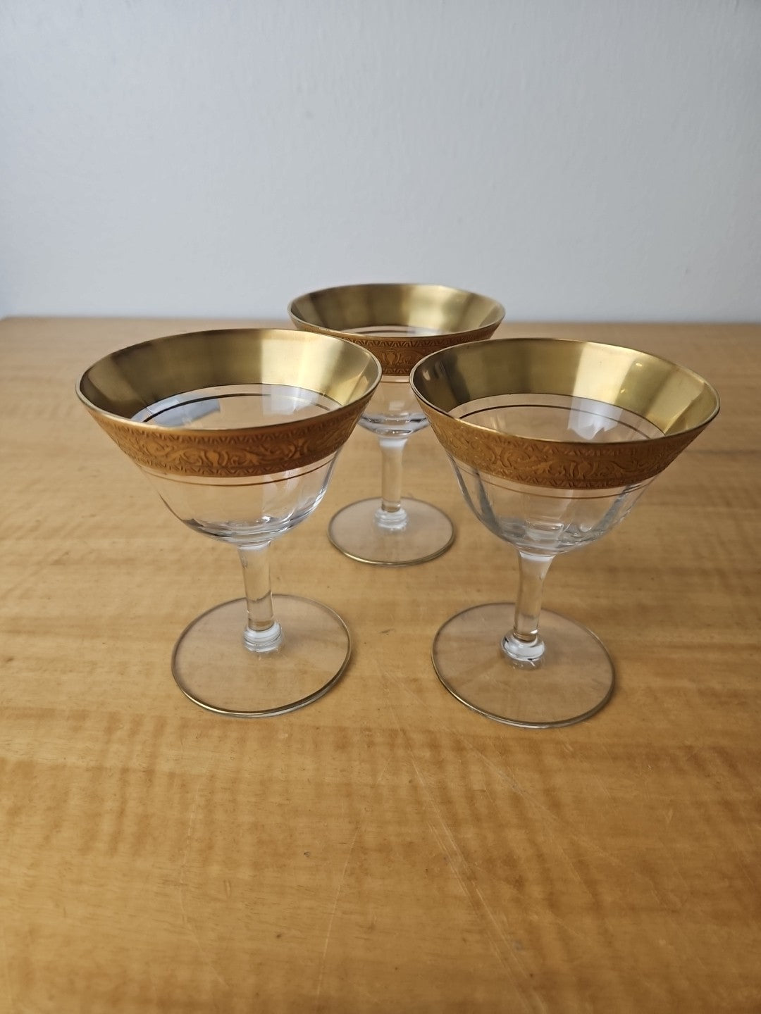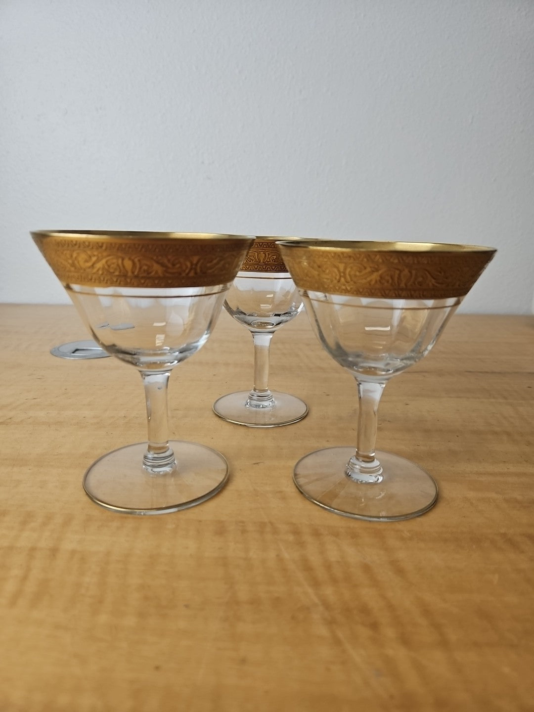 Low Sherbert Rambler Rose Clear Tiffin-Franciscan Look Alike Gold Trim