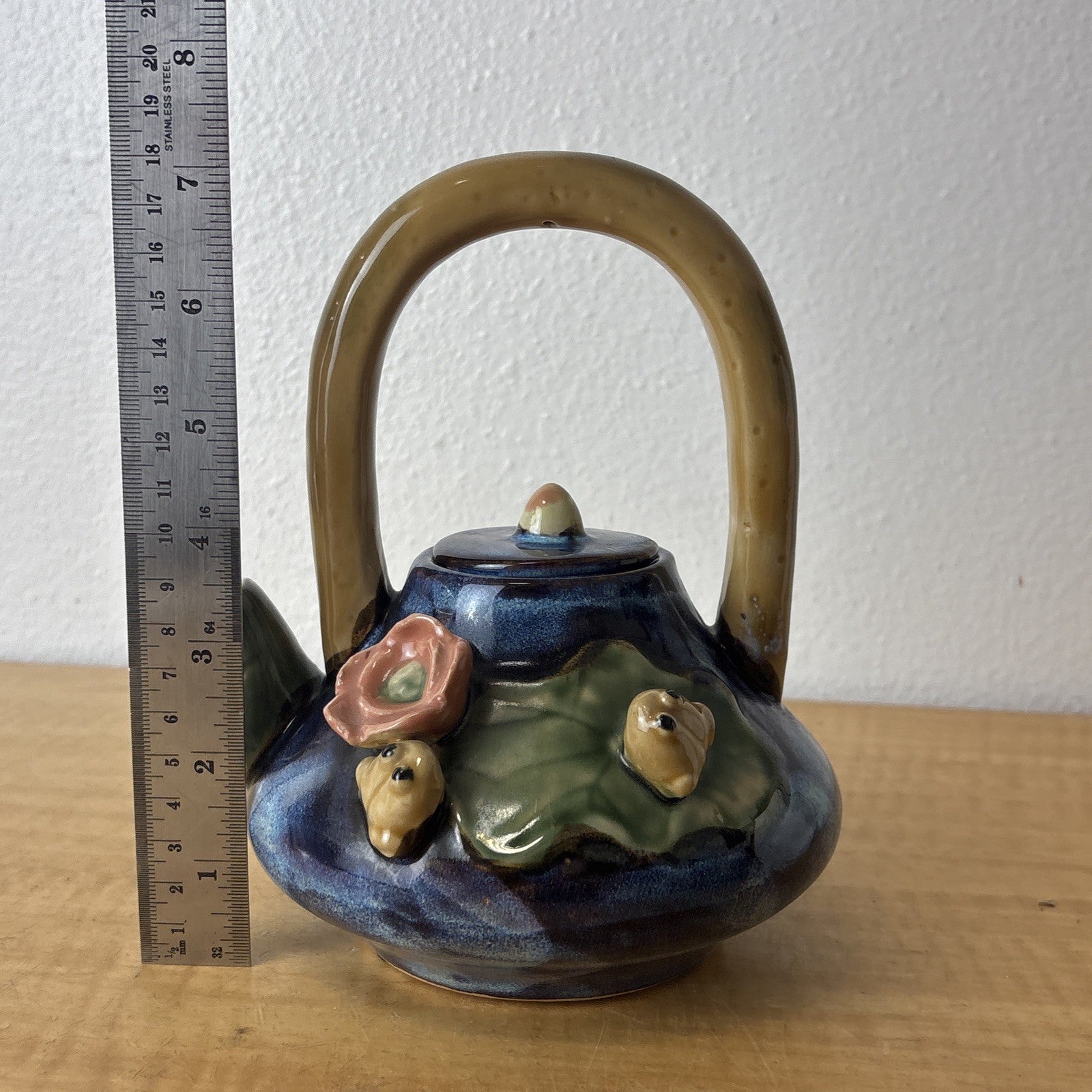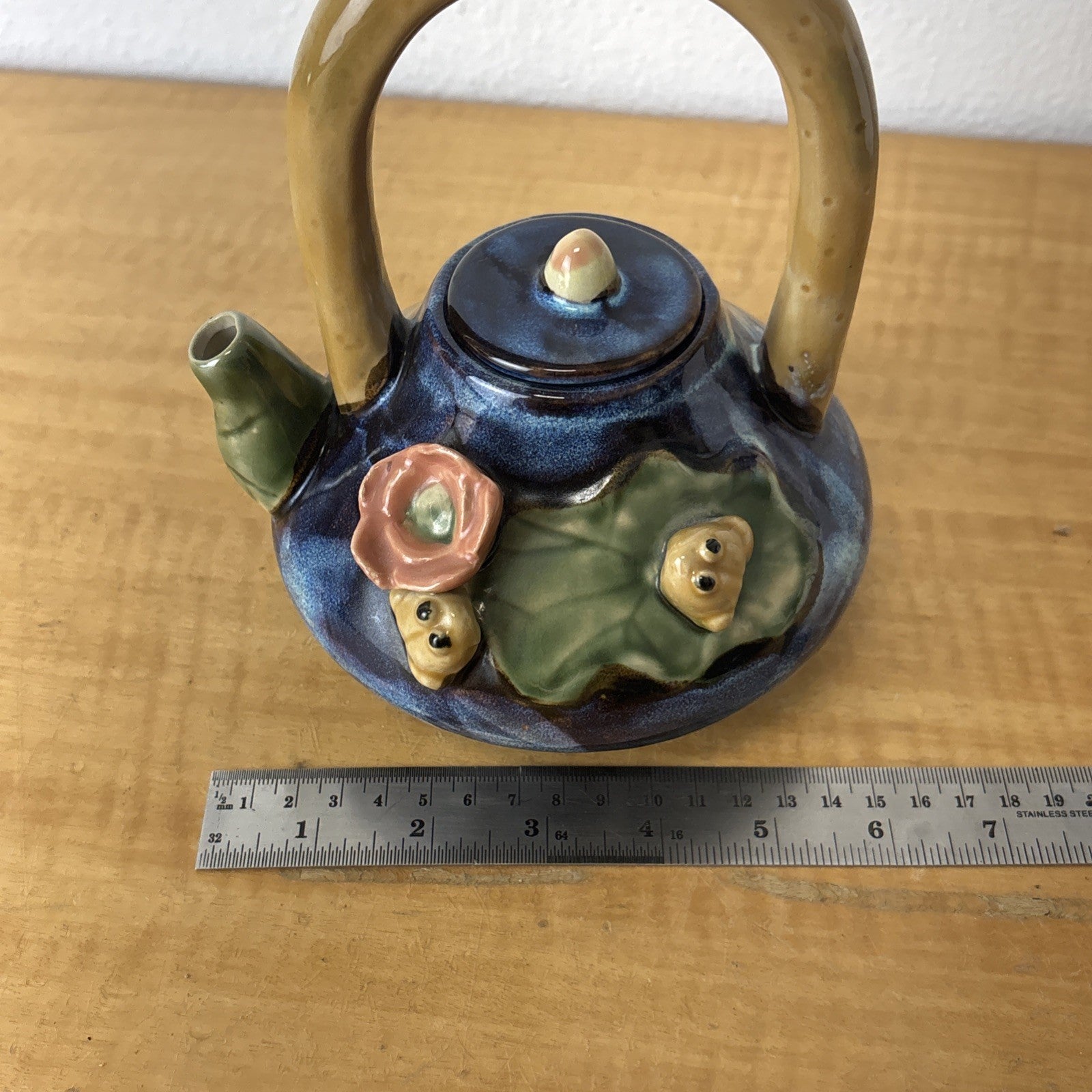 Majolica Style Frog Lily Pad Teapot Ceramic Frog Teapot Vintage Pond Farmhouse