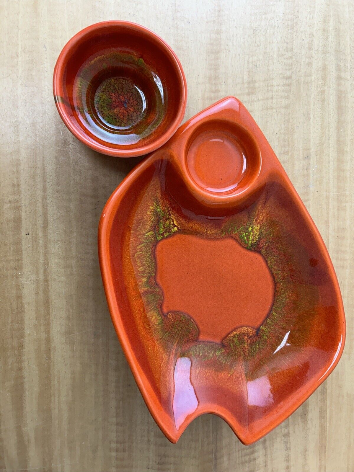 MCM California Pottery Chip and Dip Serving Set USA 742 Multi-color