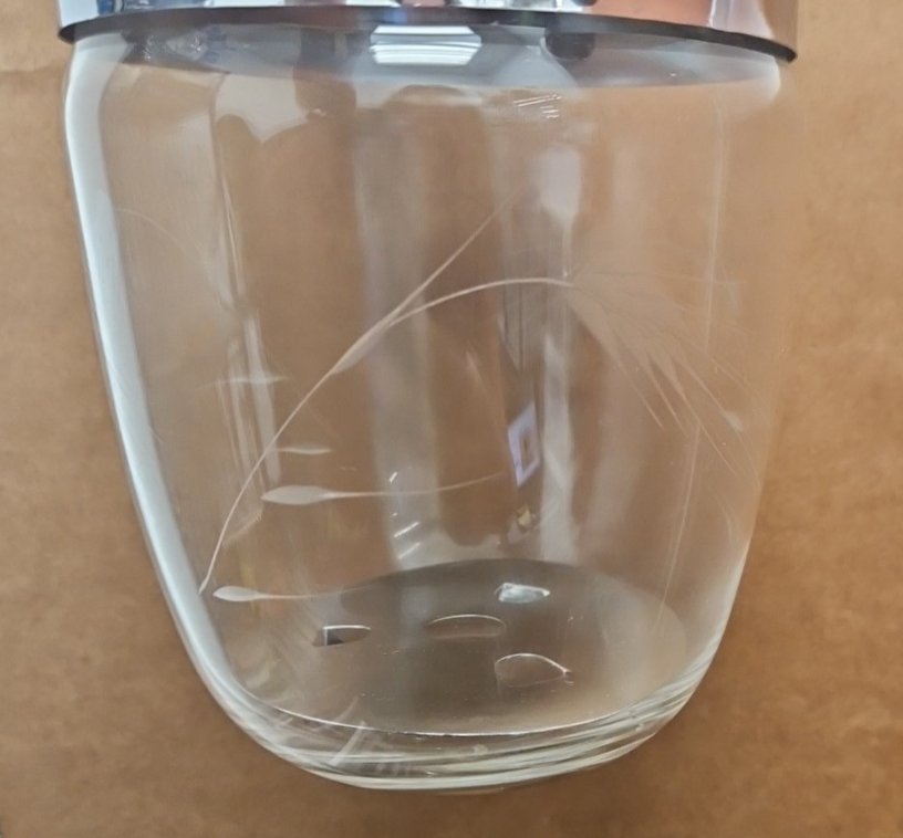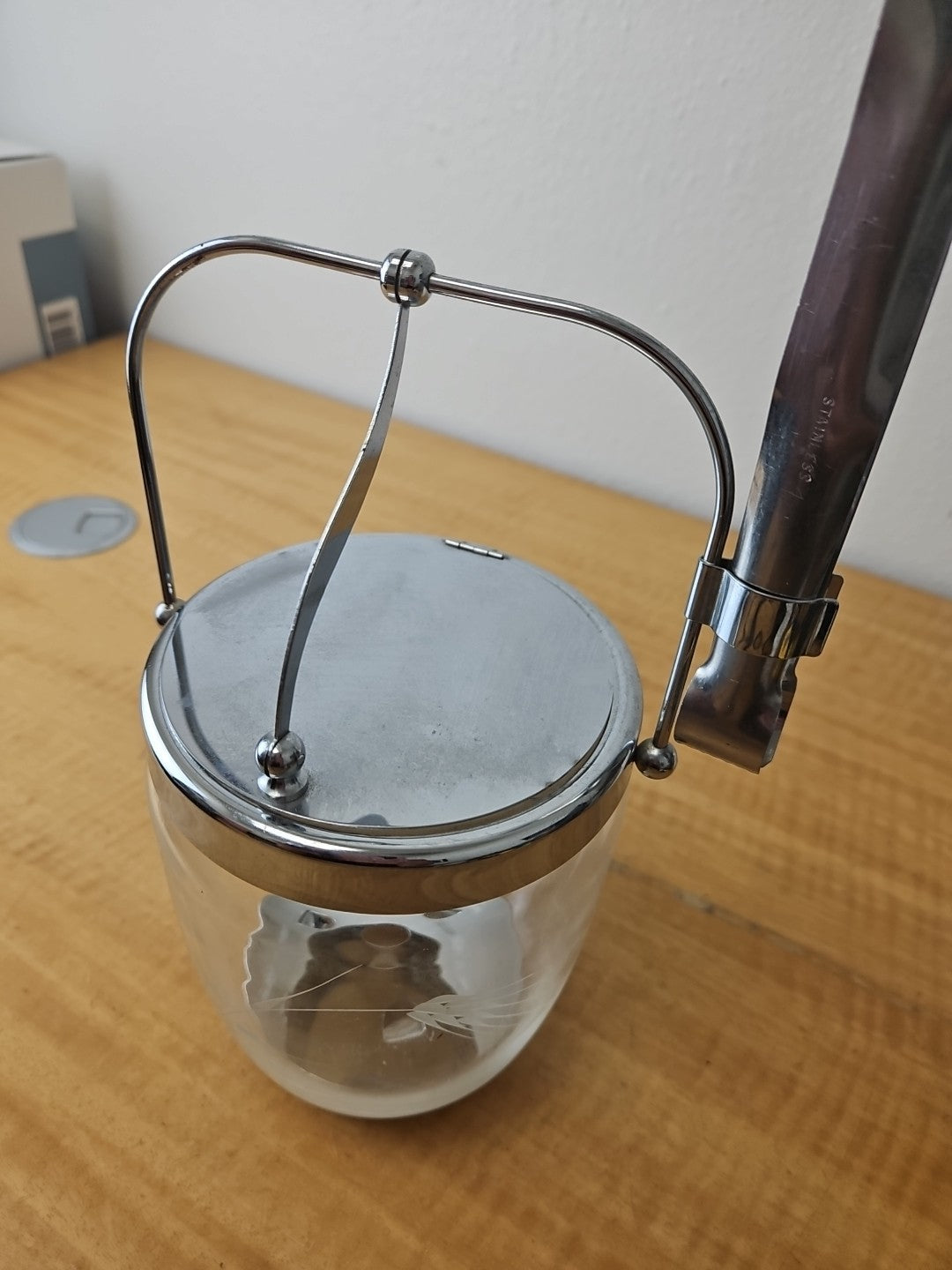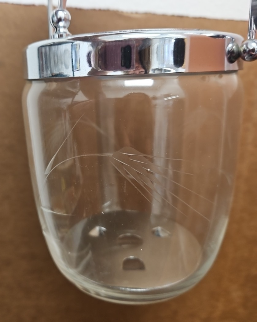 MCM Etched Metal Chrome Glass Vintage Ice Bucket Barware Hinged Lid And Tongs
