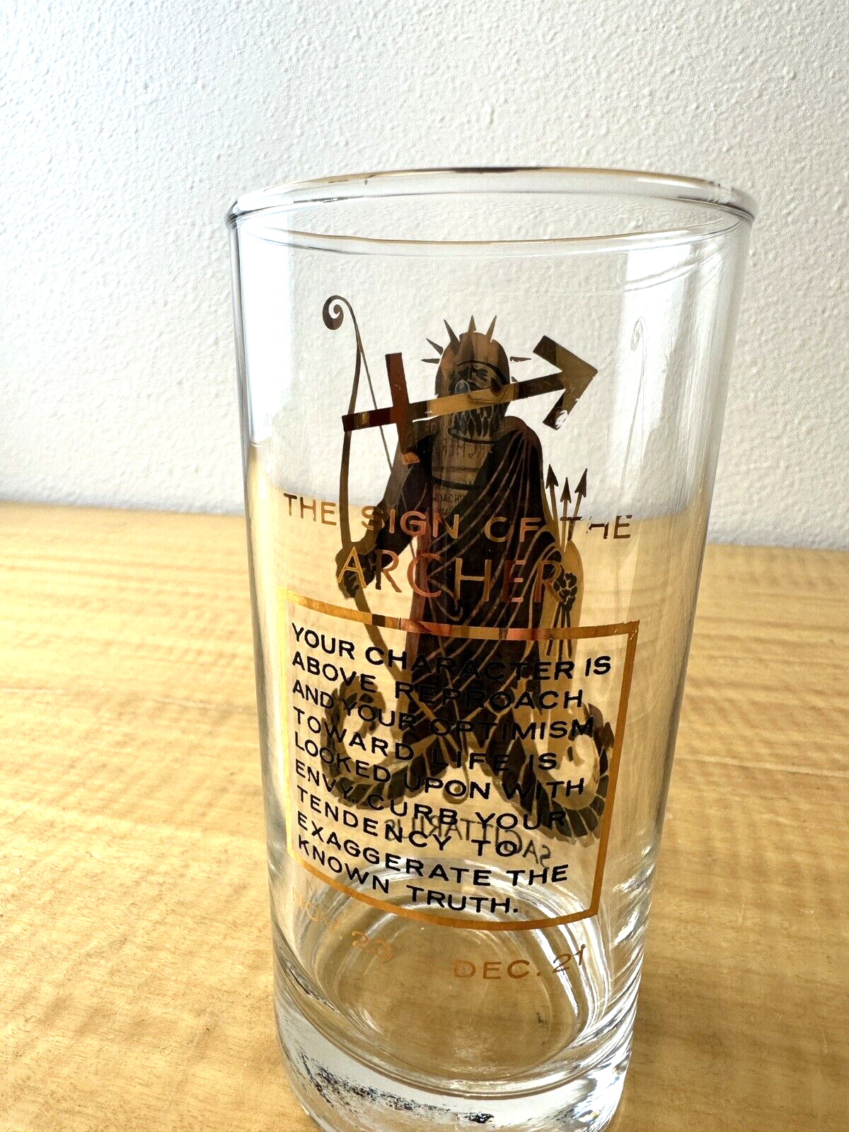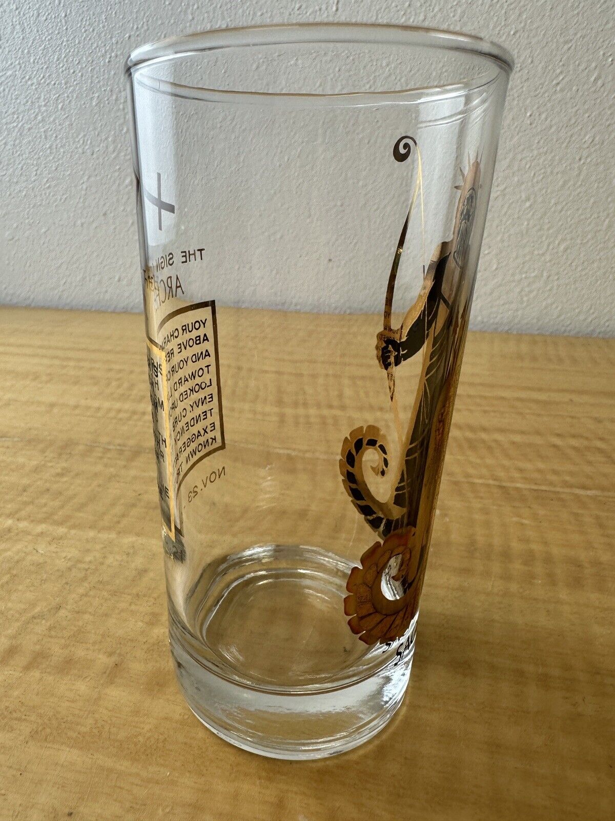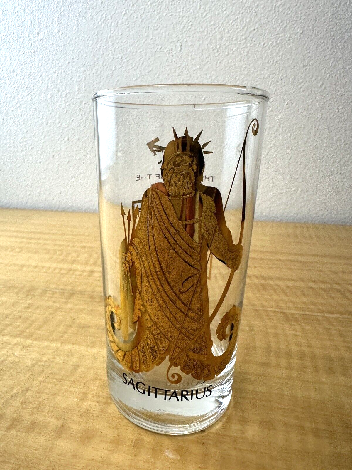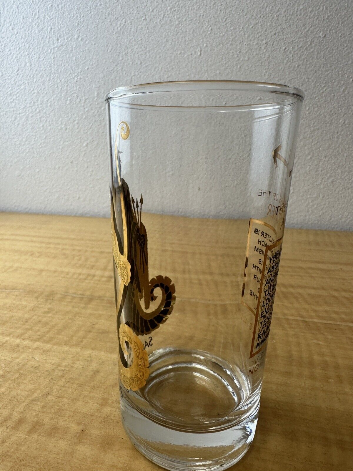 MCM Sagittarius Zodiac Glass Tumbler Gold Highball Tom Collins Barware Vintage