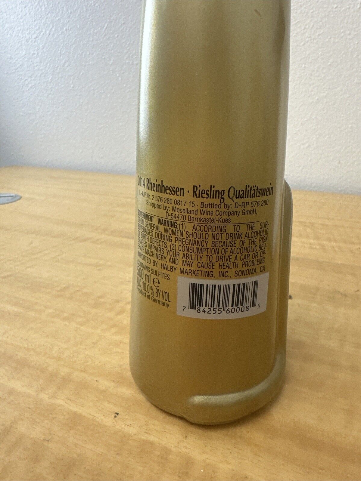 Metallic Gold Happy Cat Mosel Reisling Rheinhessen Germany Wine Bottle 13” tall.