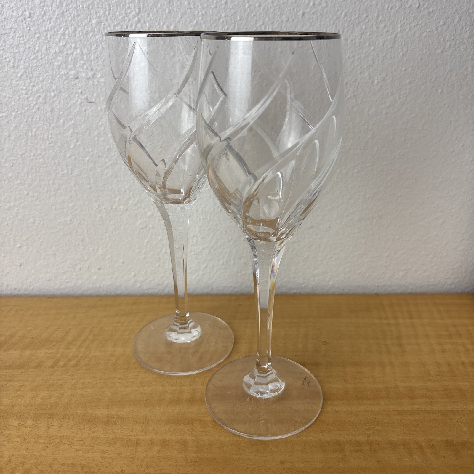 MIKASA CRYSTAL OLYMPUS PLATINUM TRIM WINE GLASS ( 2 AVAILABLE )
