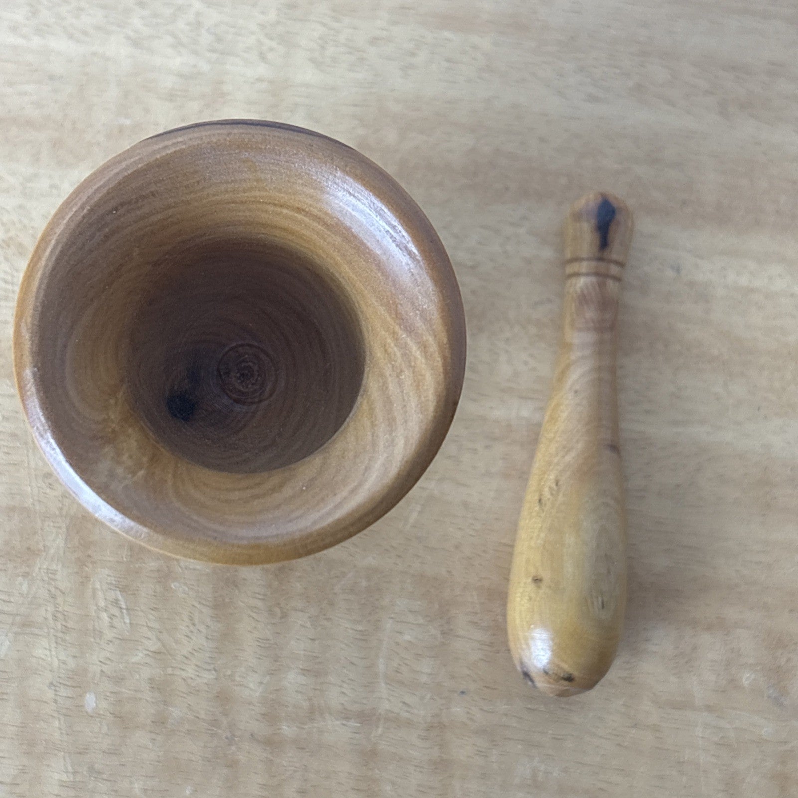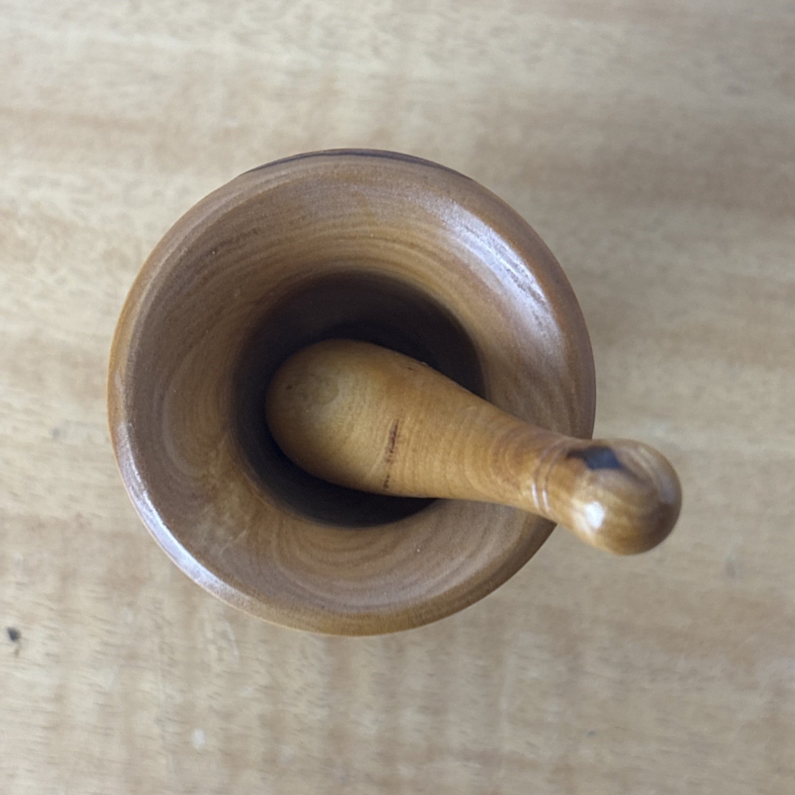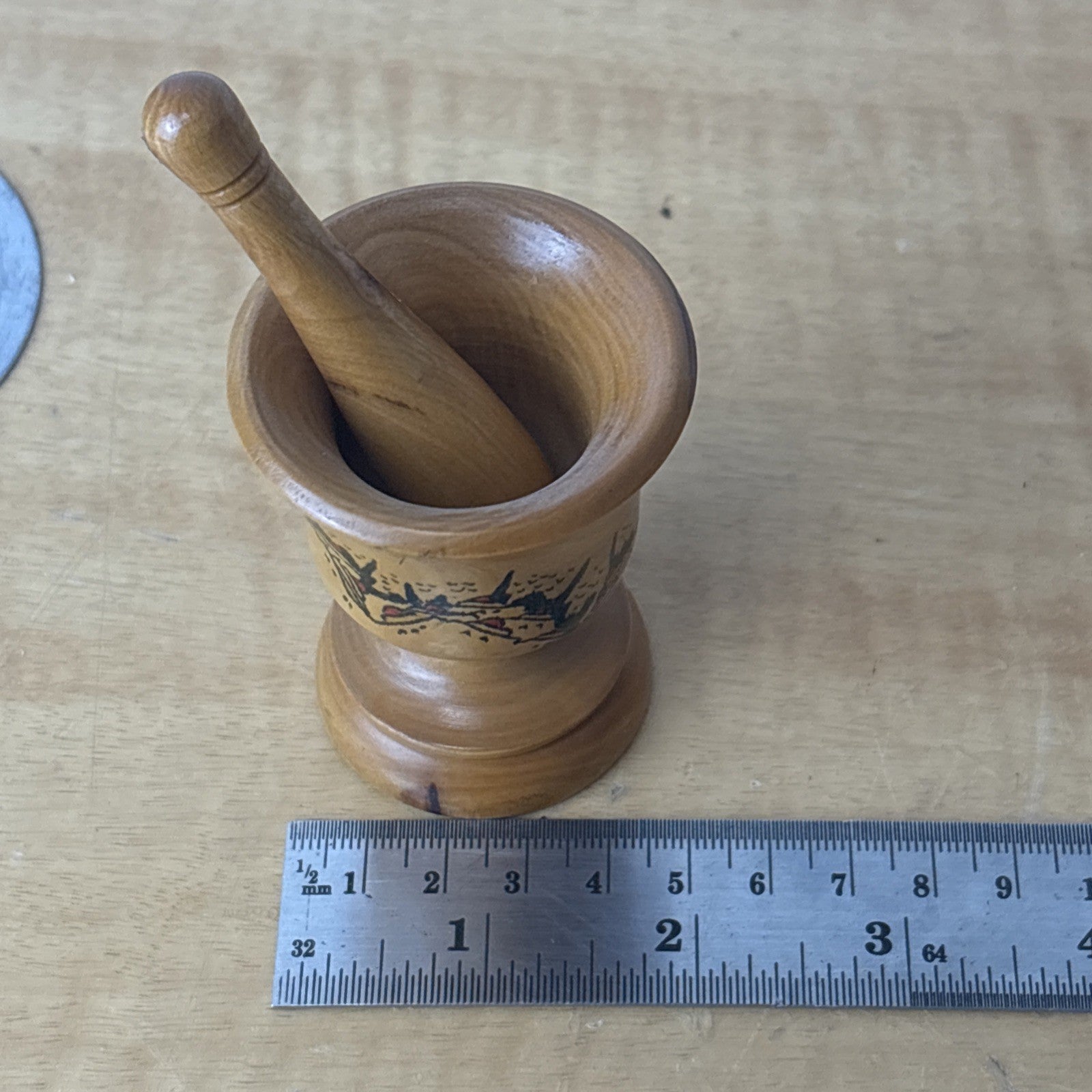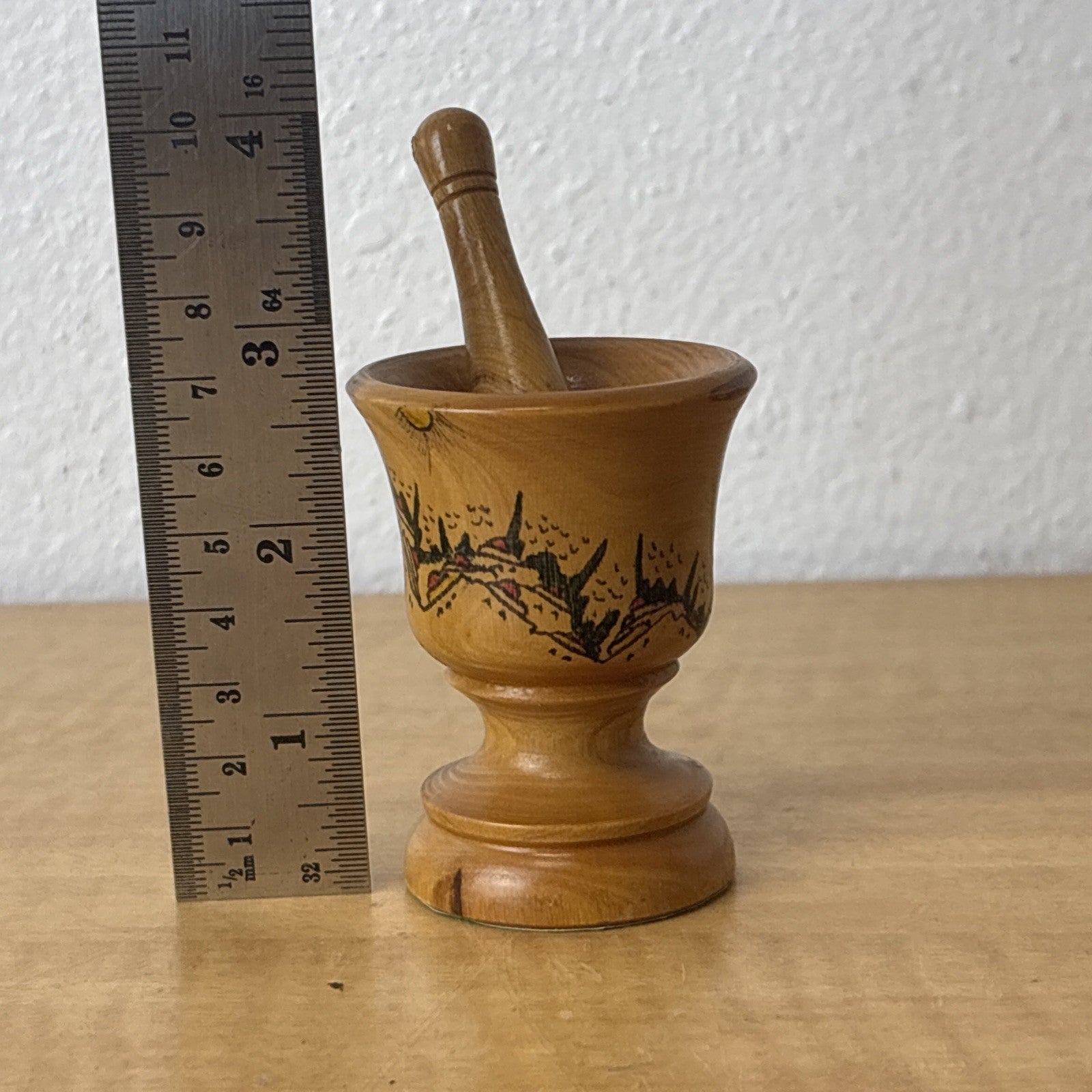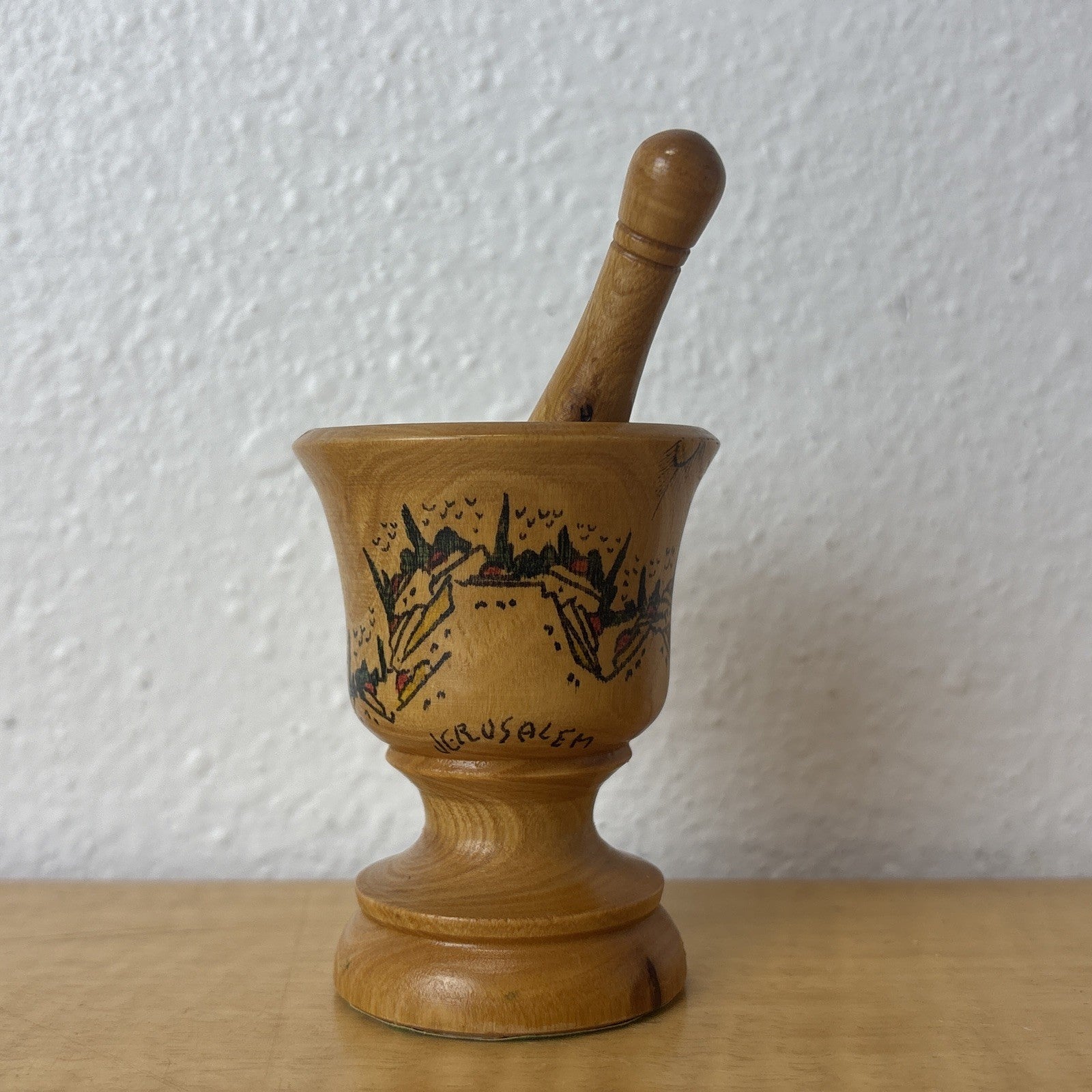 Mini / Small Wood Mortar and Pestle Set, with Design and Signed Jerasulem