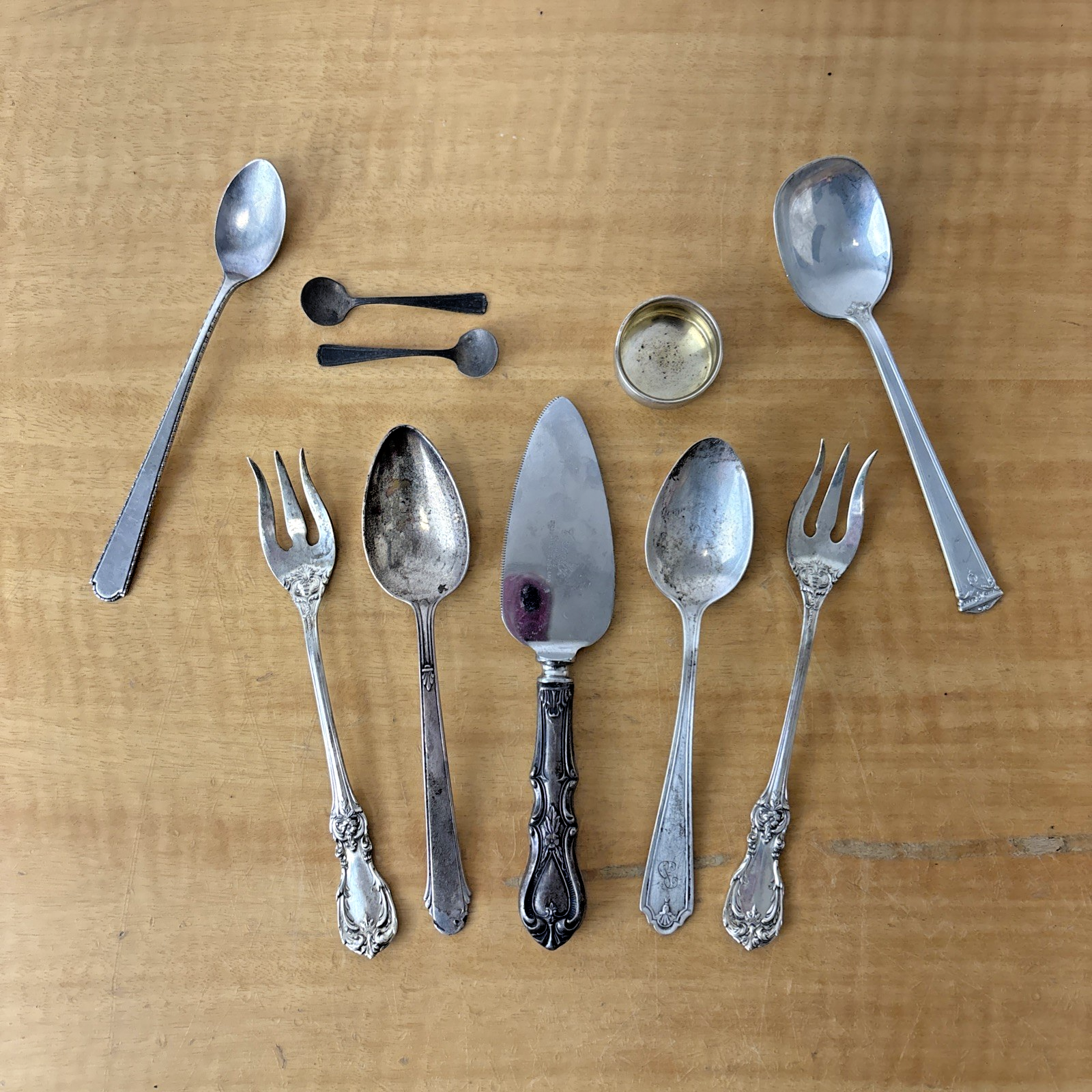 Mixed Lot of Sterling Silver Spoons, Forks, Knife, and Tin - 10 Pieces