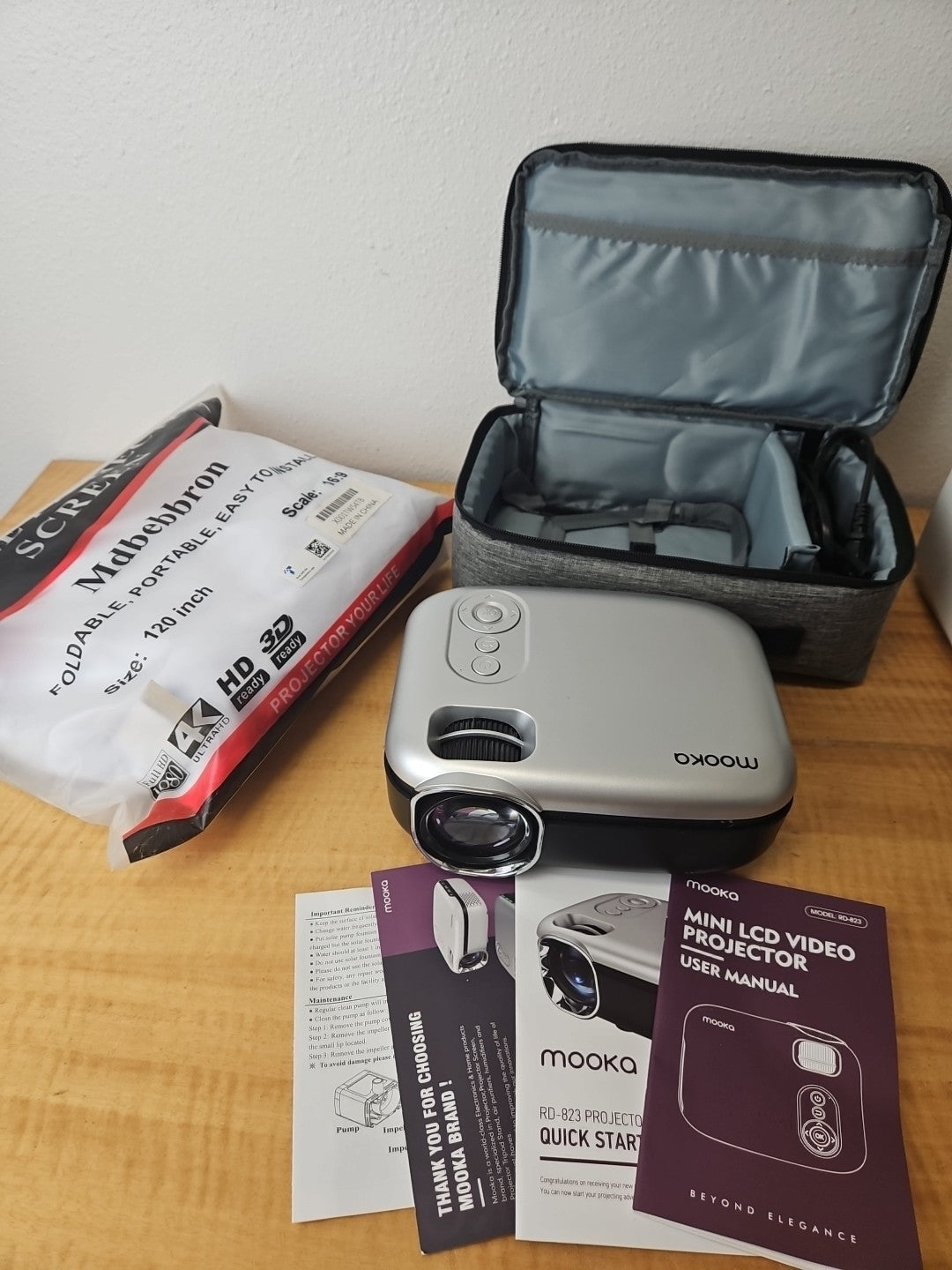 Mooka: Mini LCD Video Projector - RD-823 in soft case AND 120" projector screen