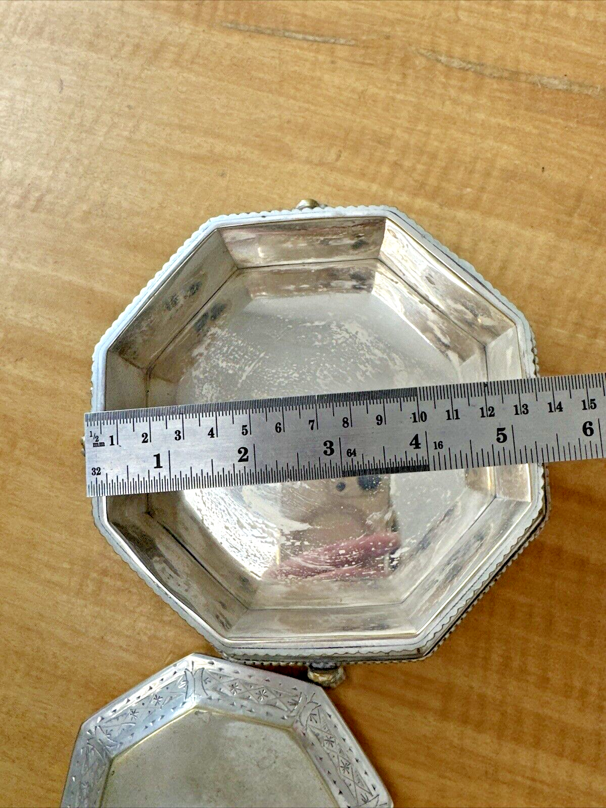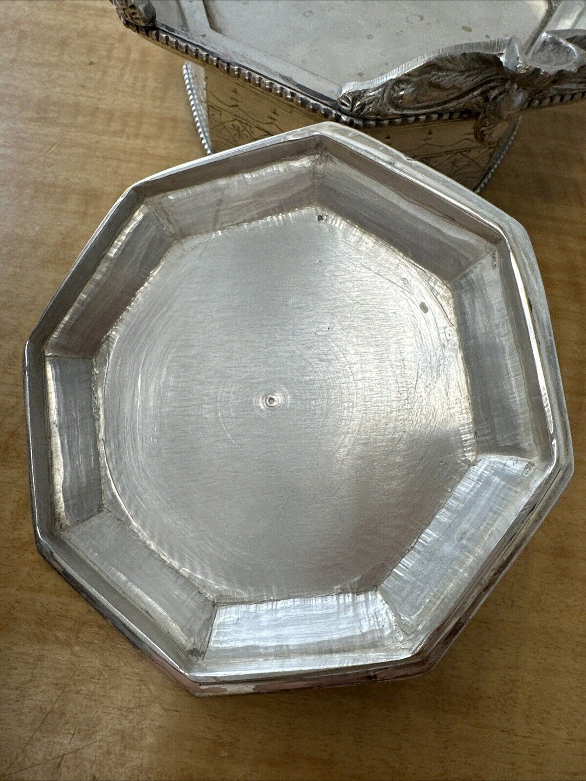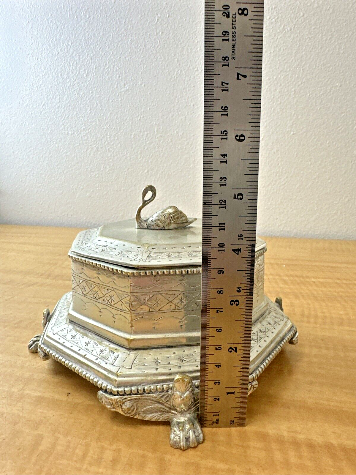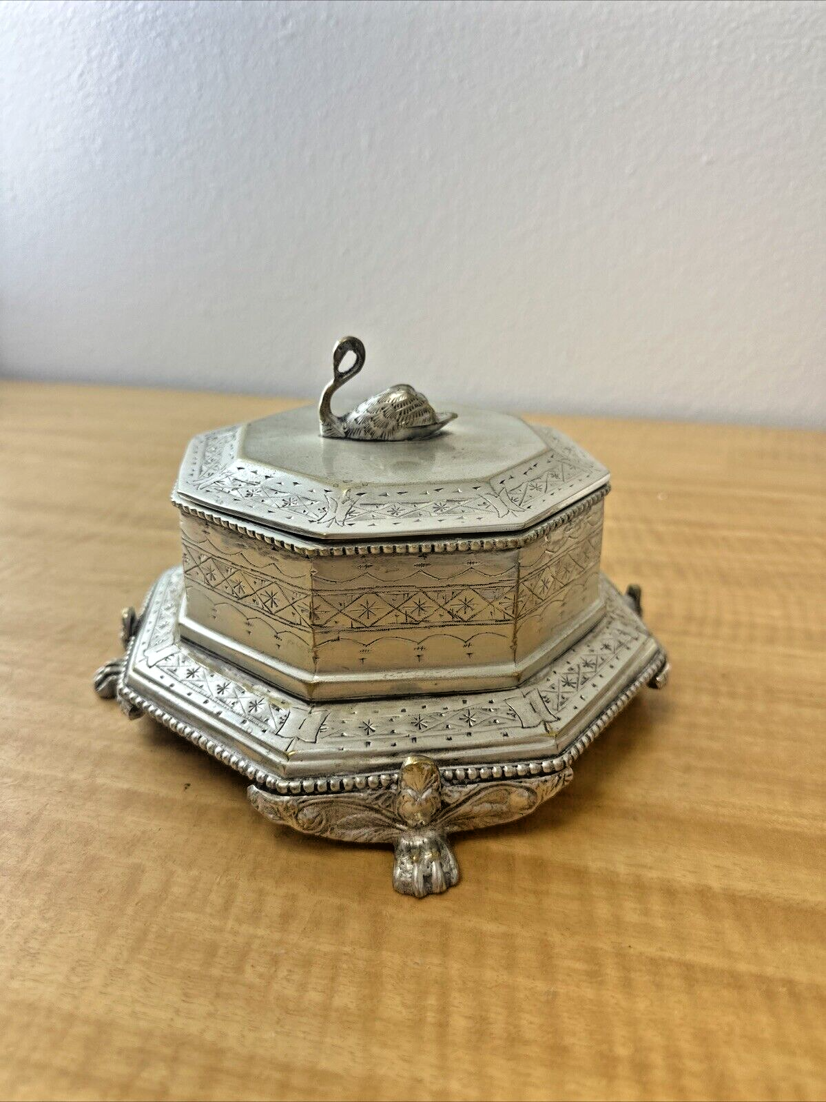 MOTTAHEDEH BRASS SWAN BOX OCTAGONAL PAW FEET LIDDED ORNATE VINTAGE ANTIQUE