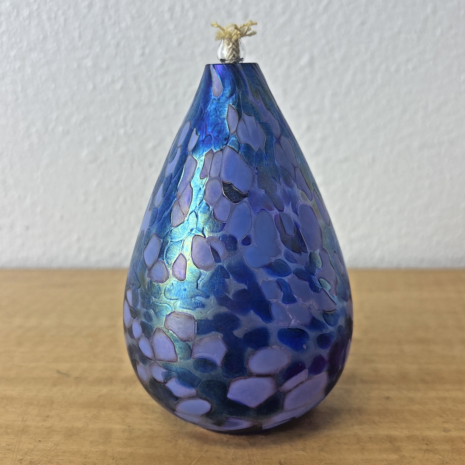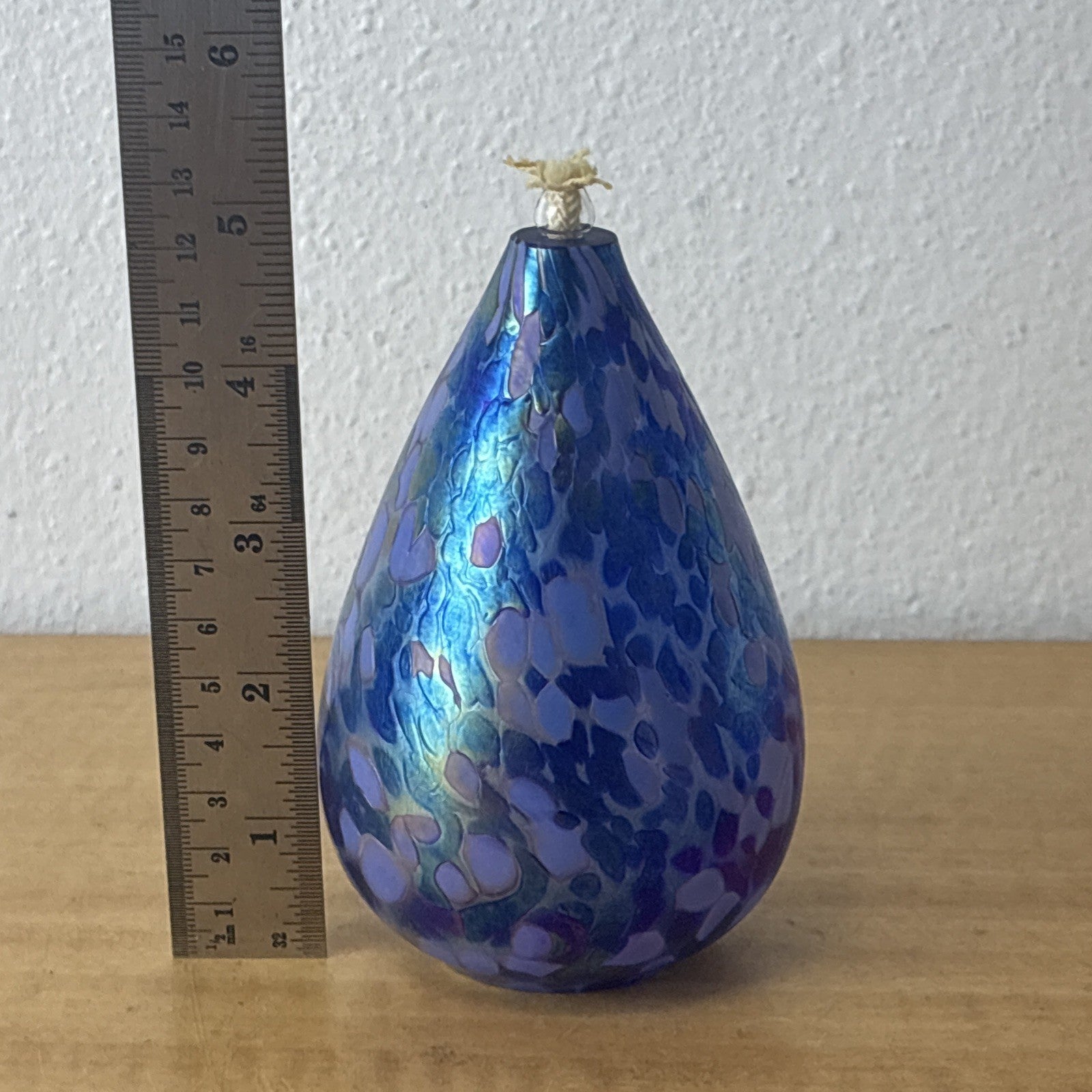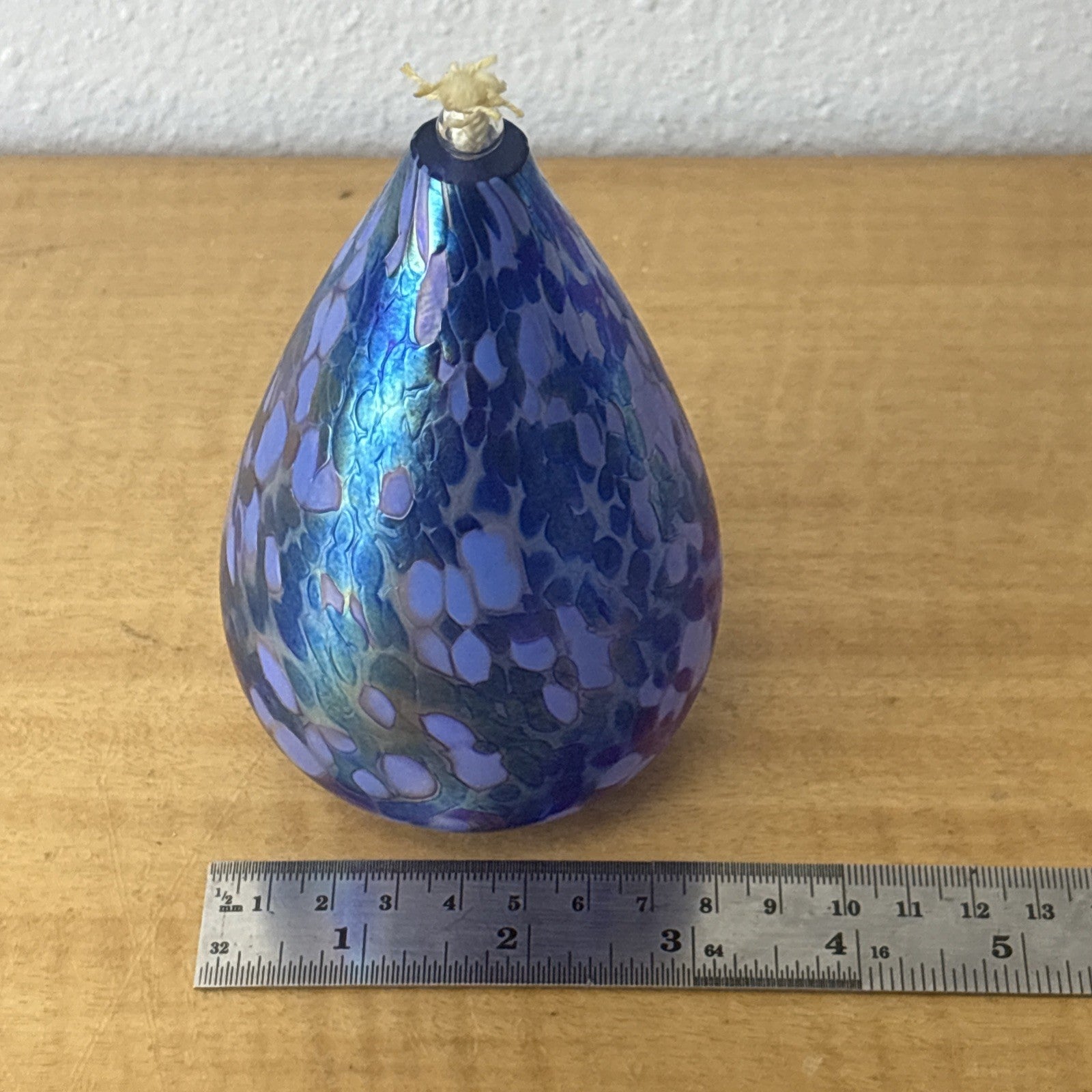 Mount Saint Helen MSH Signed Blue Iridescent Oil Lamp Vintage Hand Blown Glass