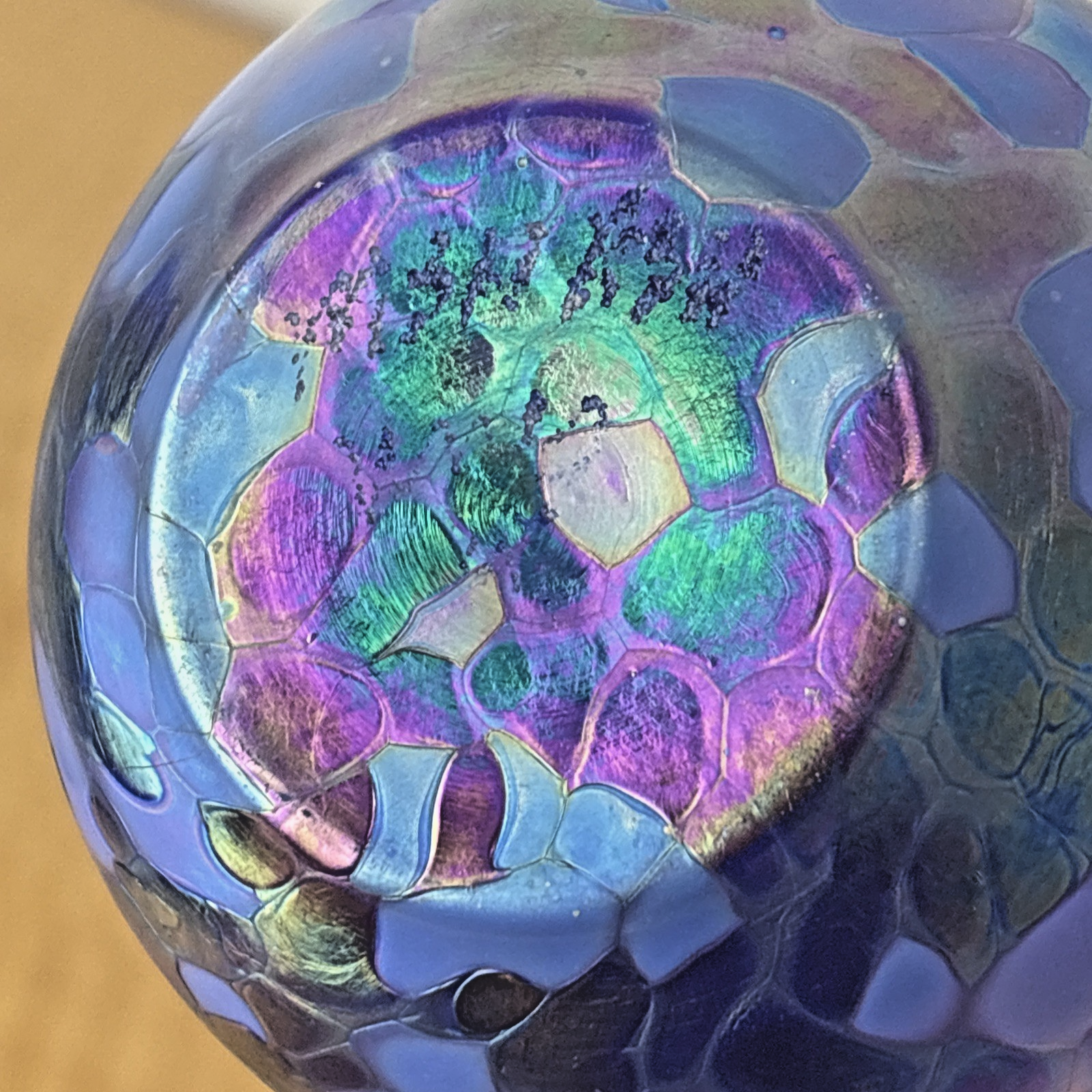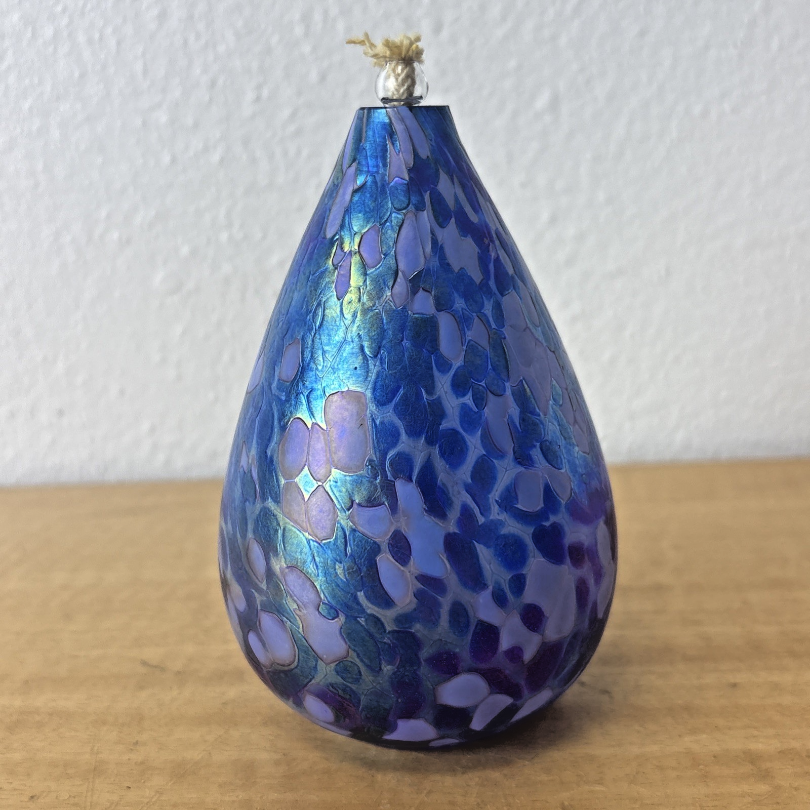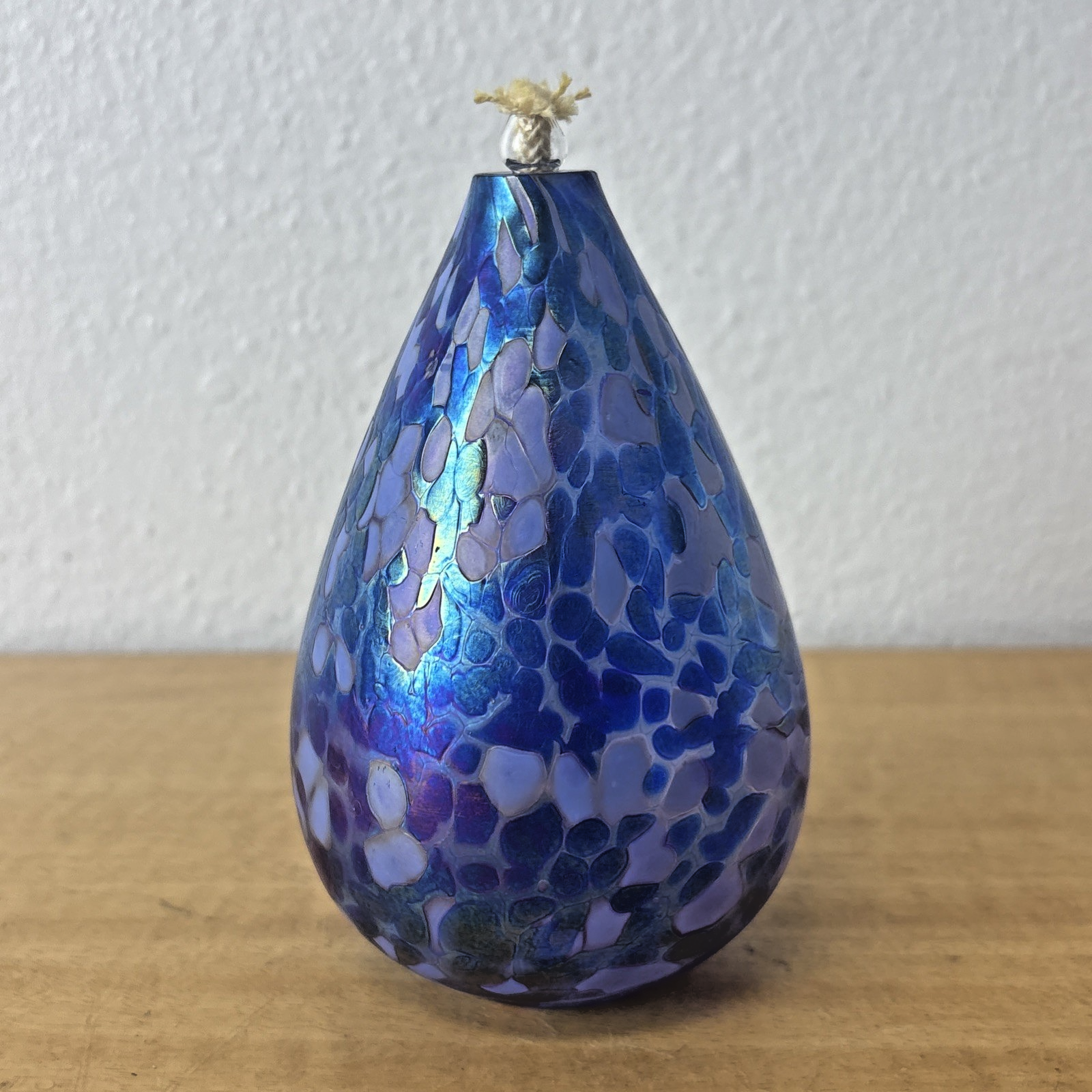 Mount Saint Helen MSH Signed Blue Iridescent Oil Lamp Vintage Hand Blown Glass