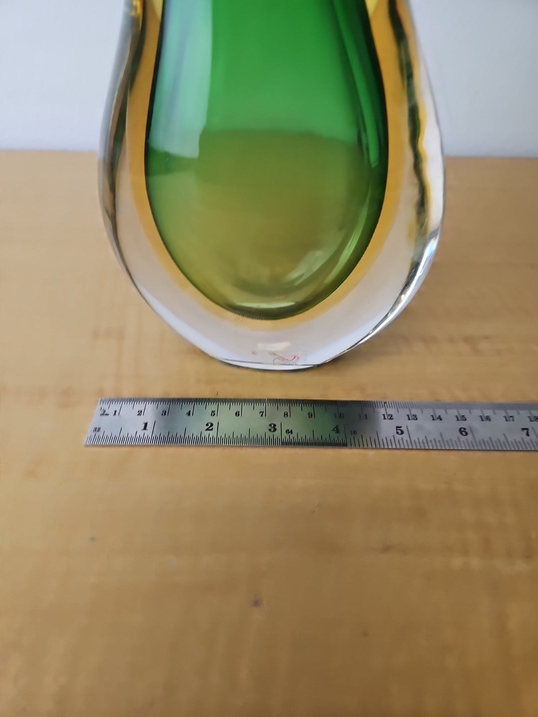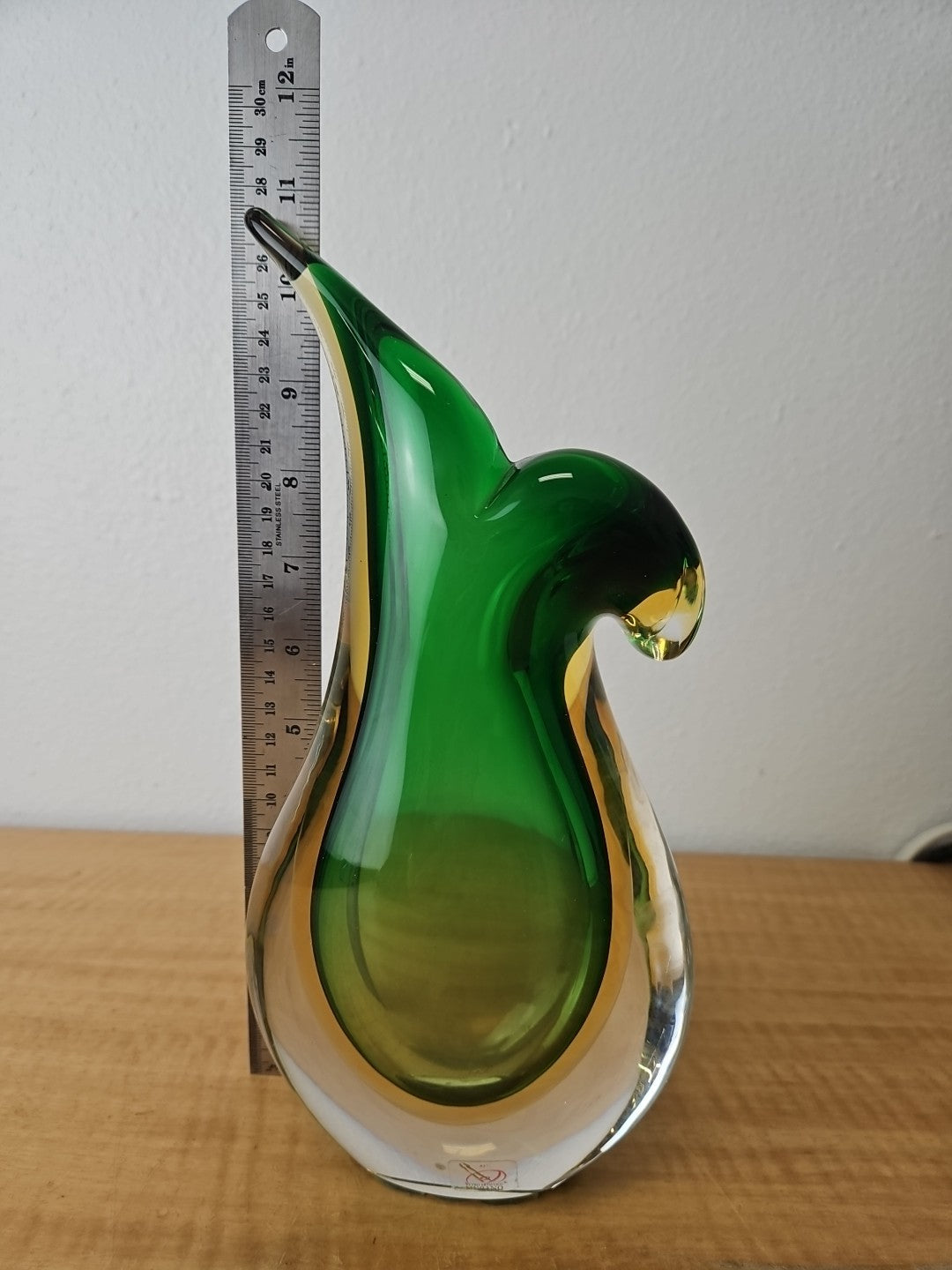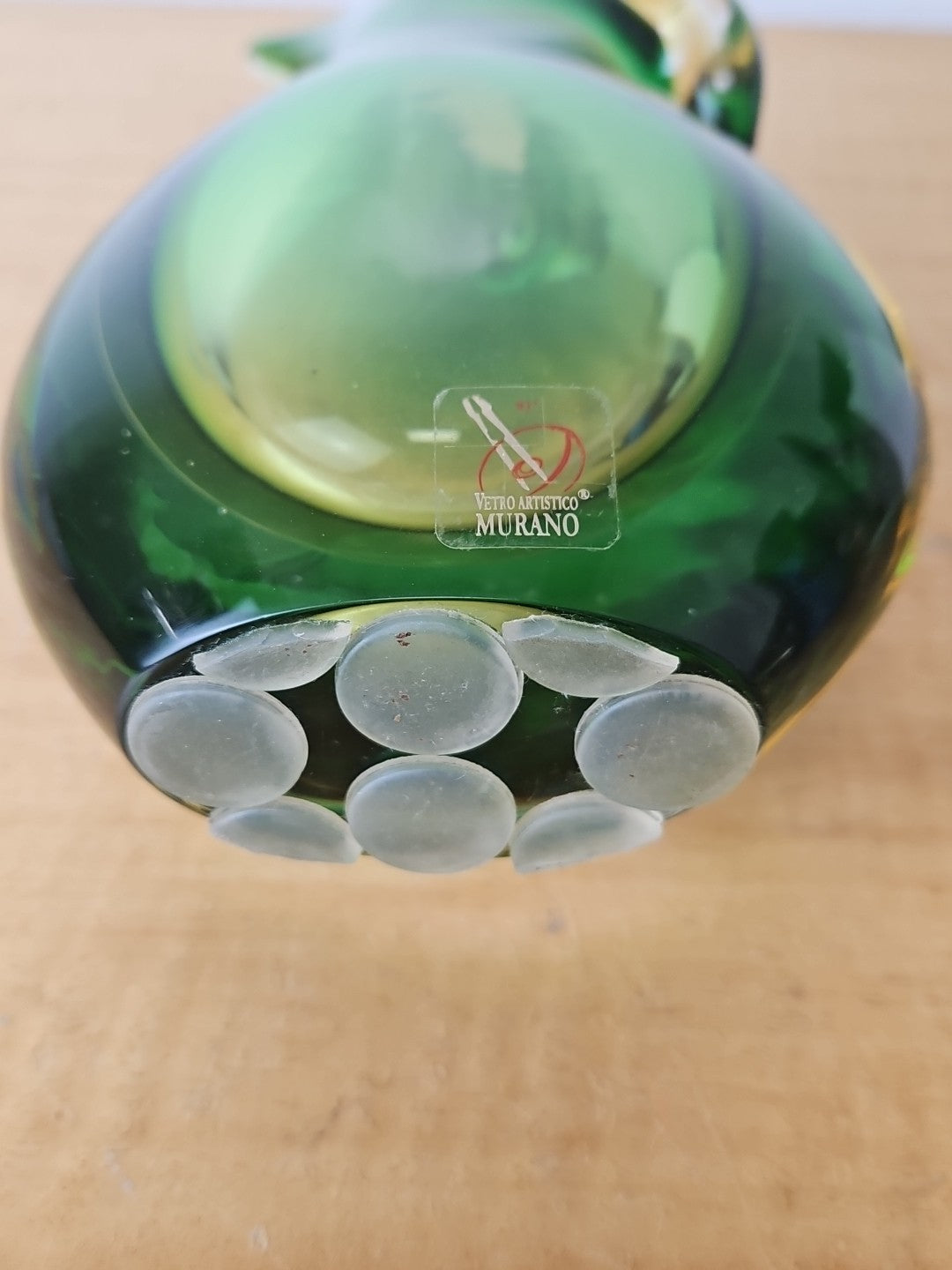 Murano, Green Glass Vase 11 Inches Tall, 5 1/2 lbs