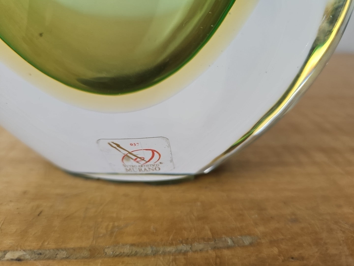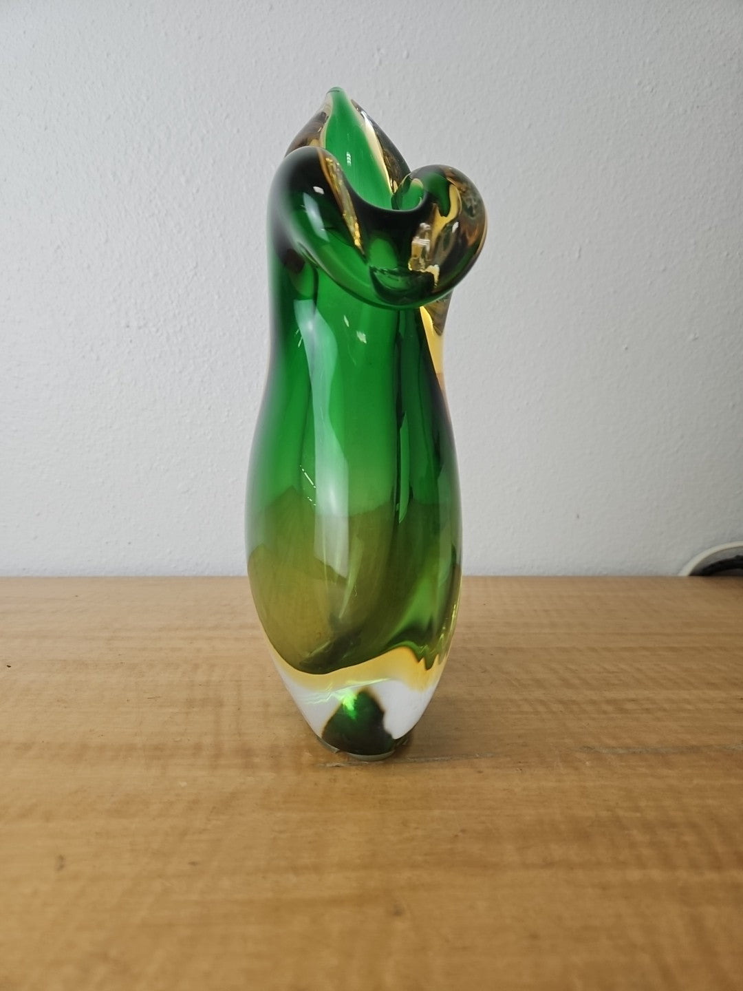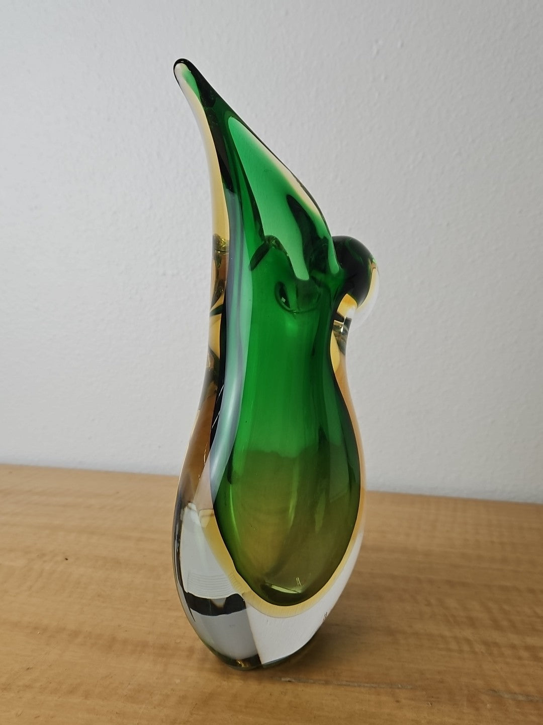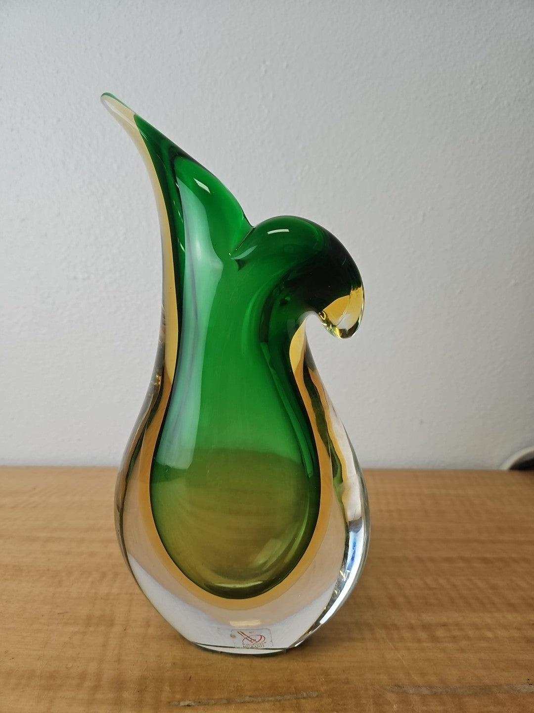 Murano, Green Glass Vase 11 Inches Tall, 5 1/2 lbs