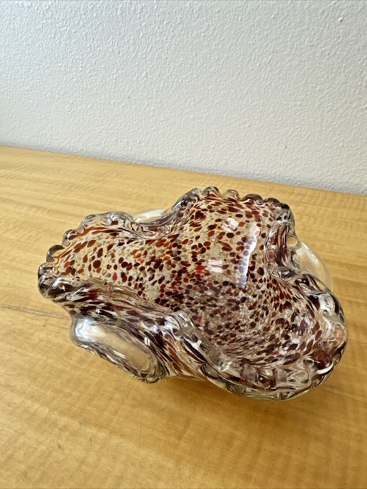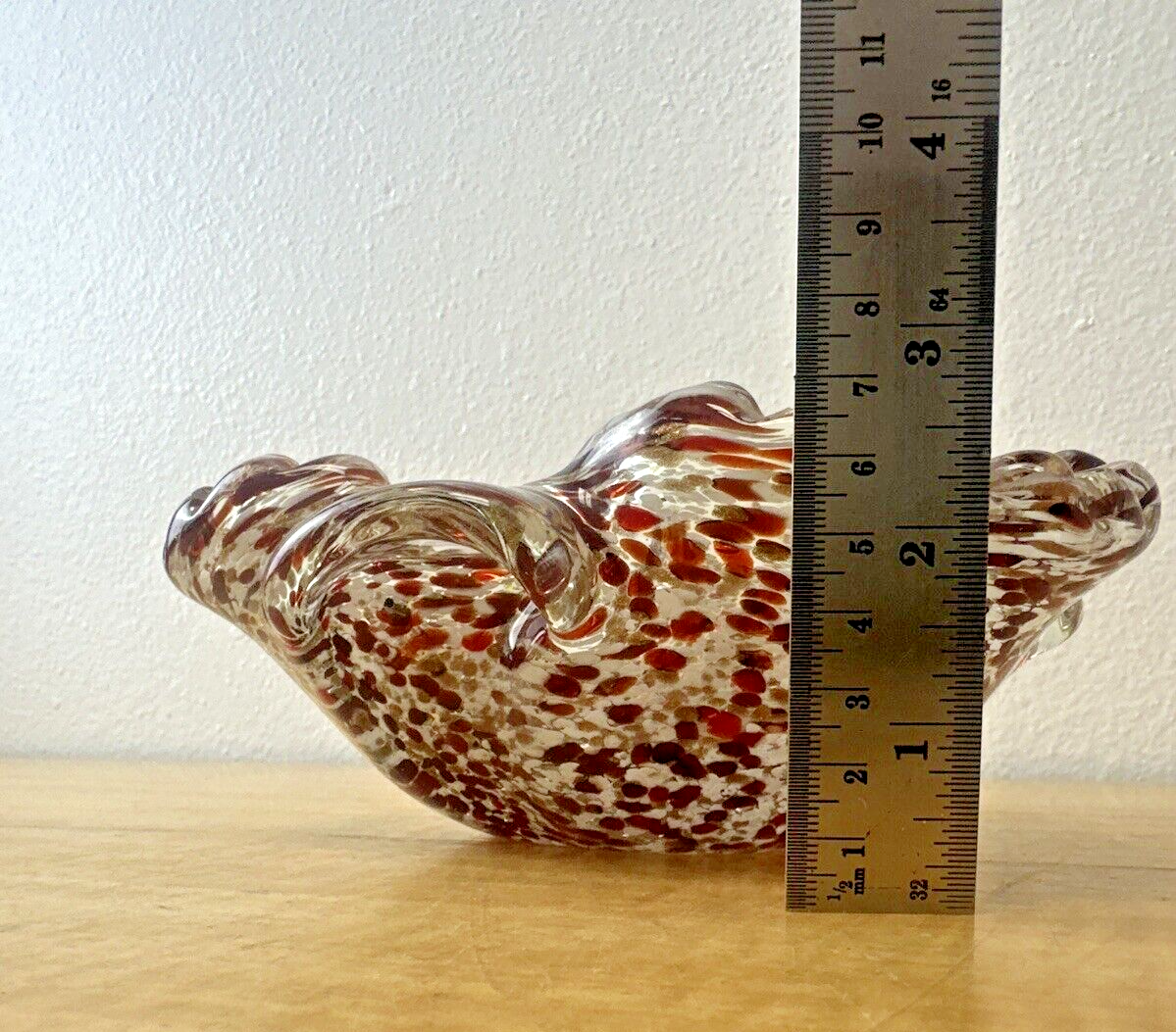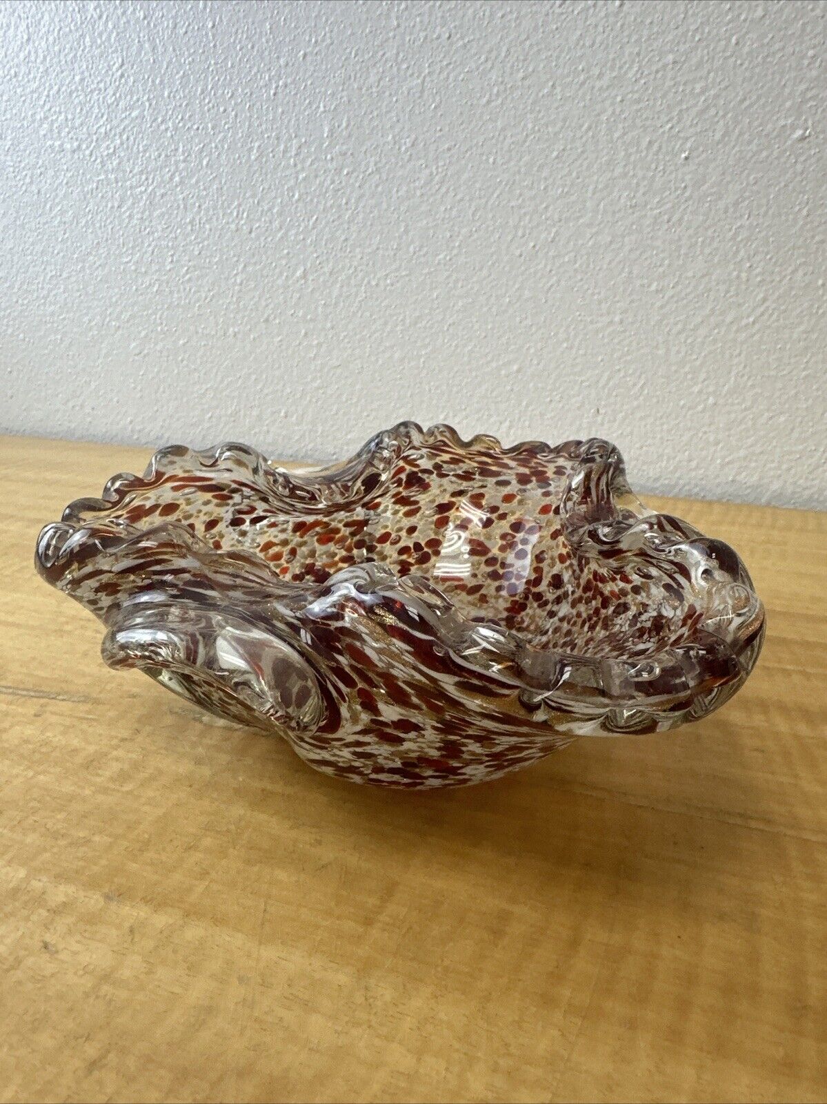 Murano Handblown Glass Bowl Ruffle Ashtray Dish Gold Glitter Red White