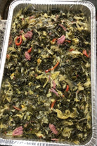 Fresh collards and cabbage with slow braised smoked turkey in a savory broth. The flavors are explosive!
