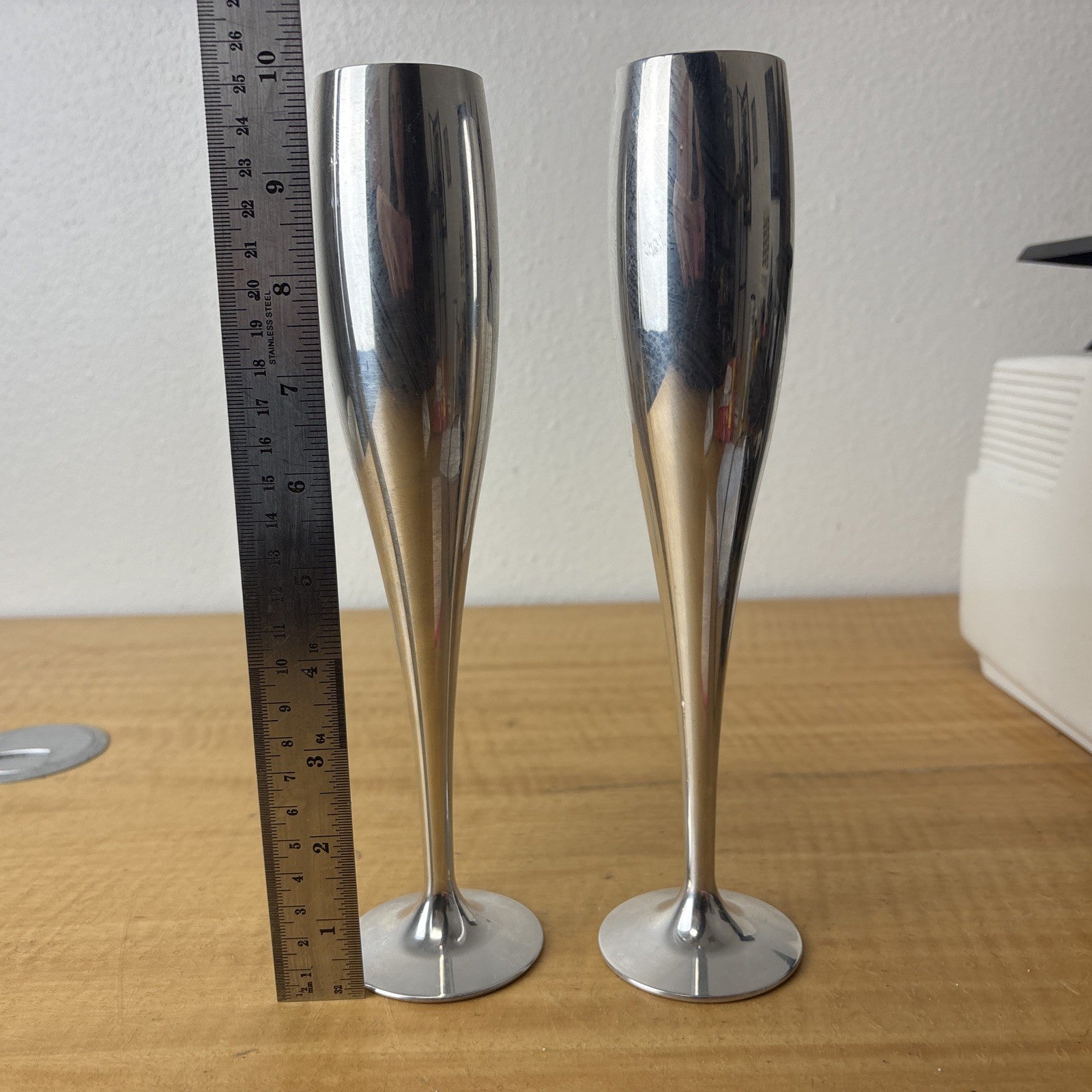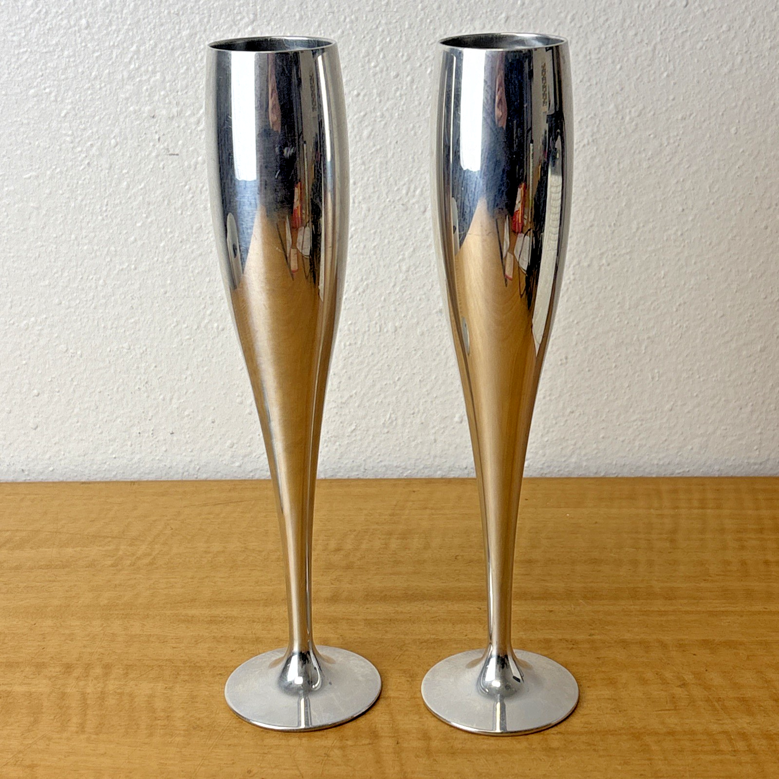 Nambe 6112 Metal Champagne Toasting Flutes - Set of 2 - 1996