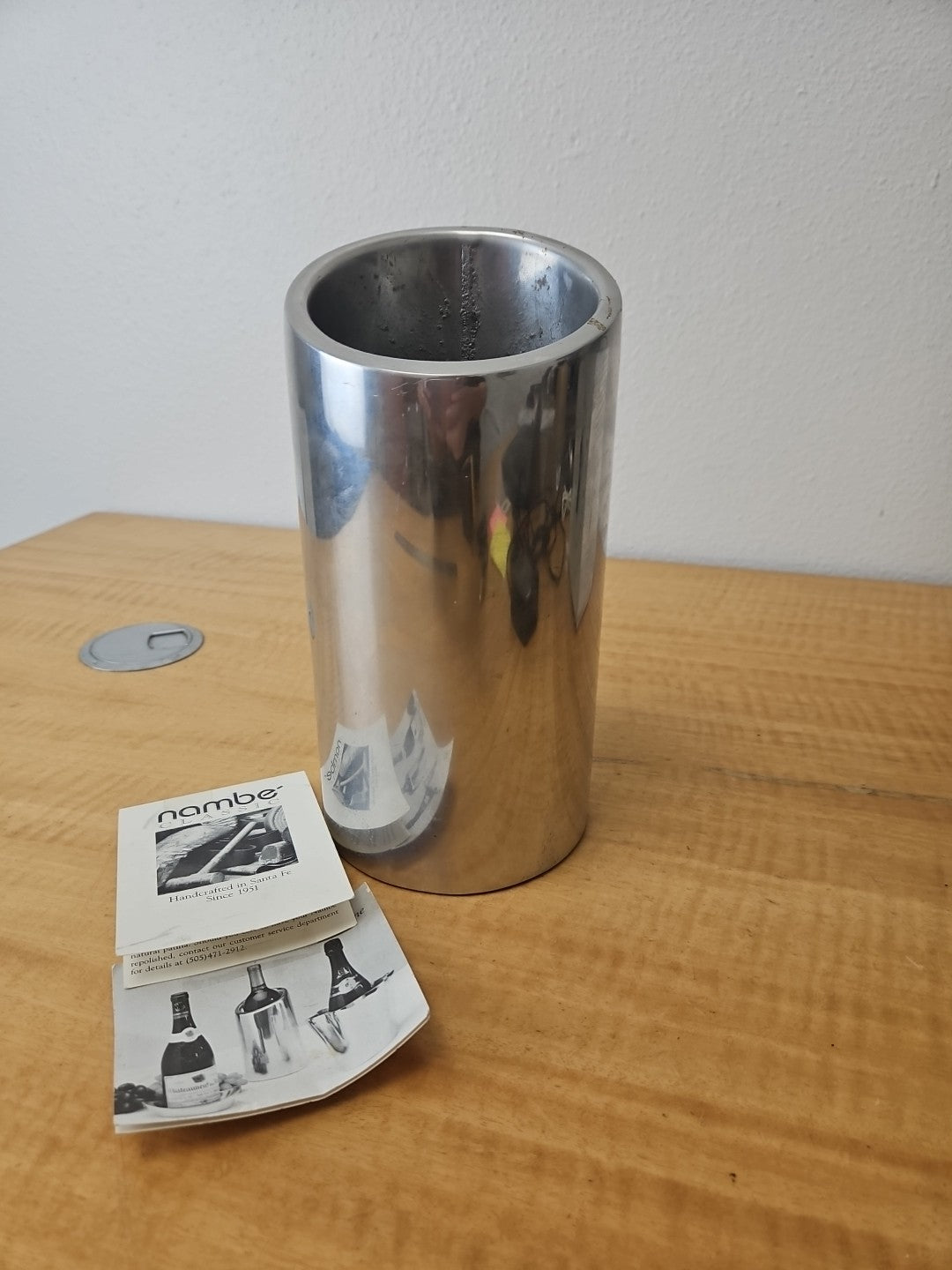 Nambe Classic Tilt Wine Chiller #541 Thick Angled Rim Mid Century Danish Modern