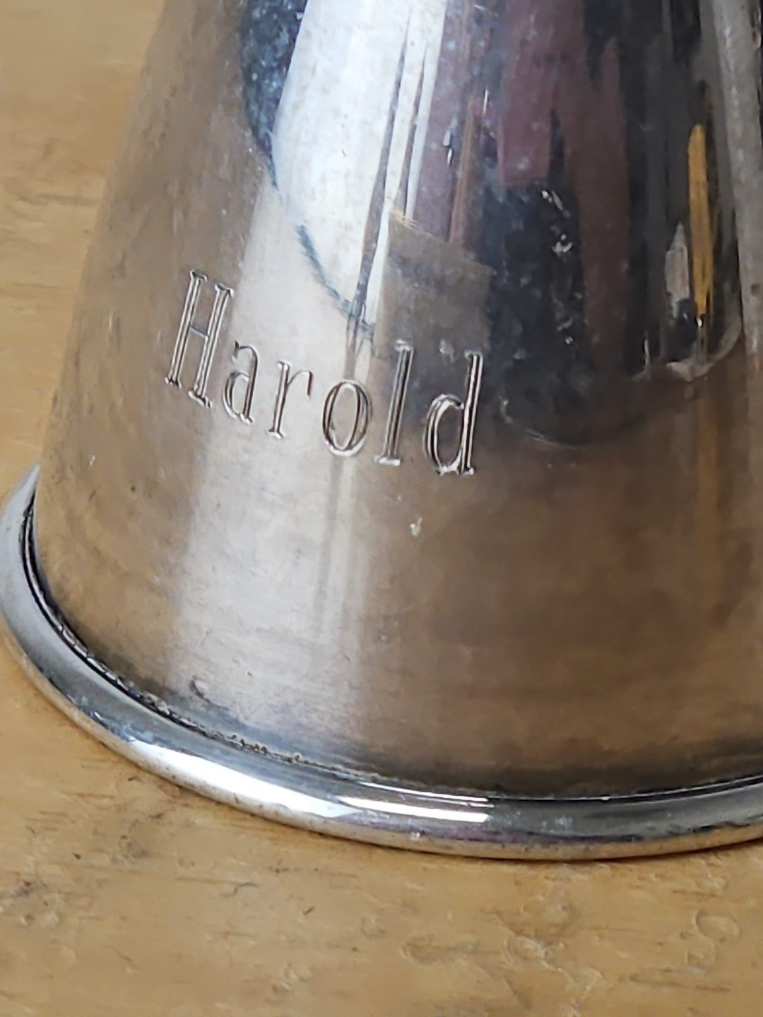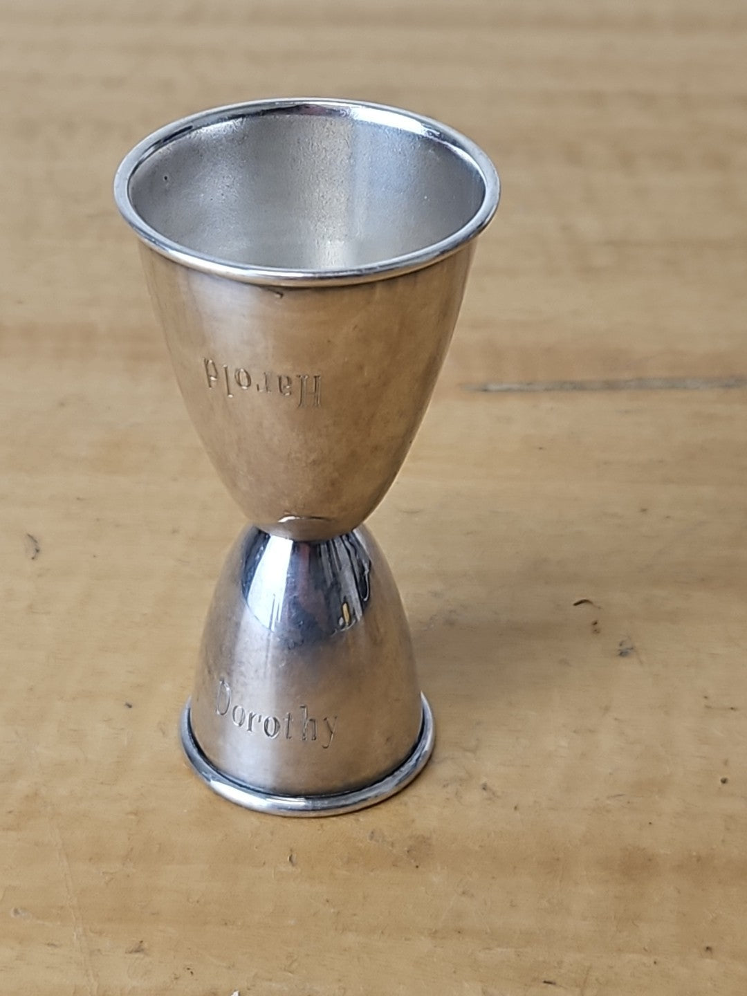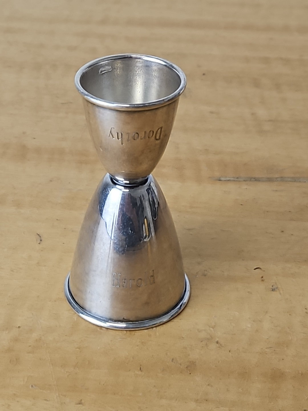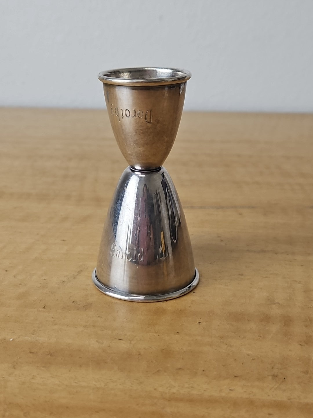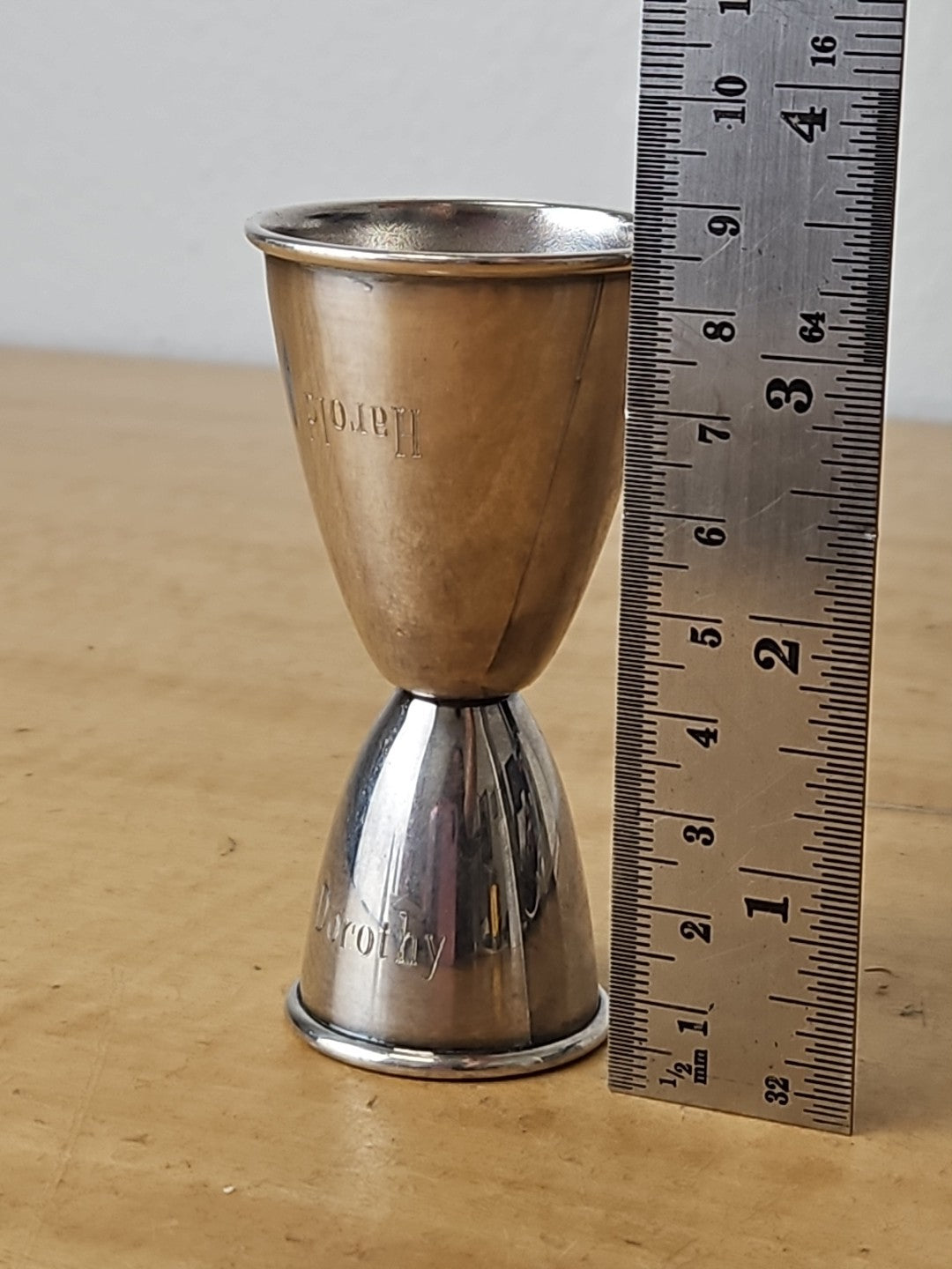 Napier Silver Jigger / Shot Measuring Cup Monogramed Harold & Dorothy