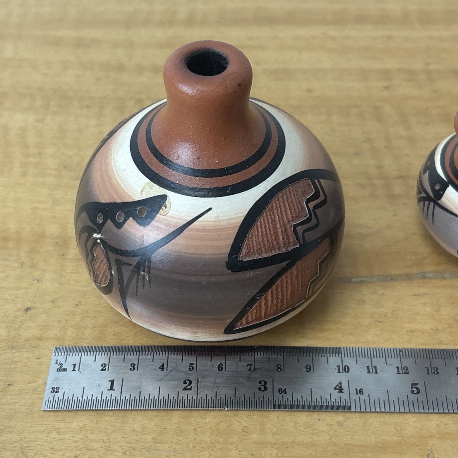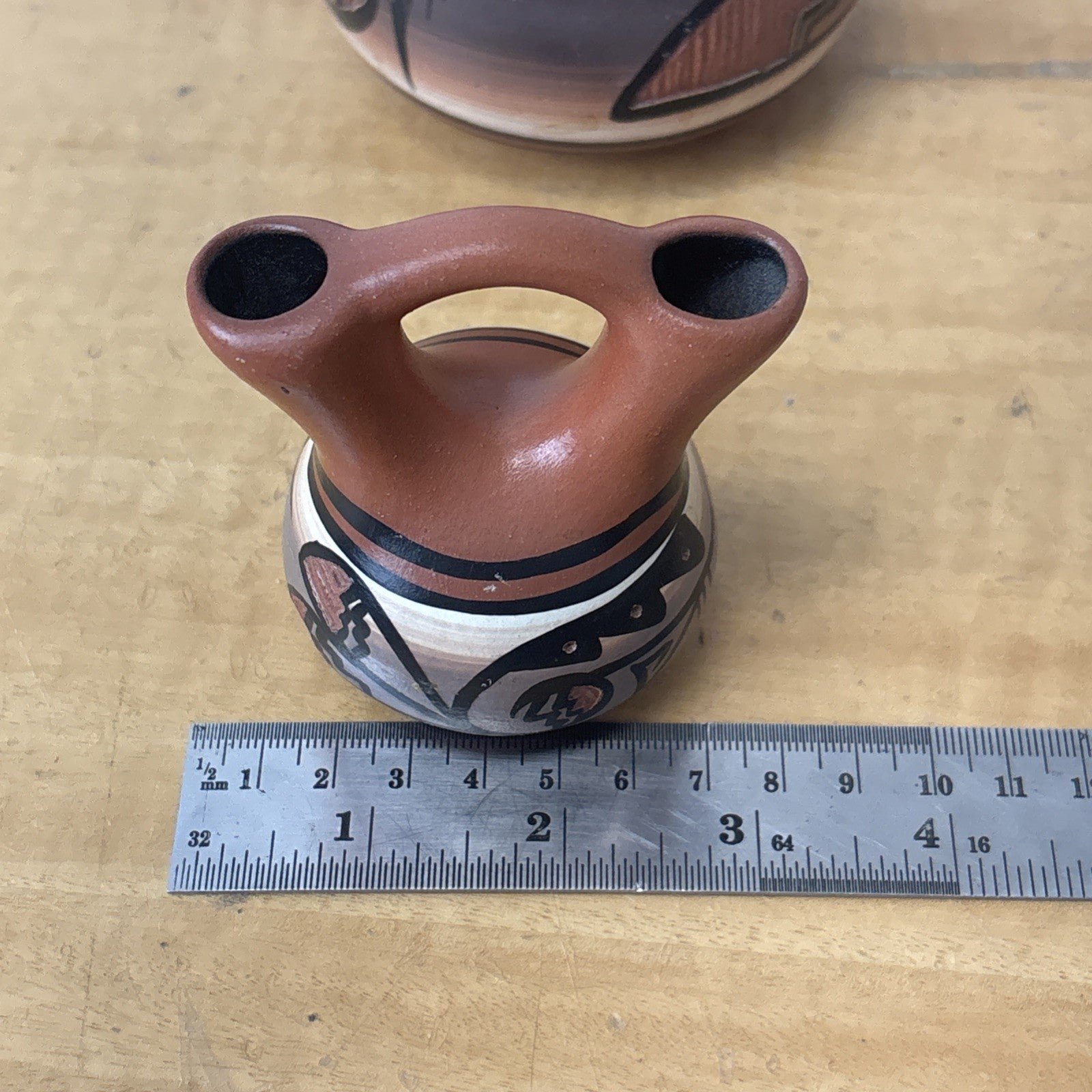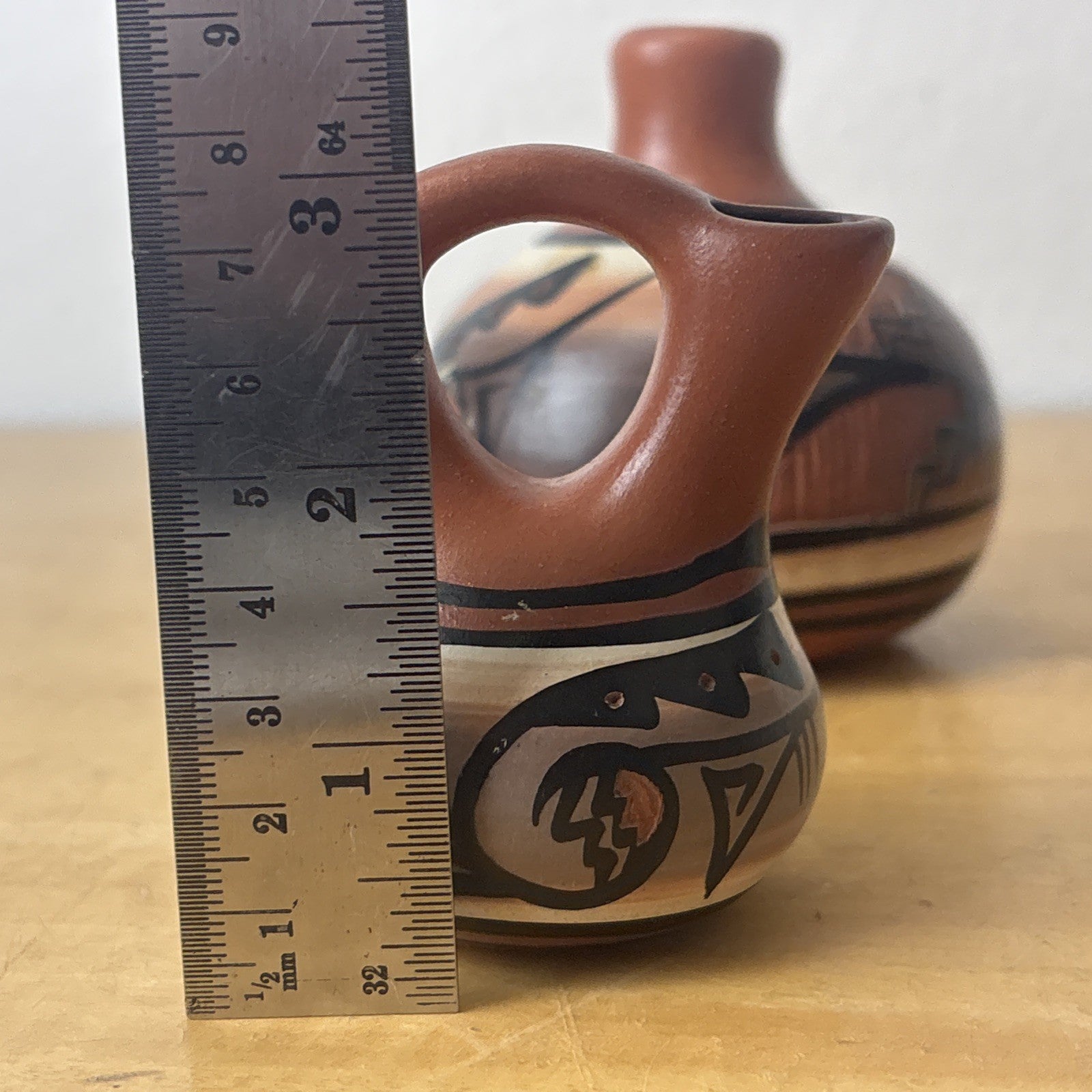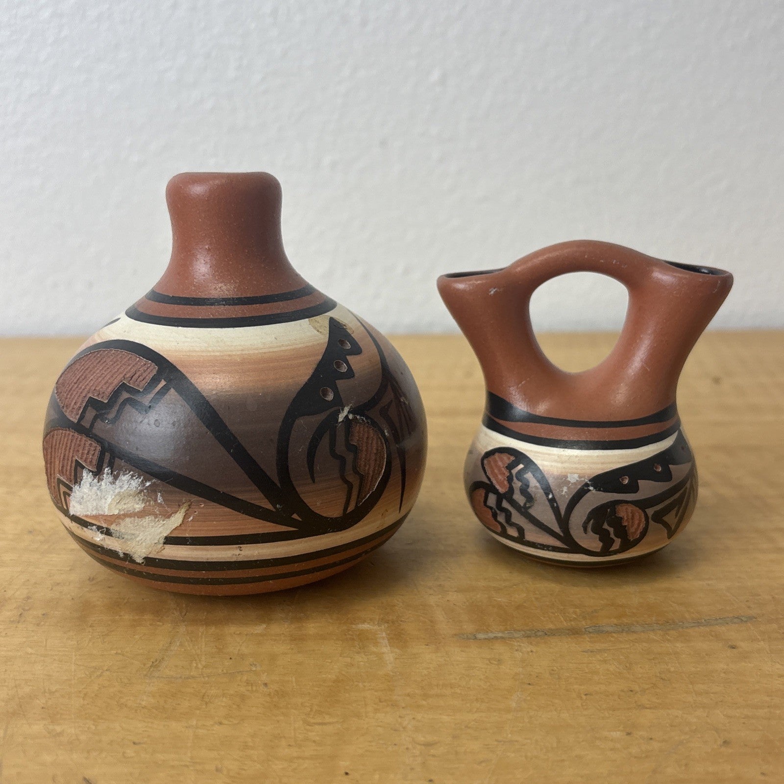 Navajo Hand Painted Wedding Vase and Bud Vase Red Clay Pottery Set