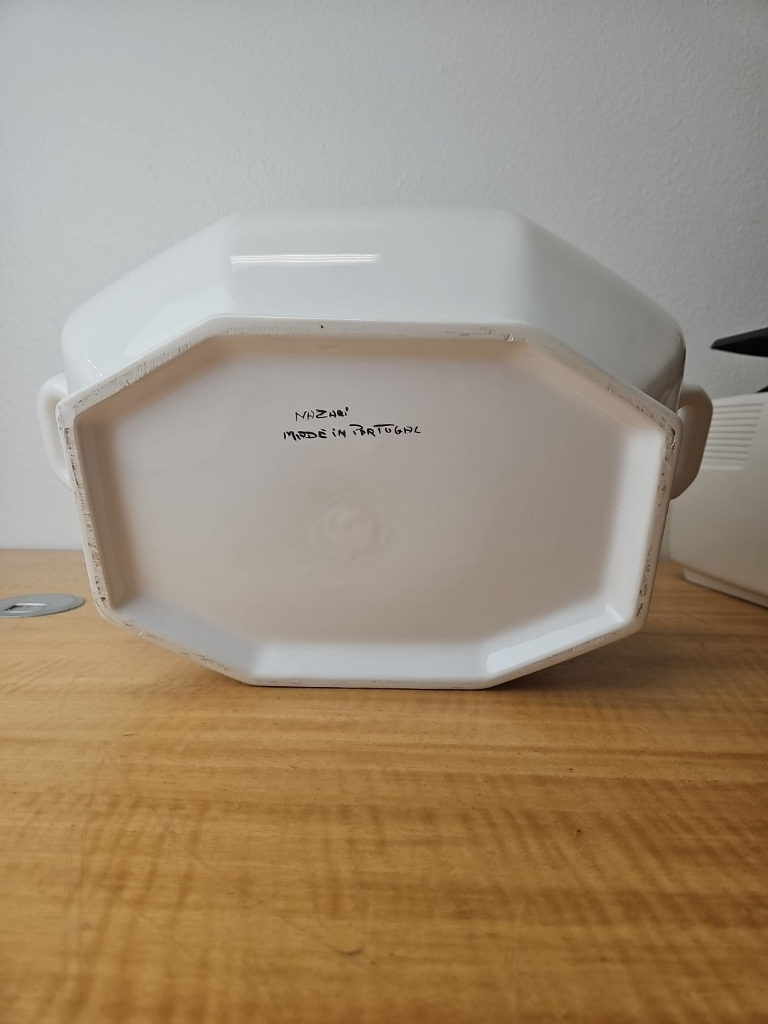 Nazari Large Covered White Tureen Casserole Bowl + Lid Made in Portugal 16" HTF