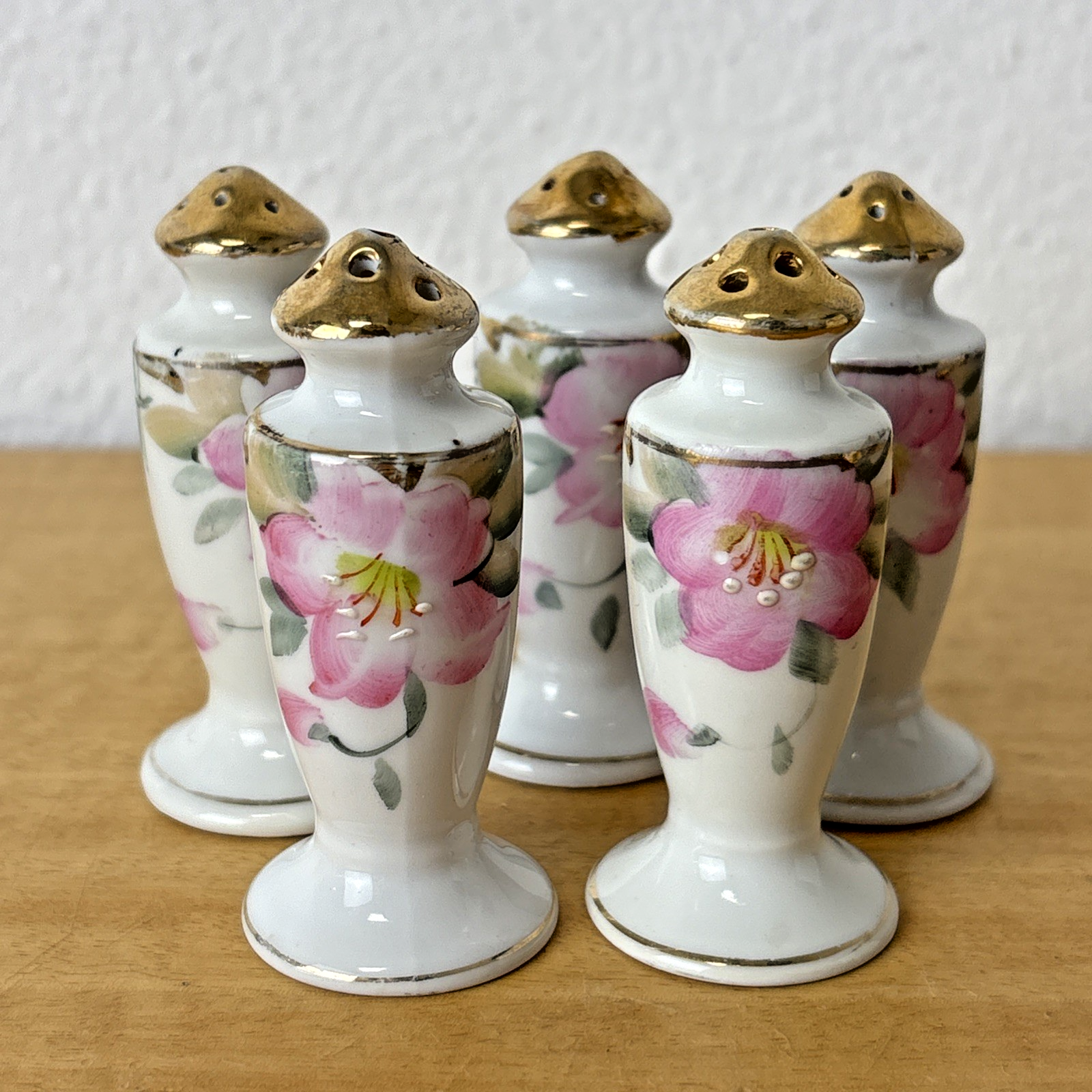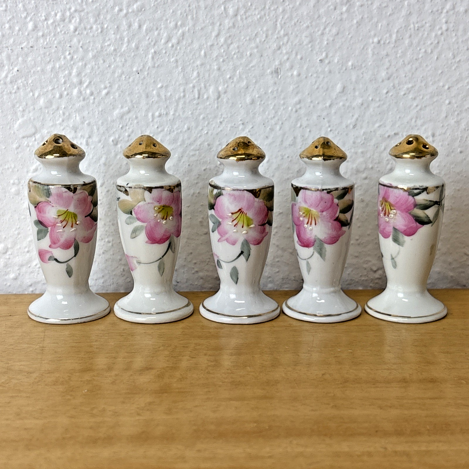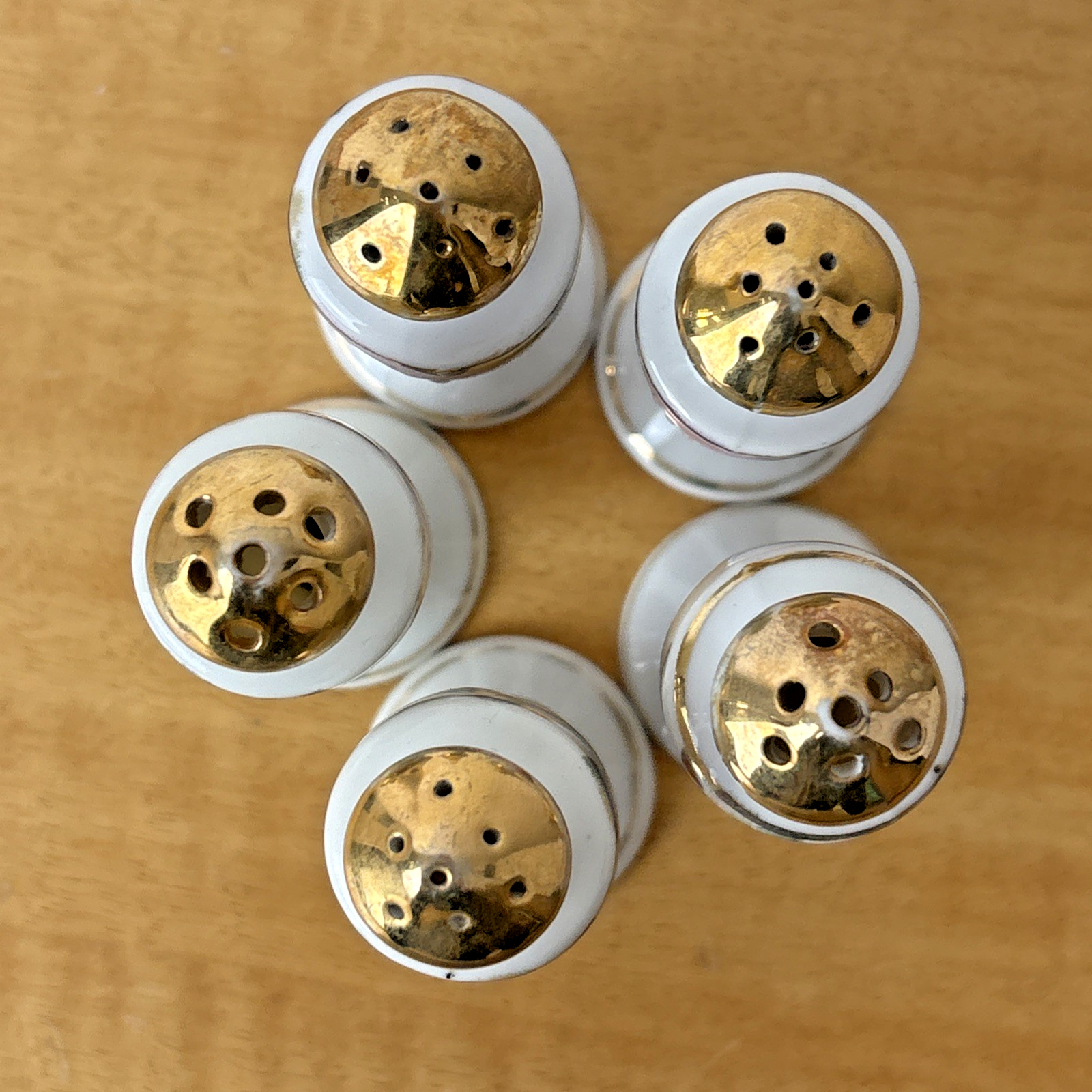 NORITAKE AZALEA Slim SALT and PEPPER Shakers Made in Japan Gold Gilt Set of 5