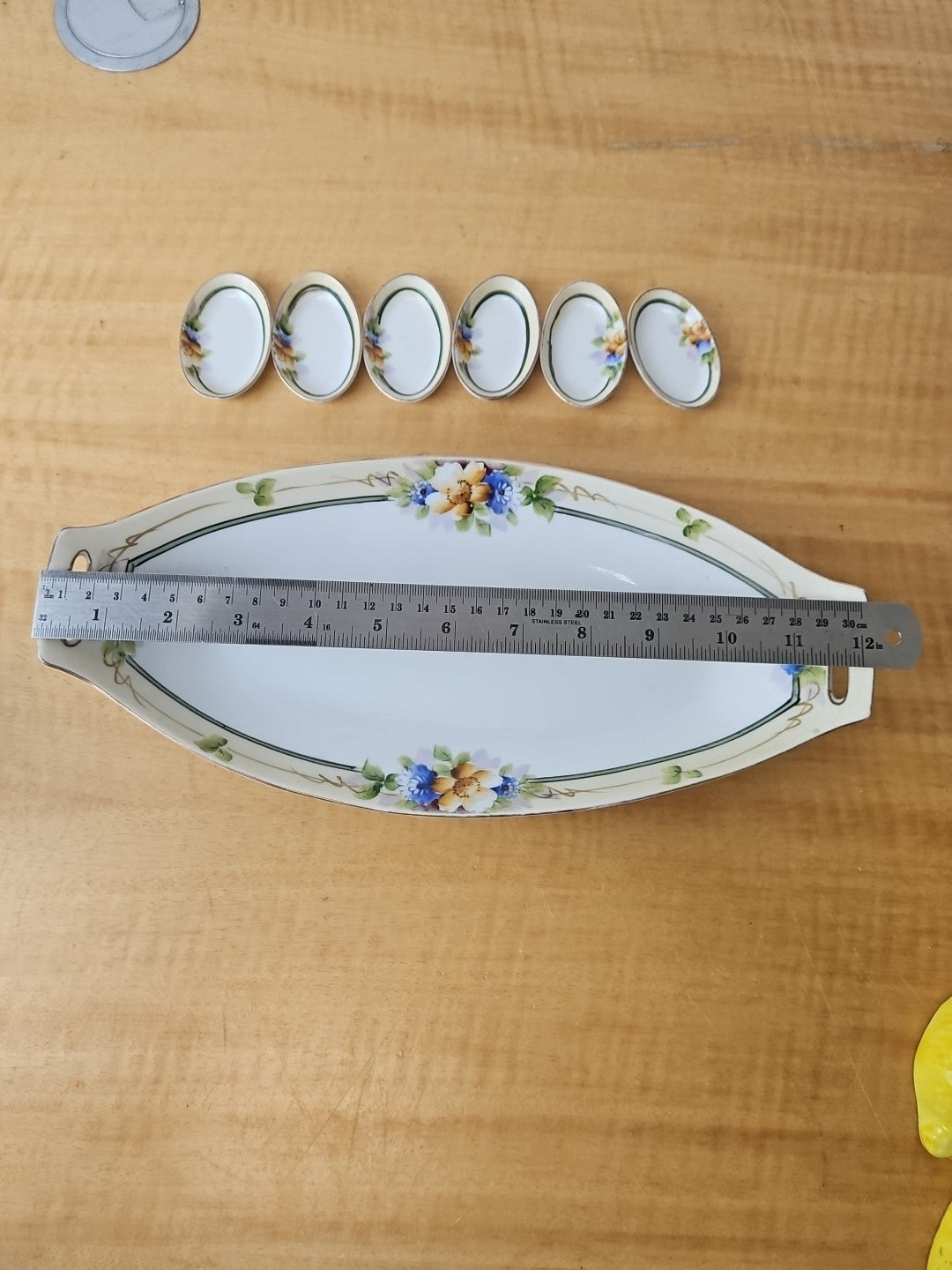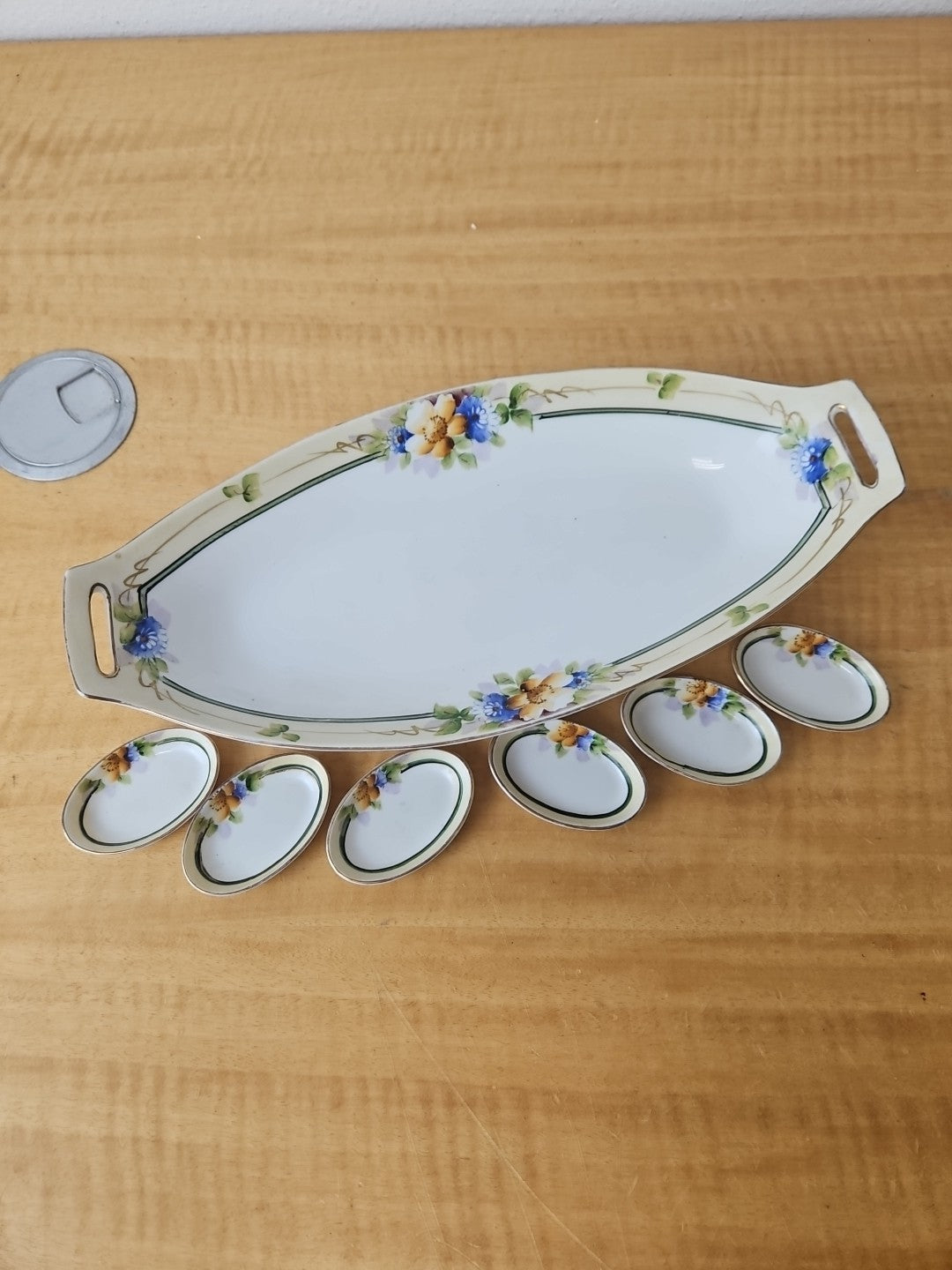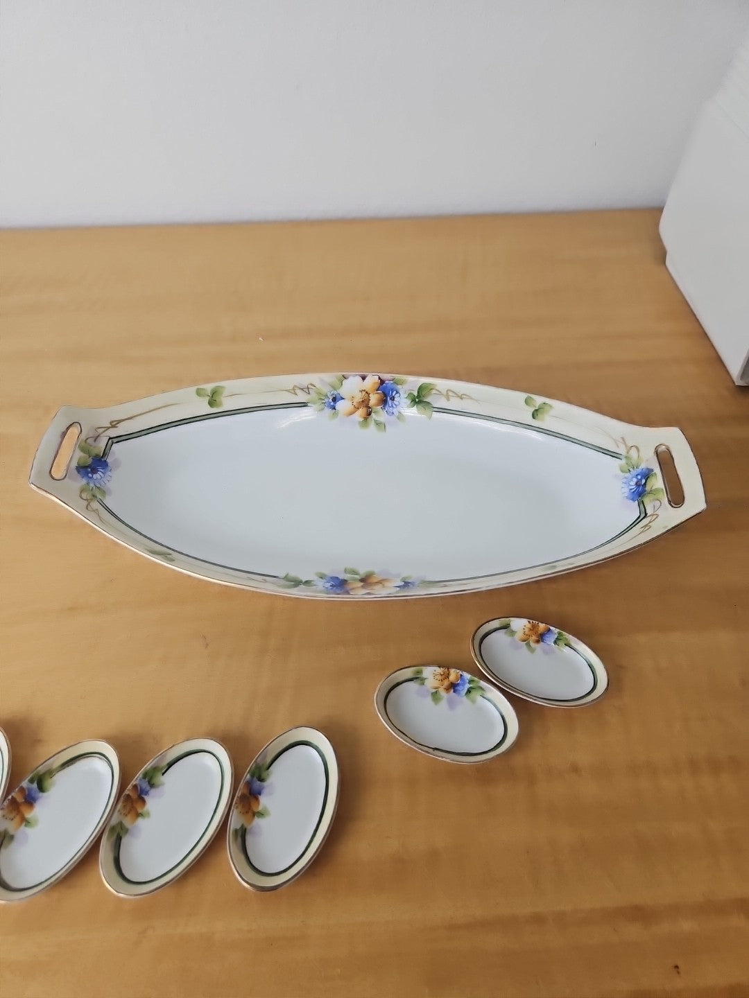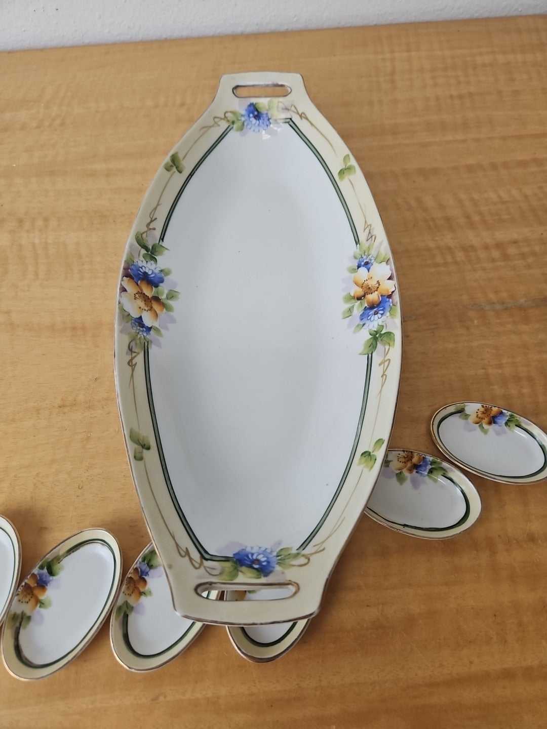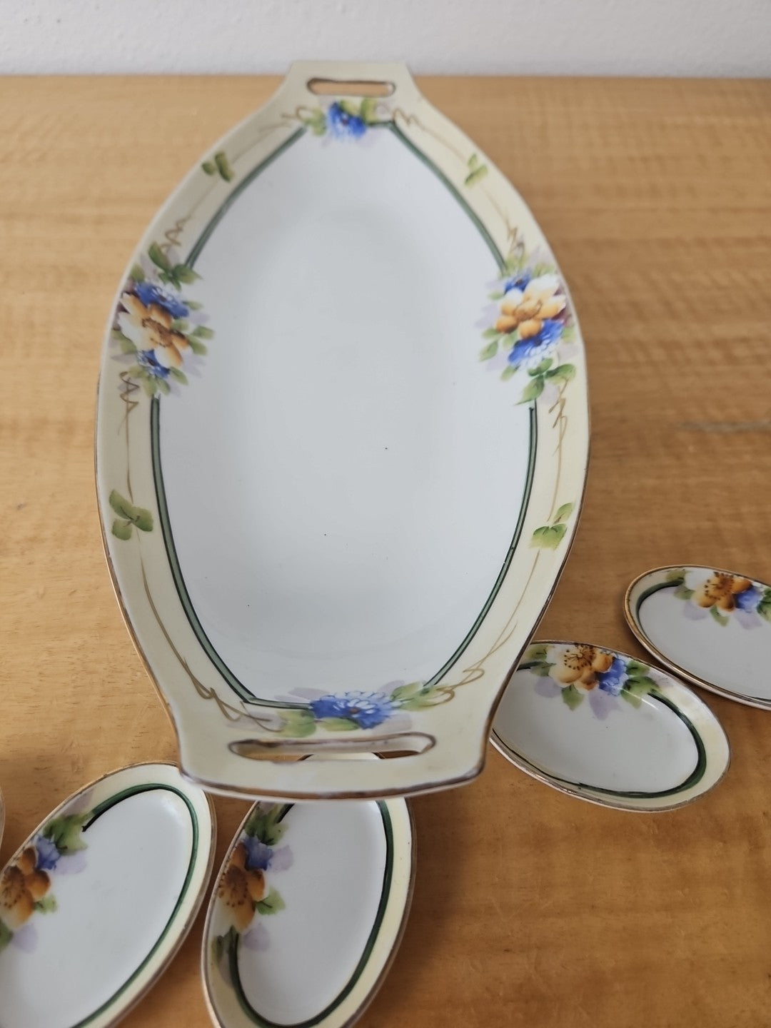 Noritake lot - Hand Painted Flowers 12" Celery Dish + 6 mini dishes early 1900s