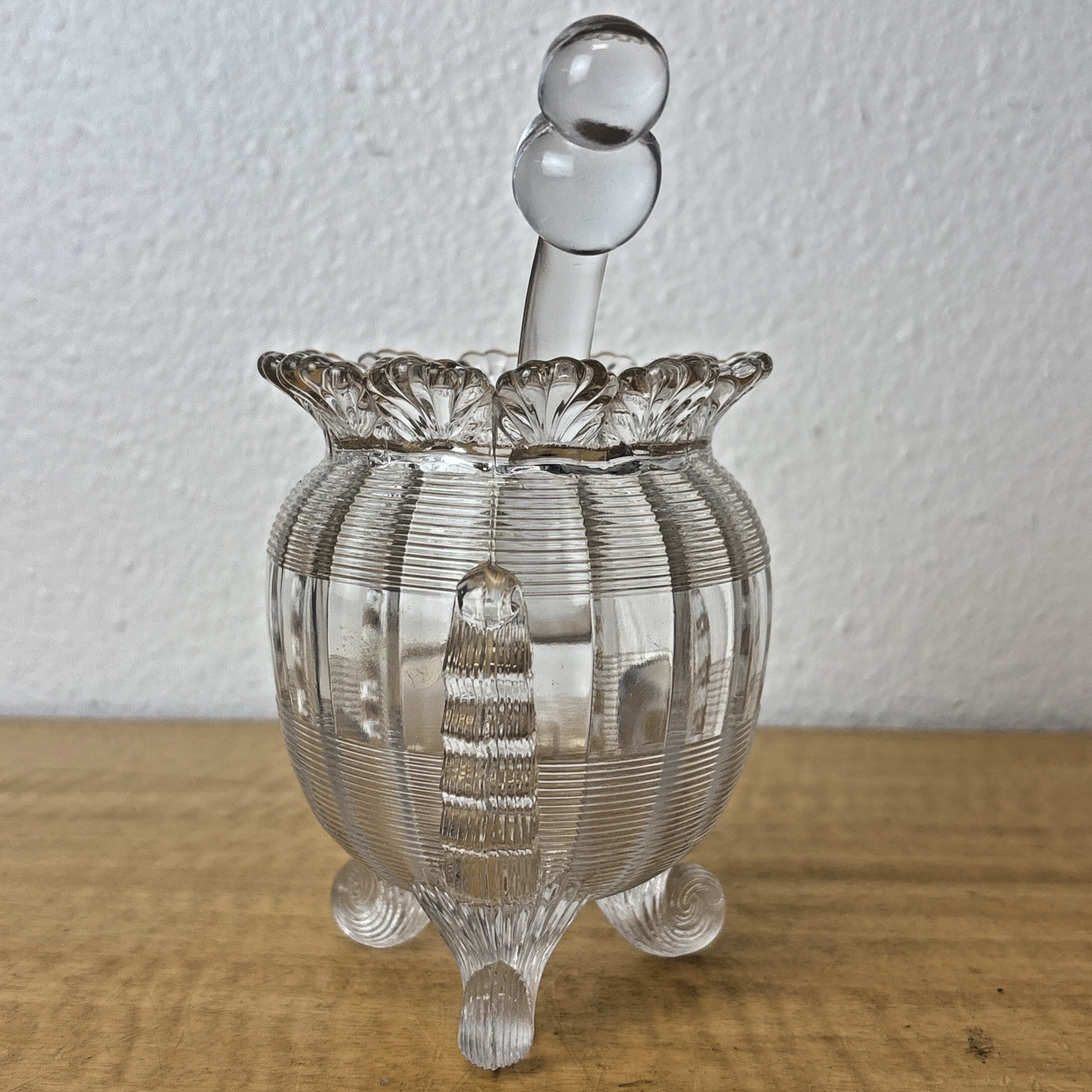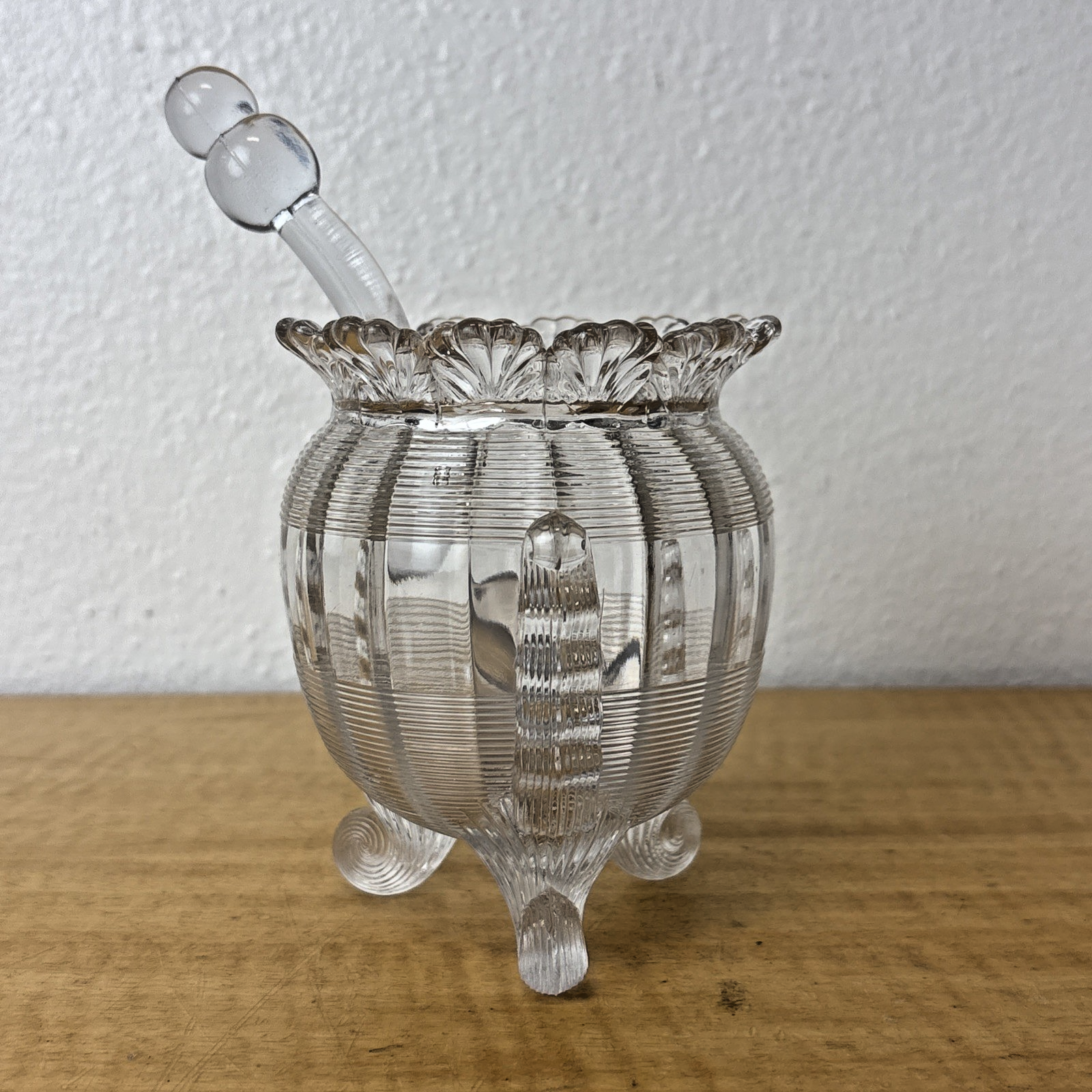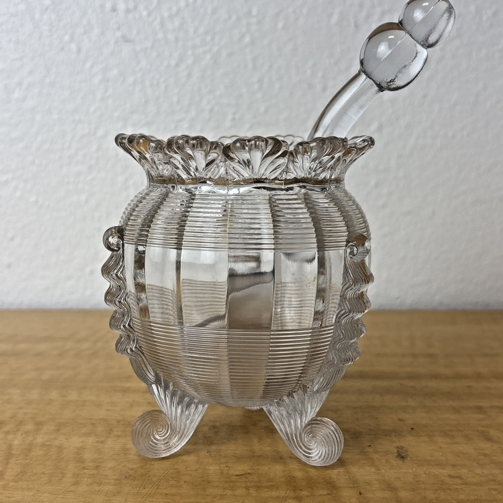 Northwood Footed Bowl Ribbed Depression Glass Sugar Bowl w/ Spoon Look Alike