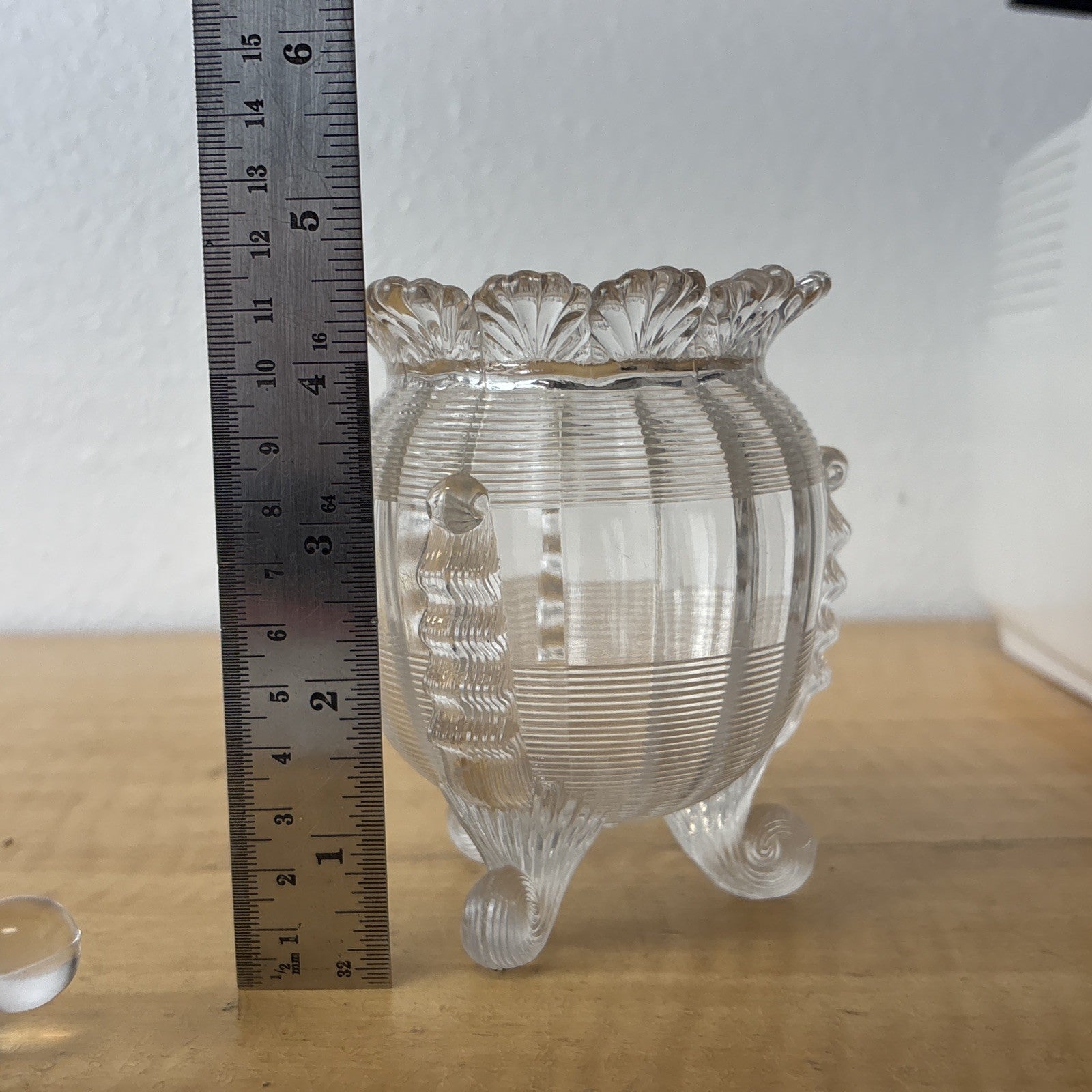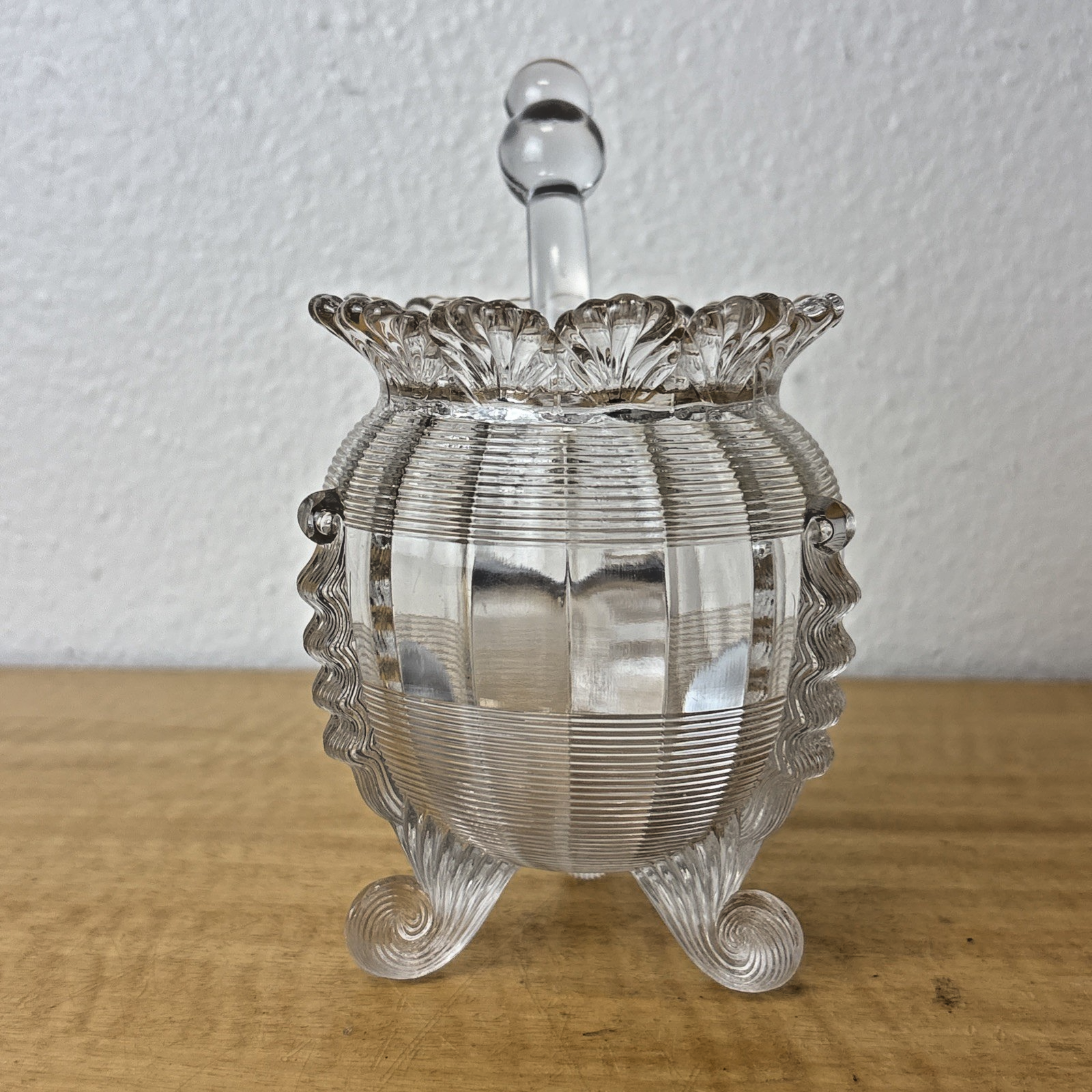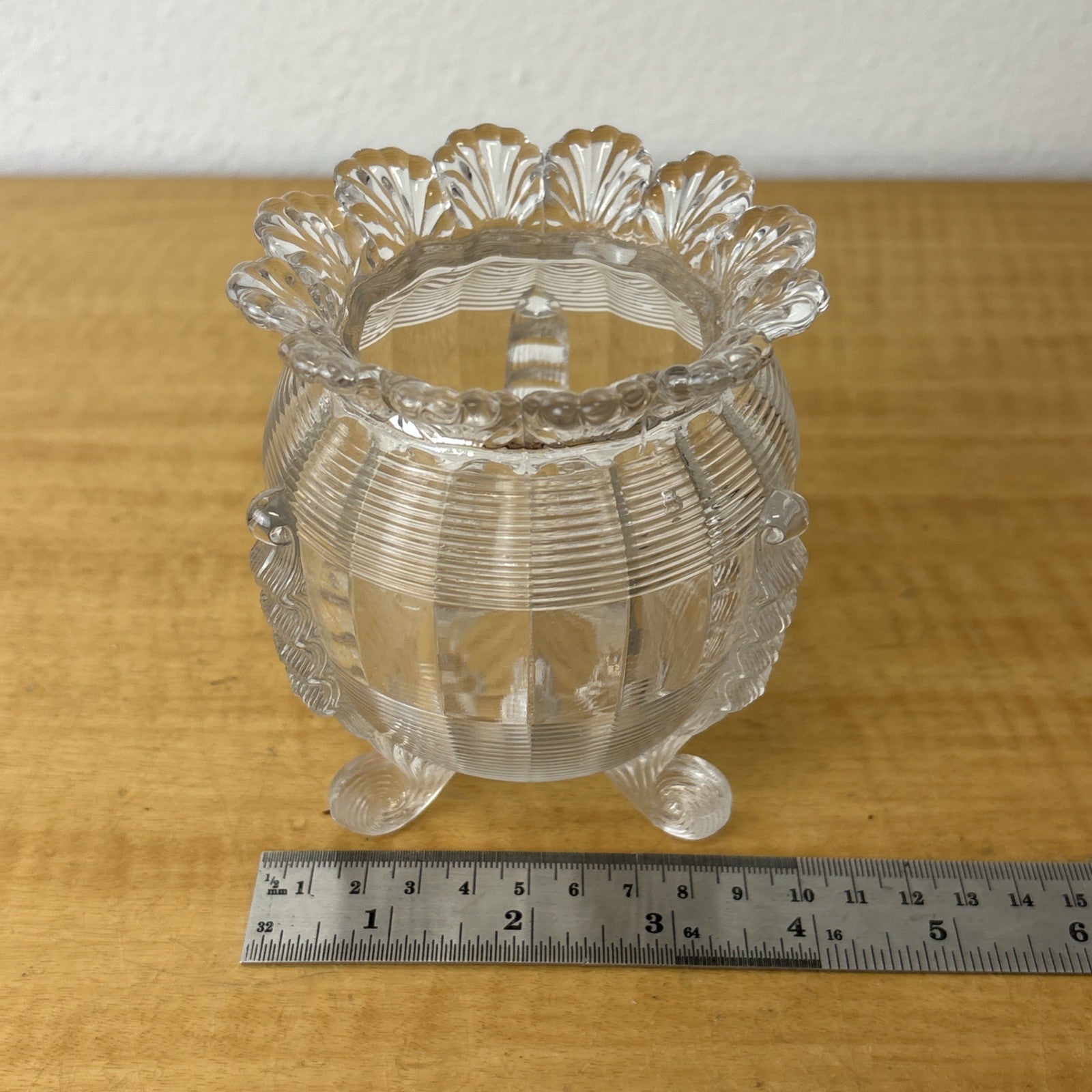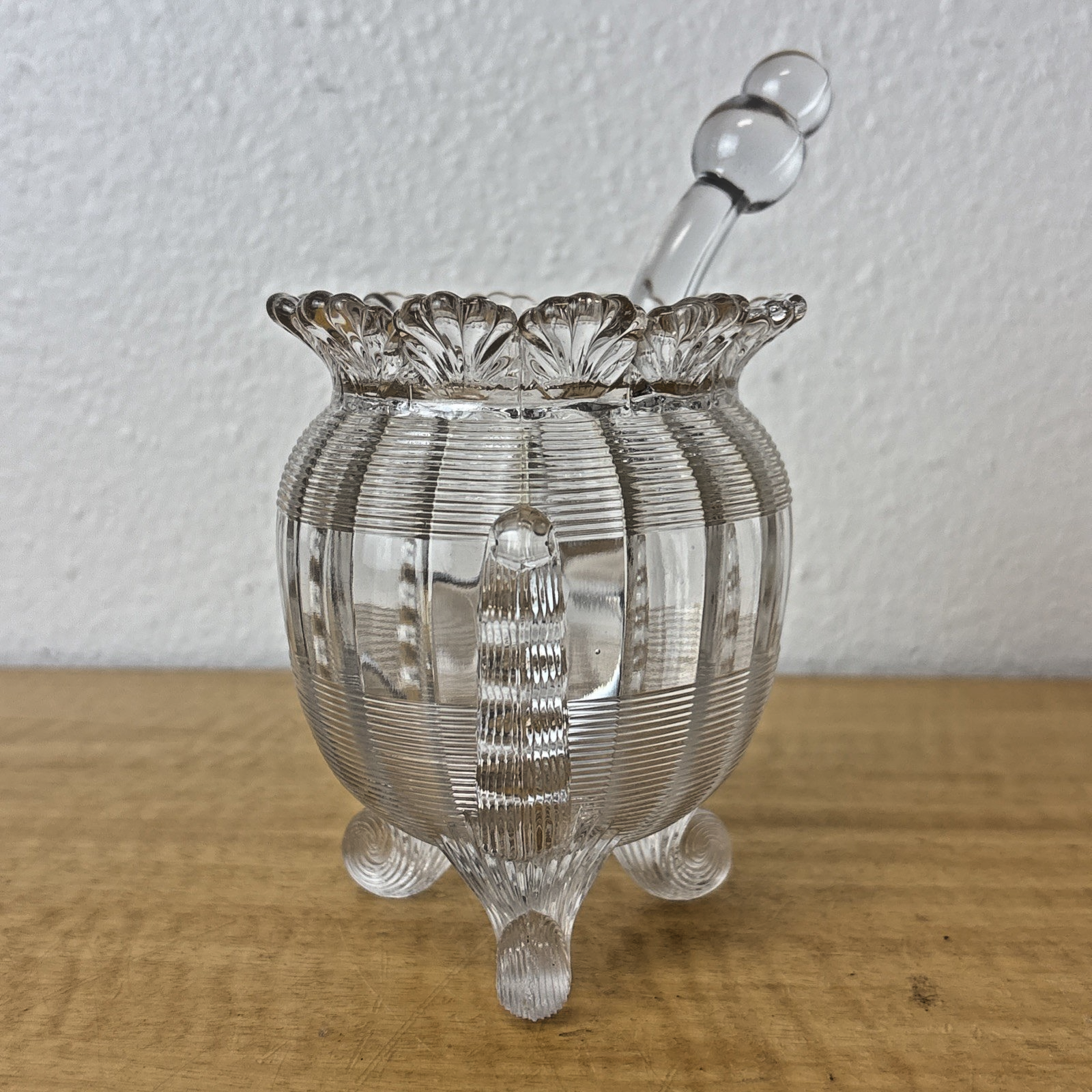Northwood Footed Bowl Ribbed Depression Glass Sugar Bowl w/ Spoon Look Alike
