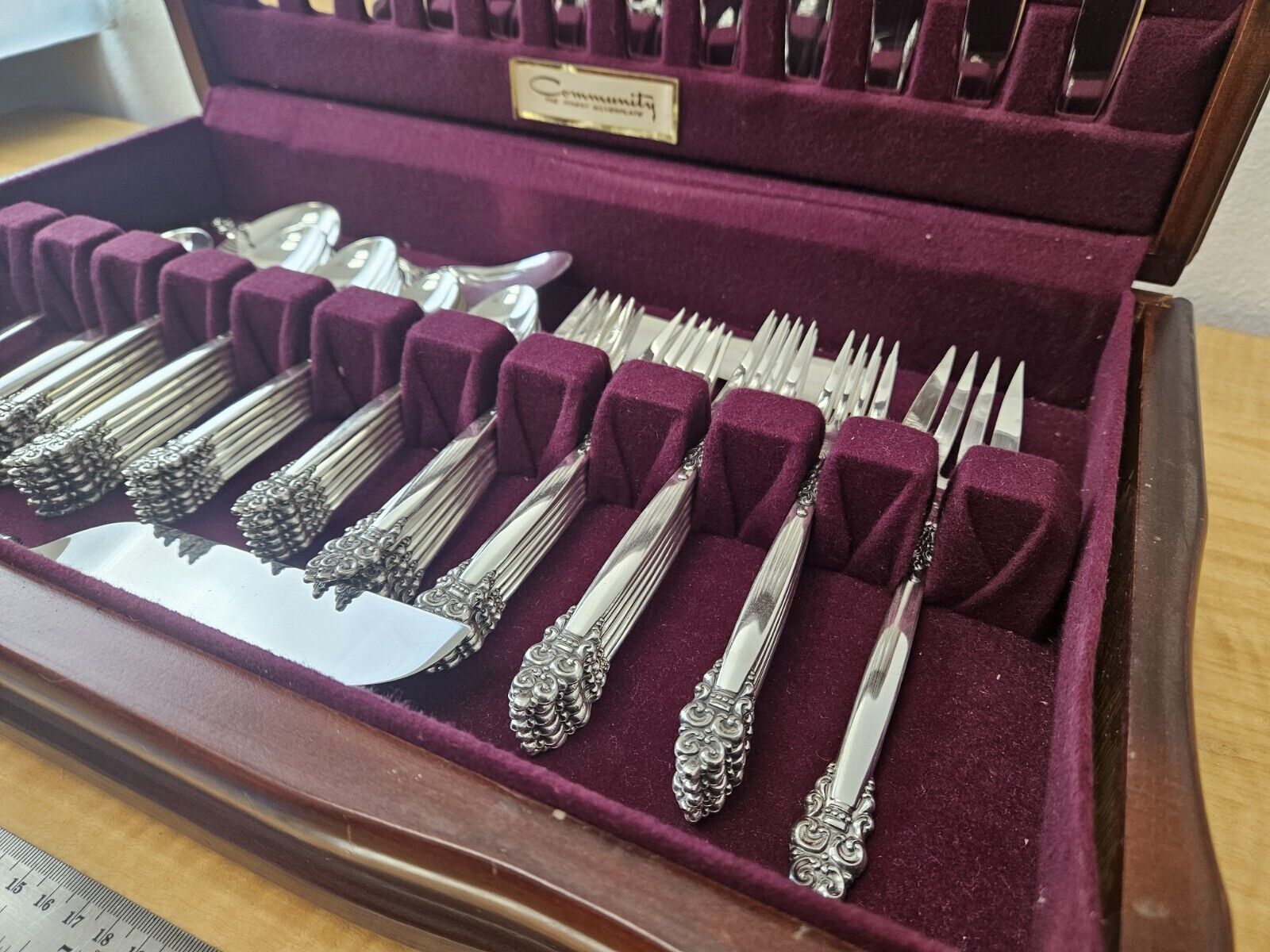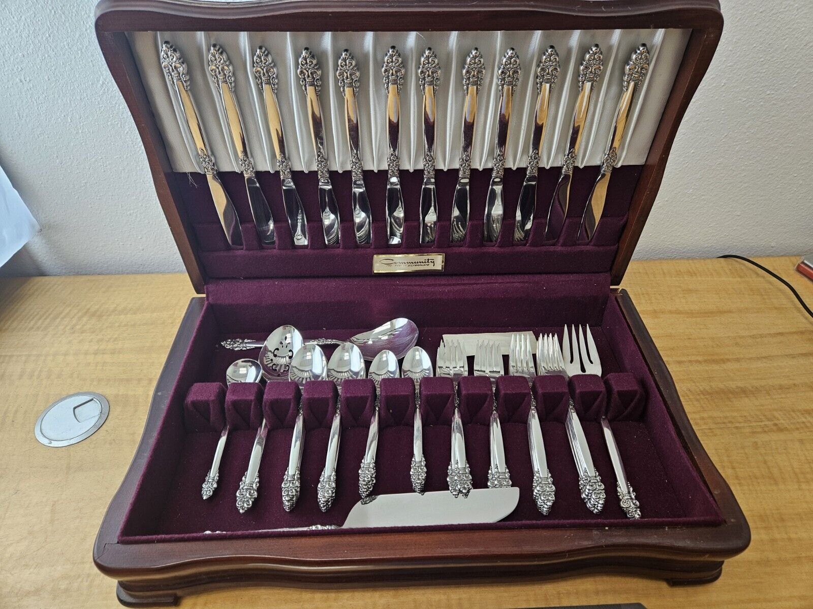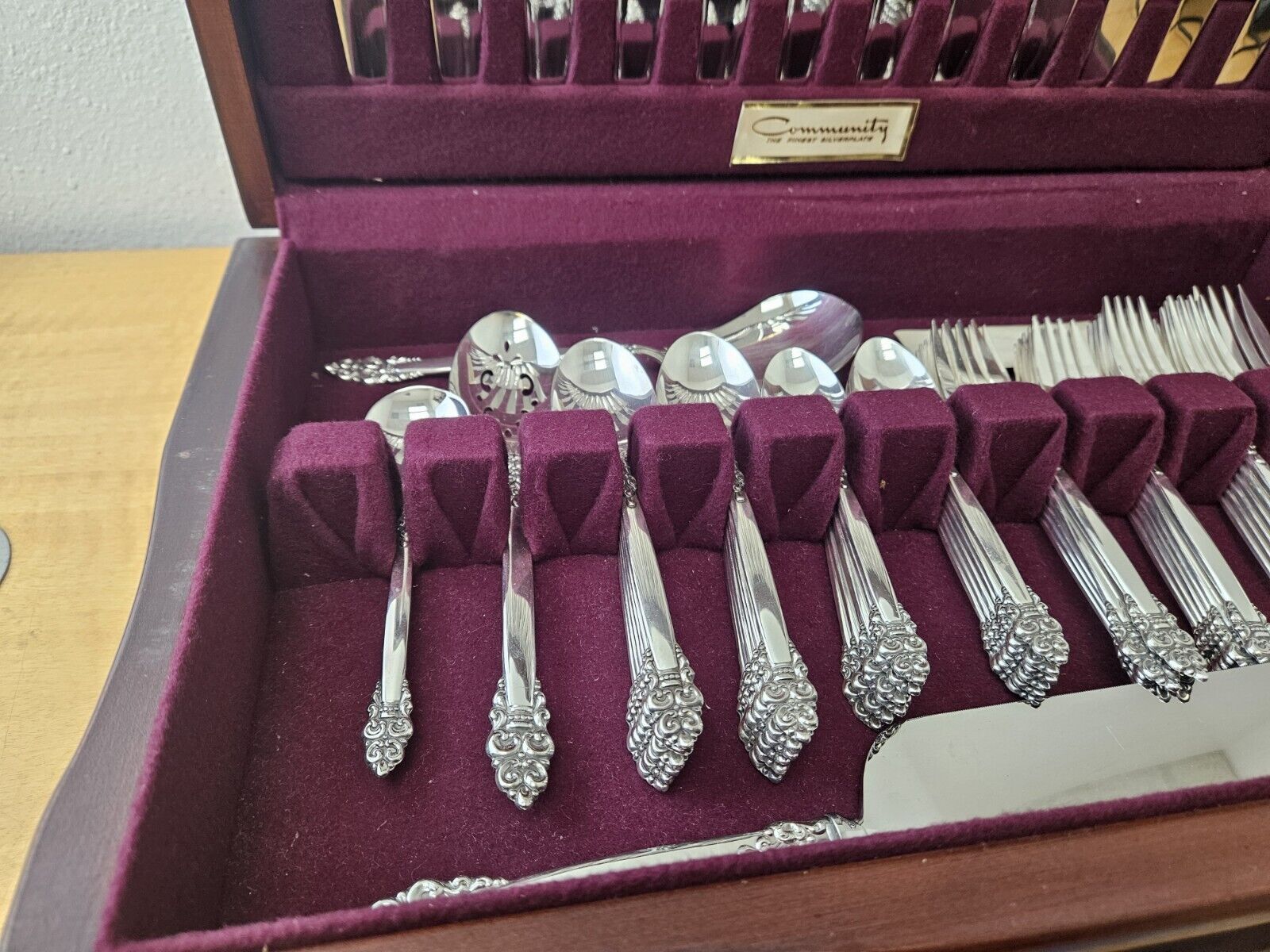 Oneida Community Silverplate Flatware 65 Pc in wood chest