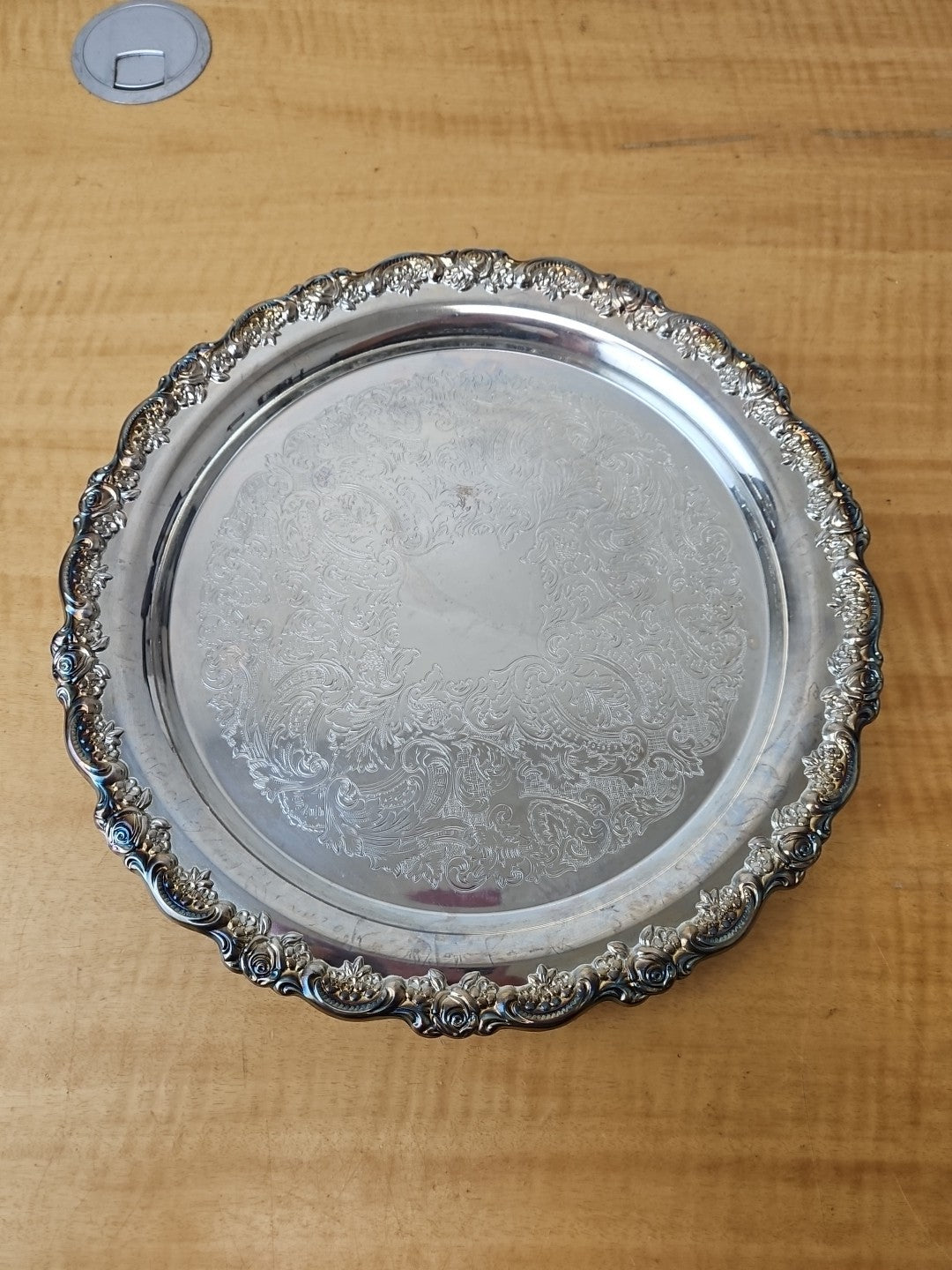 Oneida Serving Tray "Royal Provincial" 12 1/4" Round Silver plated Etched USA
