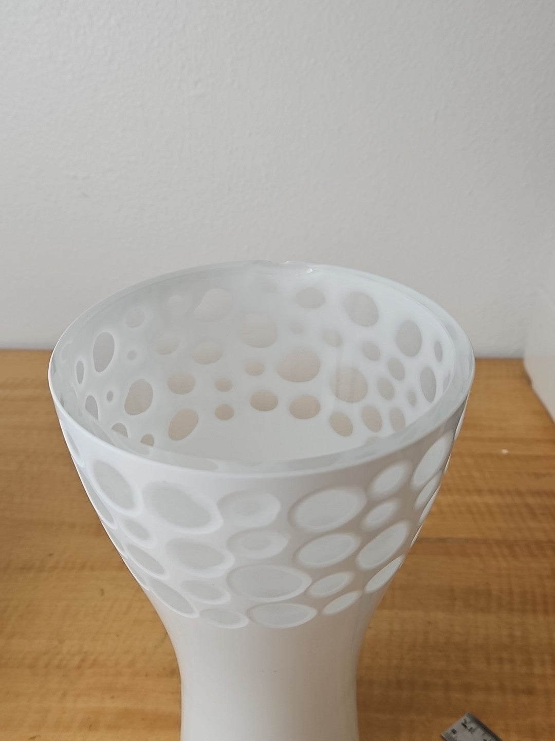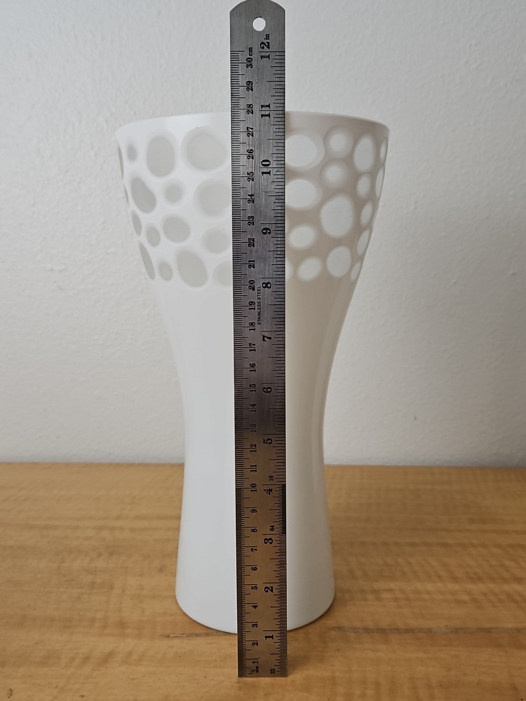 Op Art Glass Tall Vase abstract geometric white 11" circles design