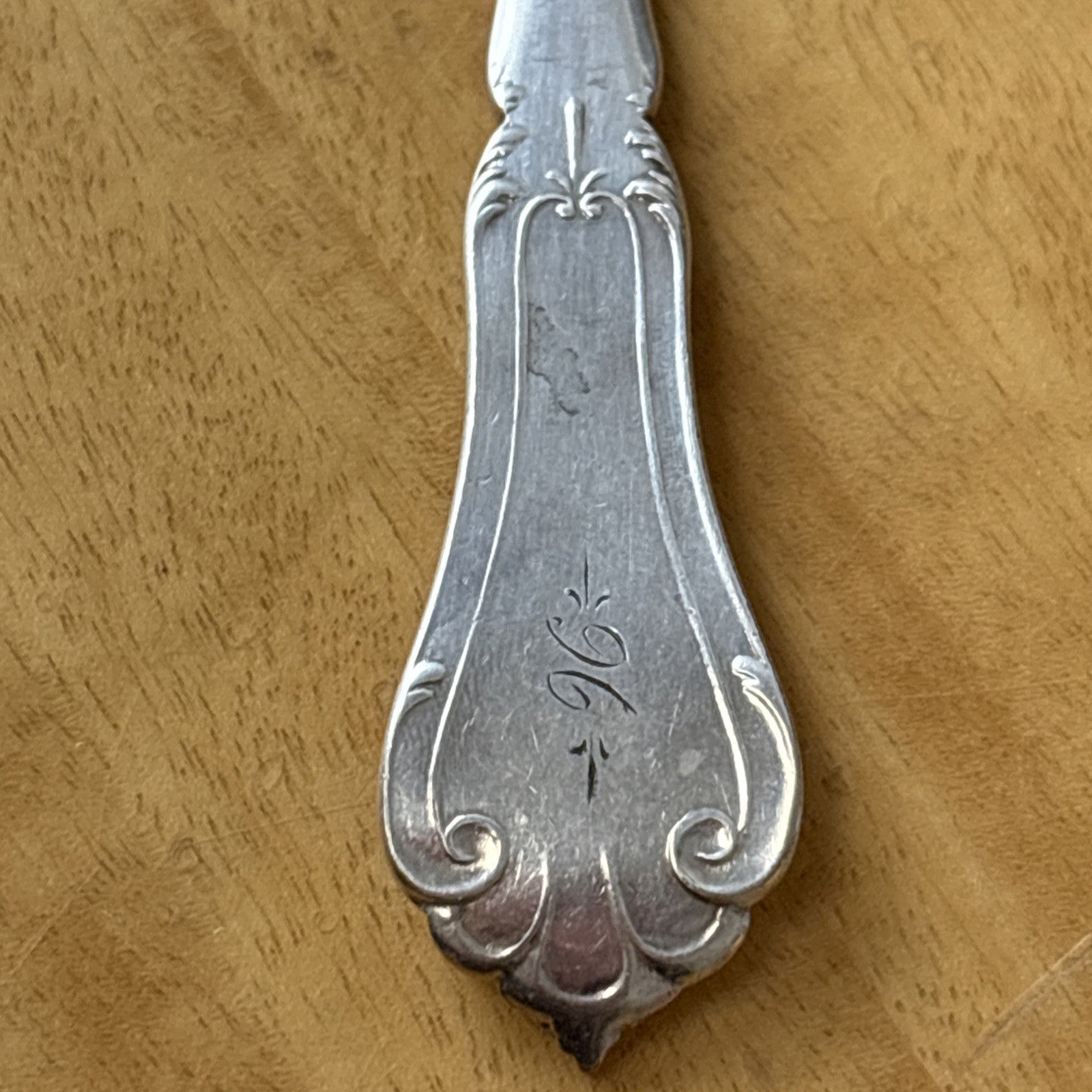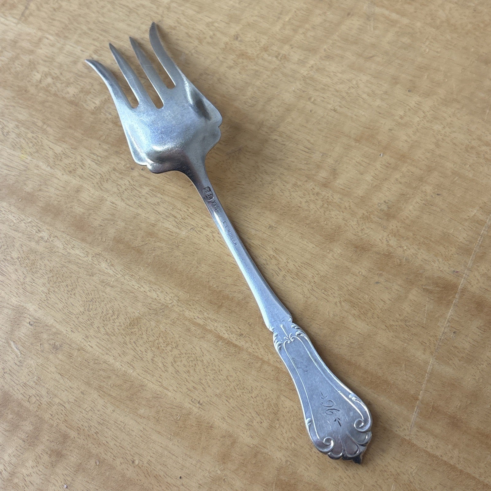 Orante Antique Silverplated Meat Fork Rare E. E. Muller XXS T. E. Marking