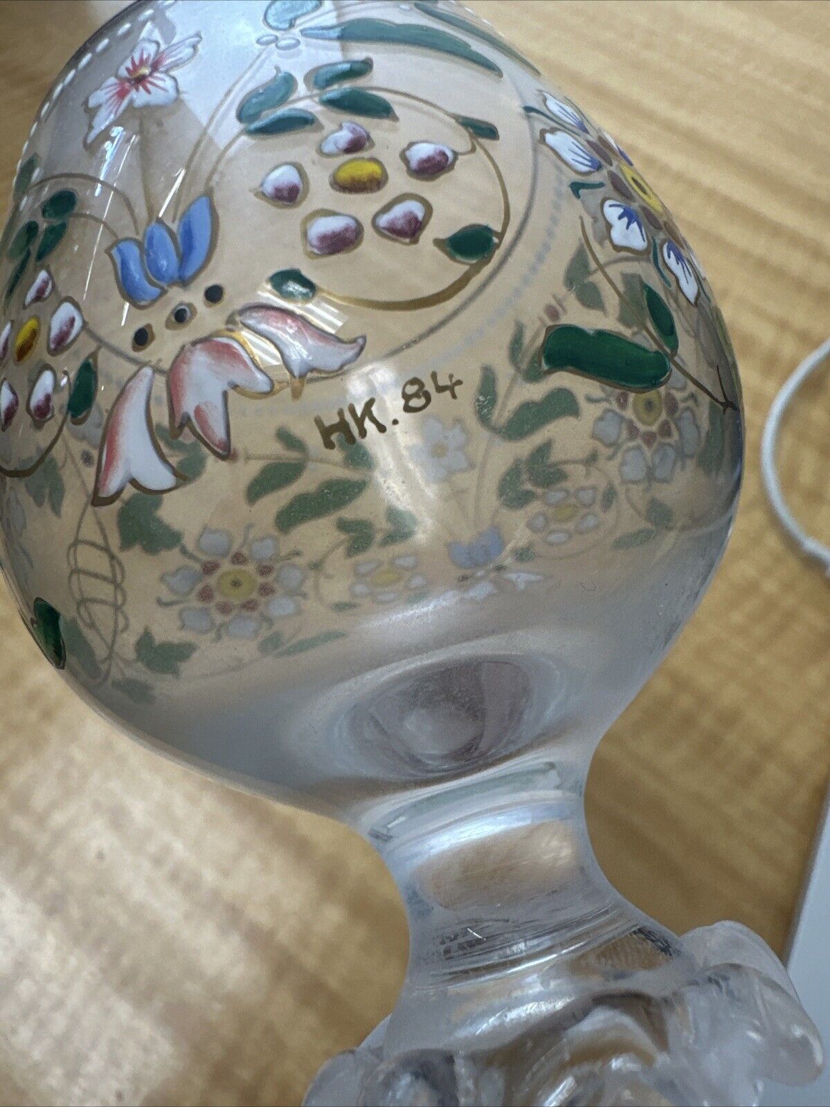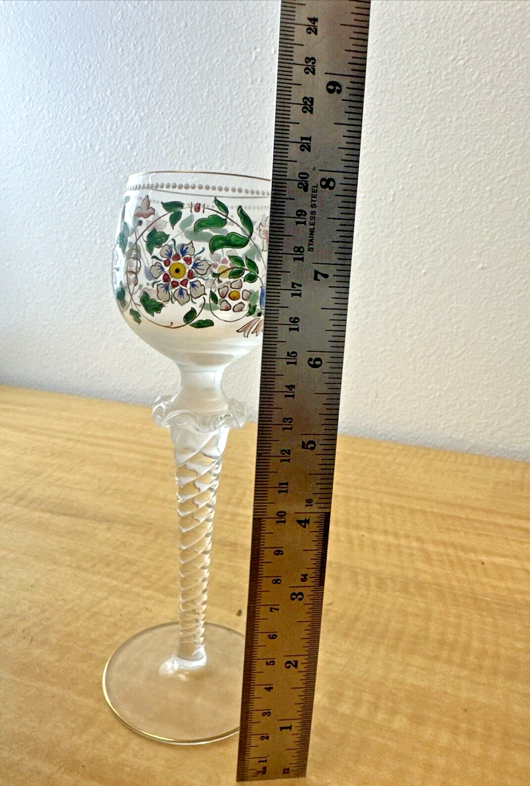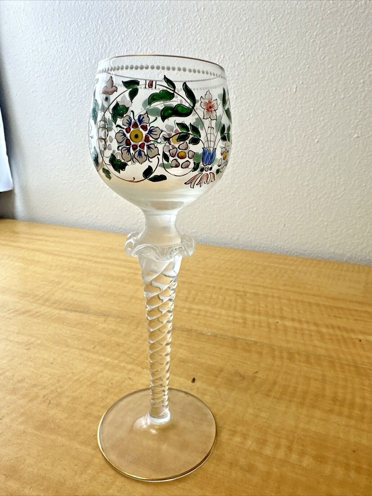 Original Wine Glasses Theresienthal with Enamel Painting Handmade 8" Tall Signed