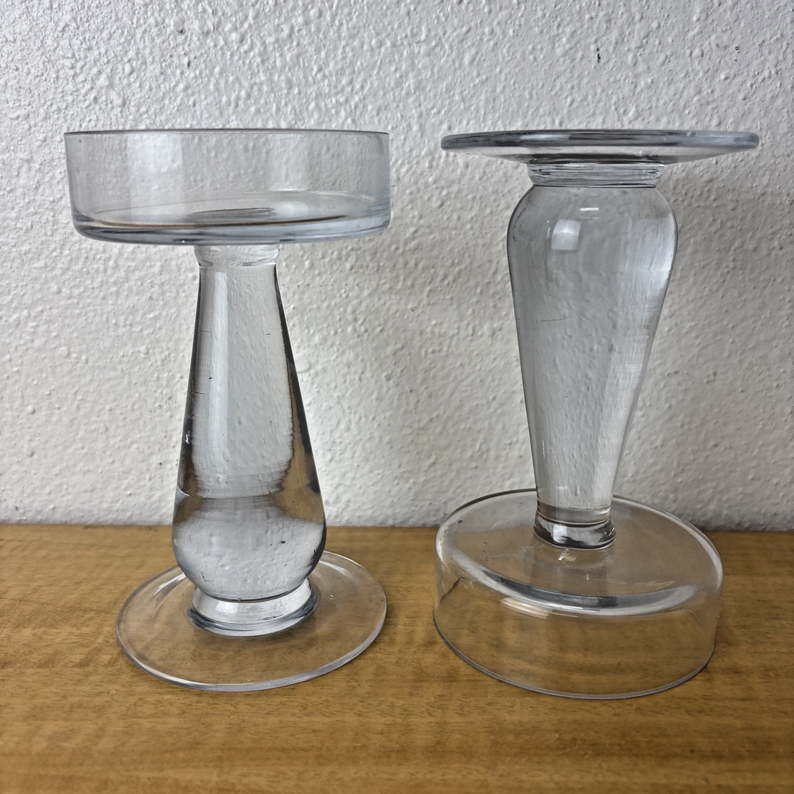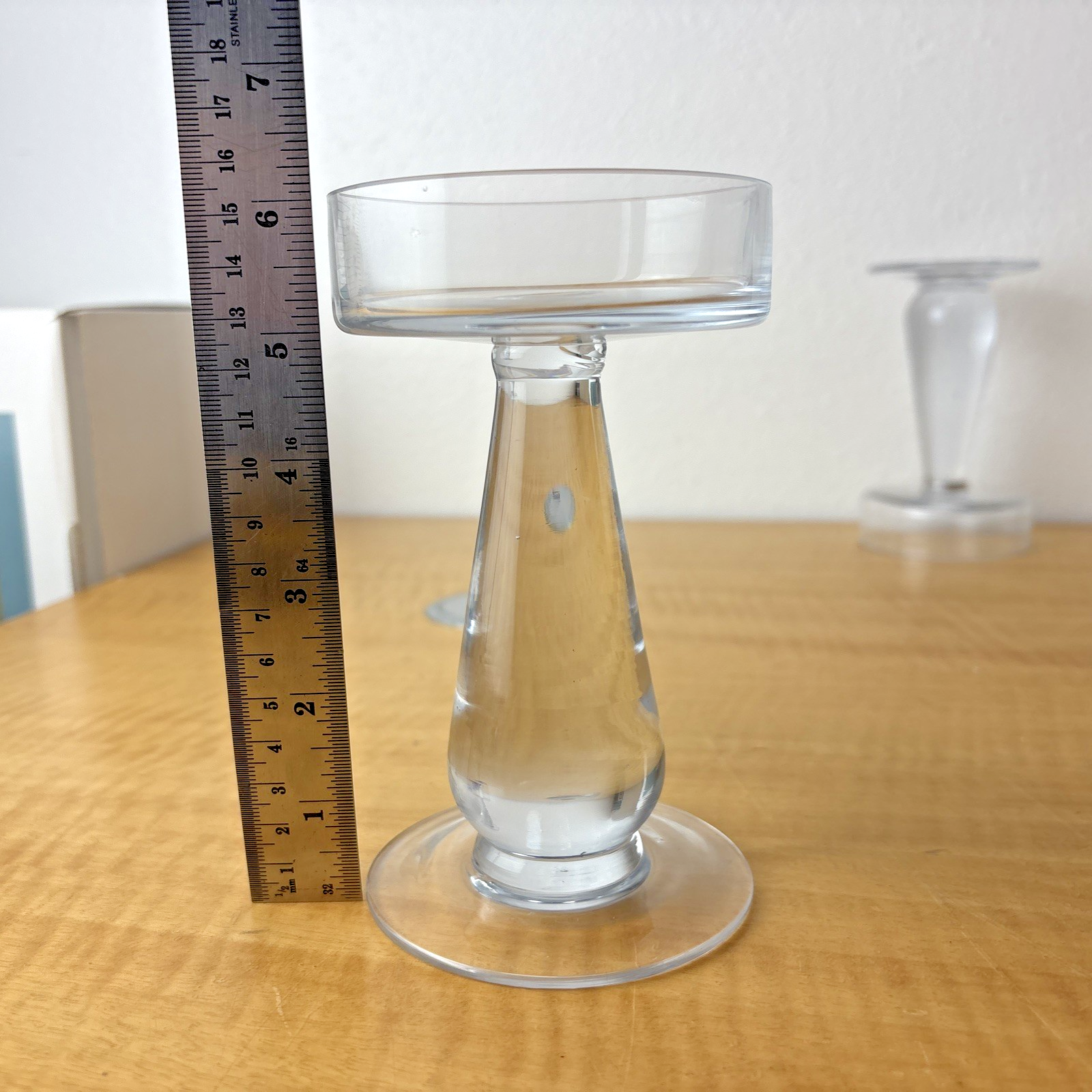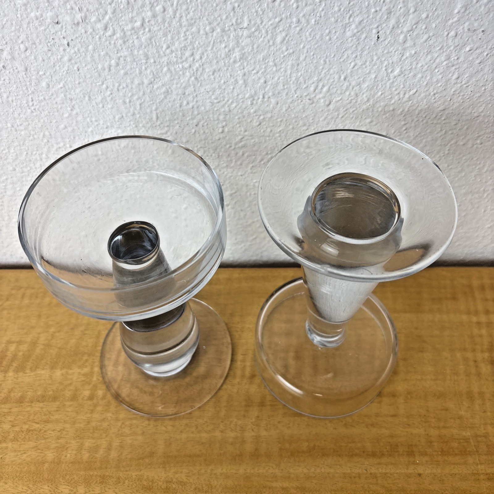 Pair of Glass Reversible Pillar Candle Stick Holders - Mid Century Modern