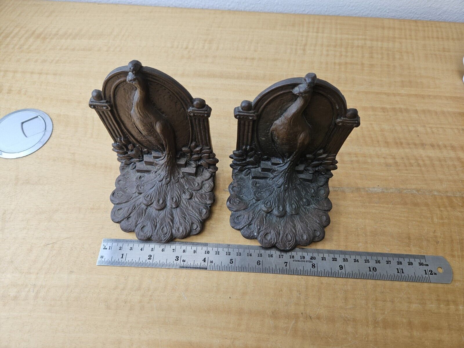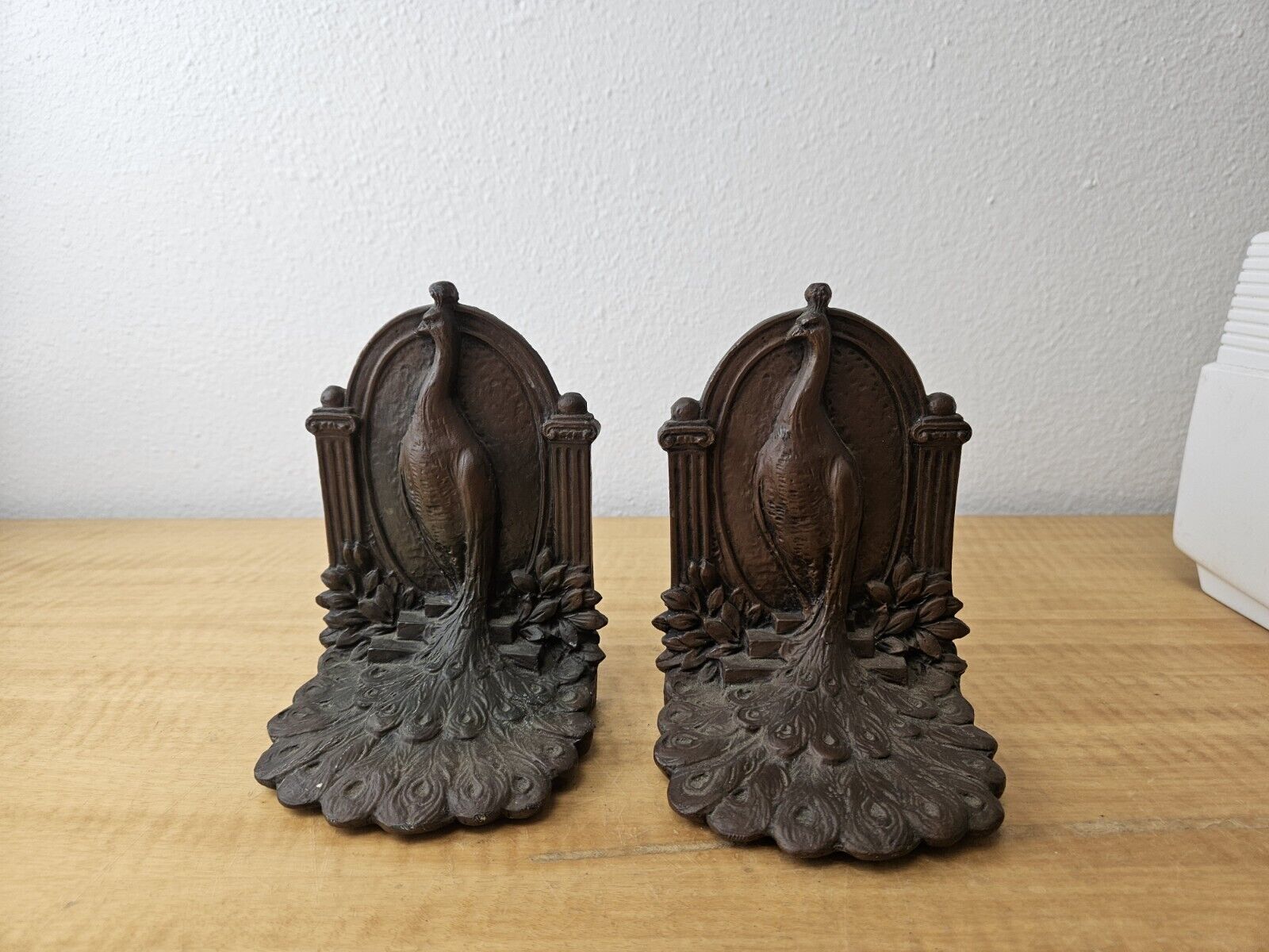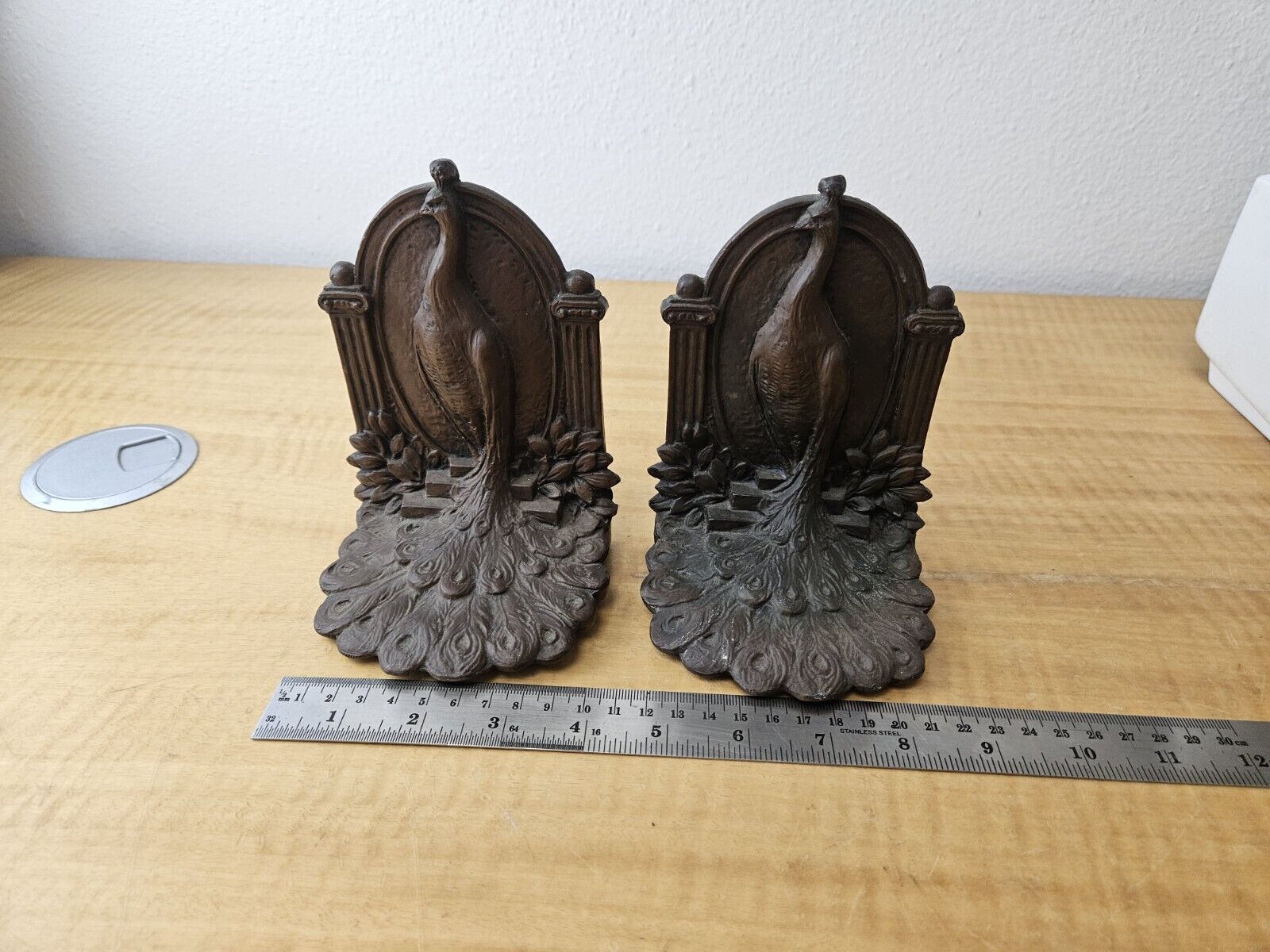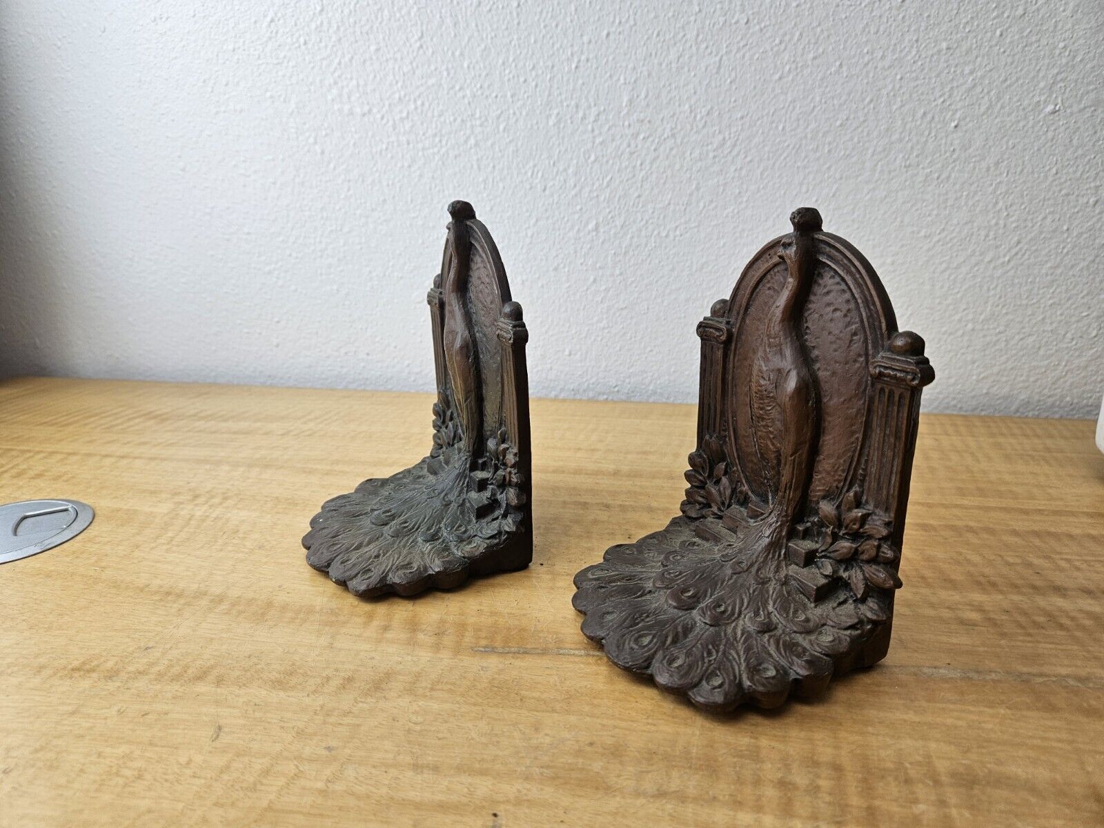 Pair of Weidlich Brothers W.B. marked 641 Peacock bookends bronze