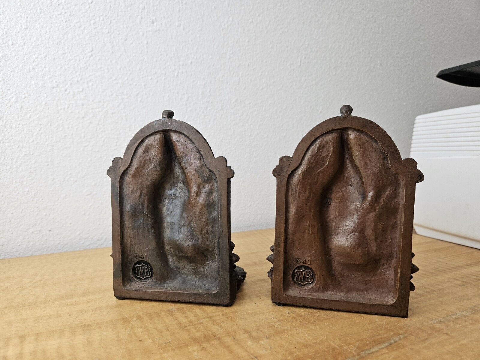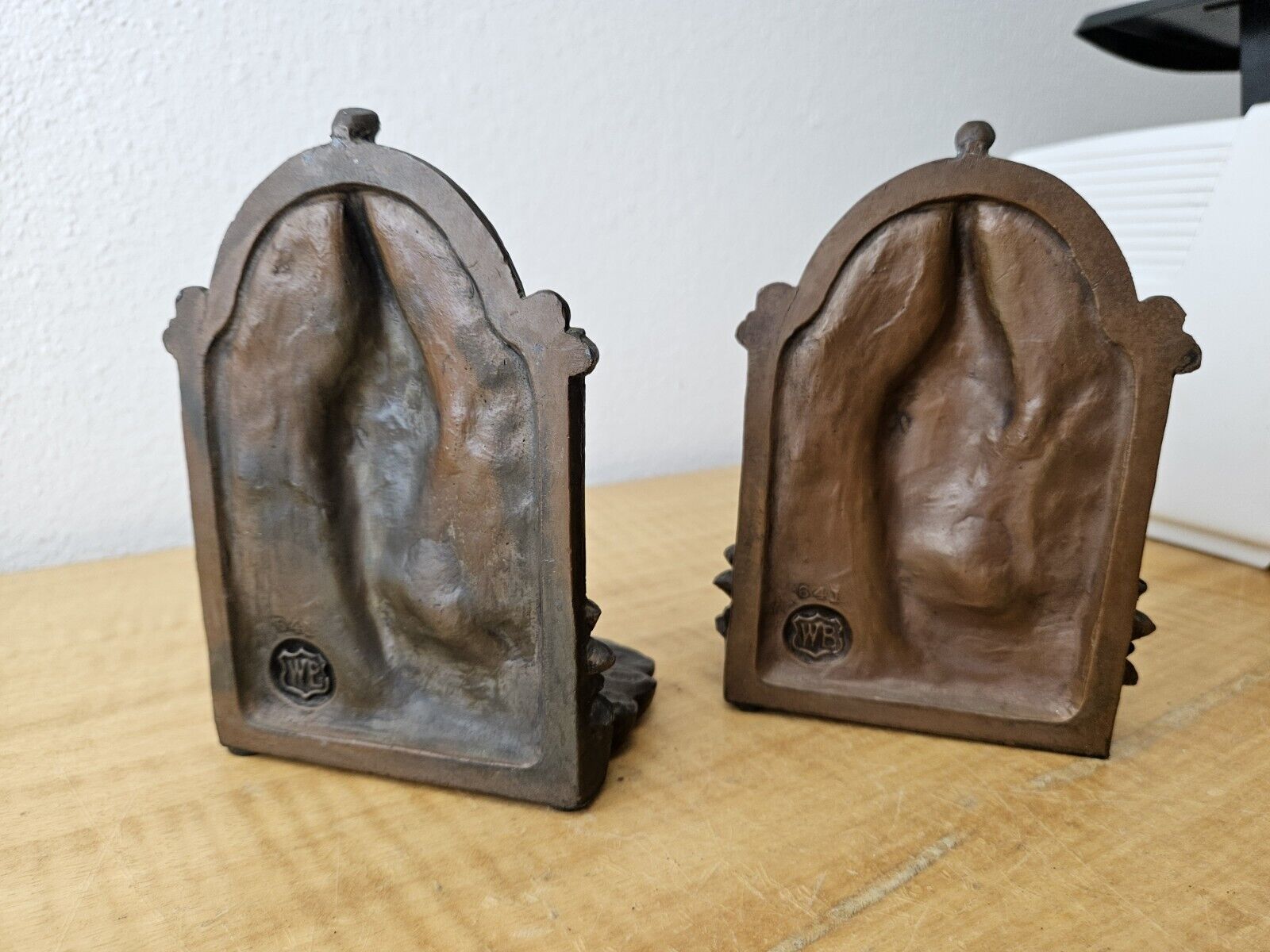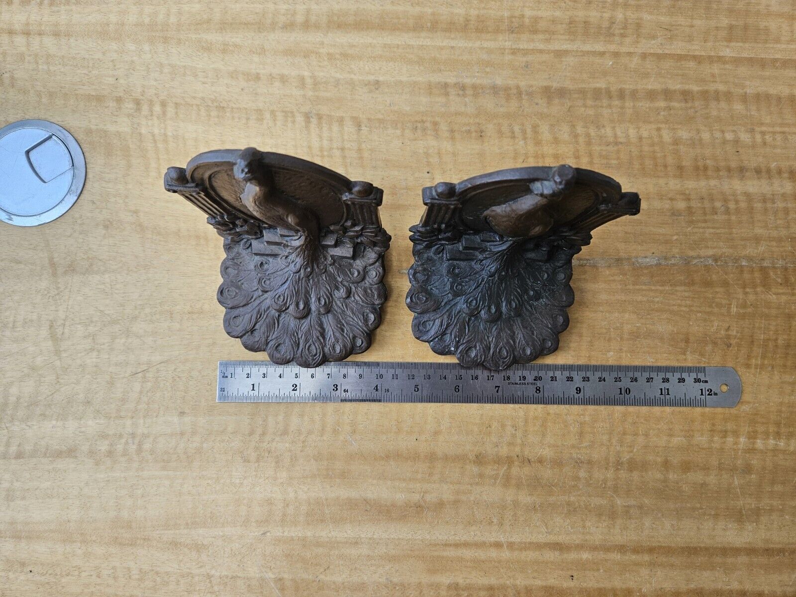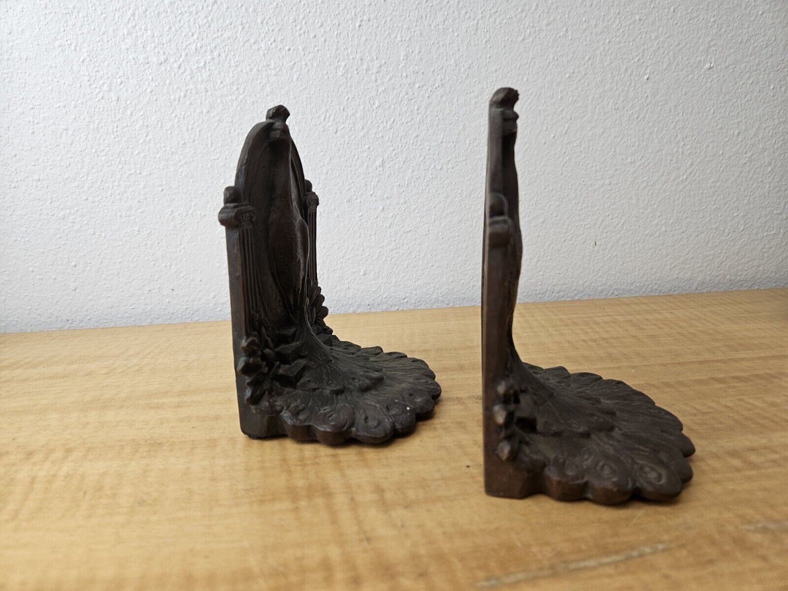 Pair of Weidlich Brothers W.B. marked 641 Peacock bookends bronze