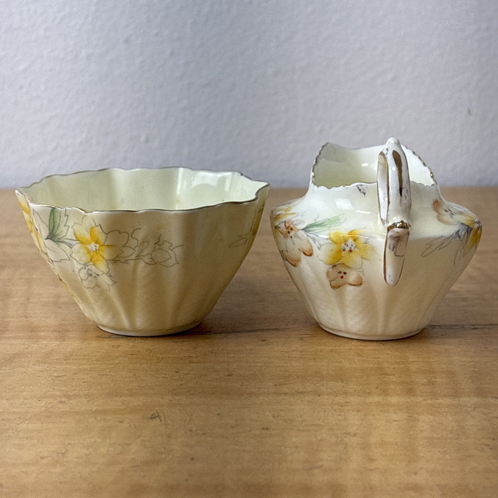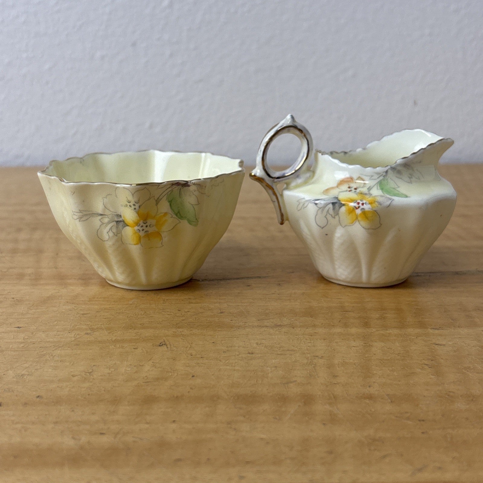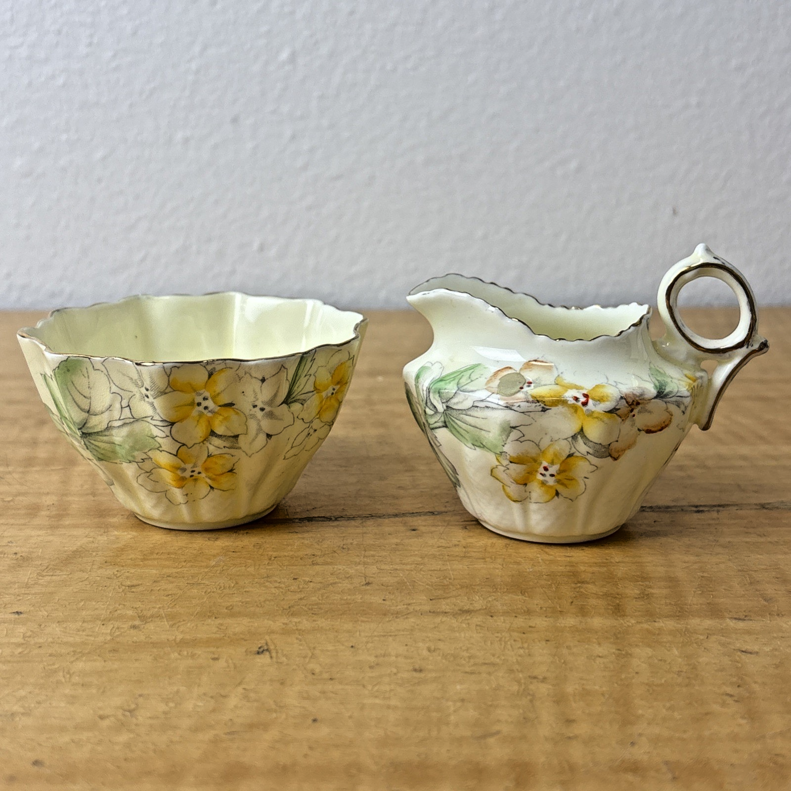 Paragon China 1930s Creamer and Sugar Set Floral Gold Trim