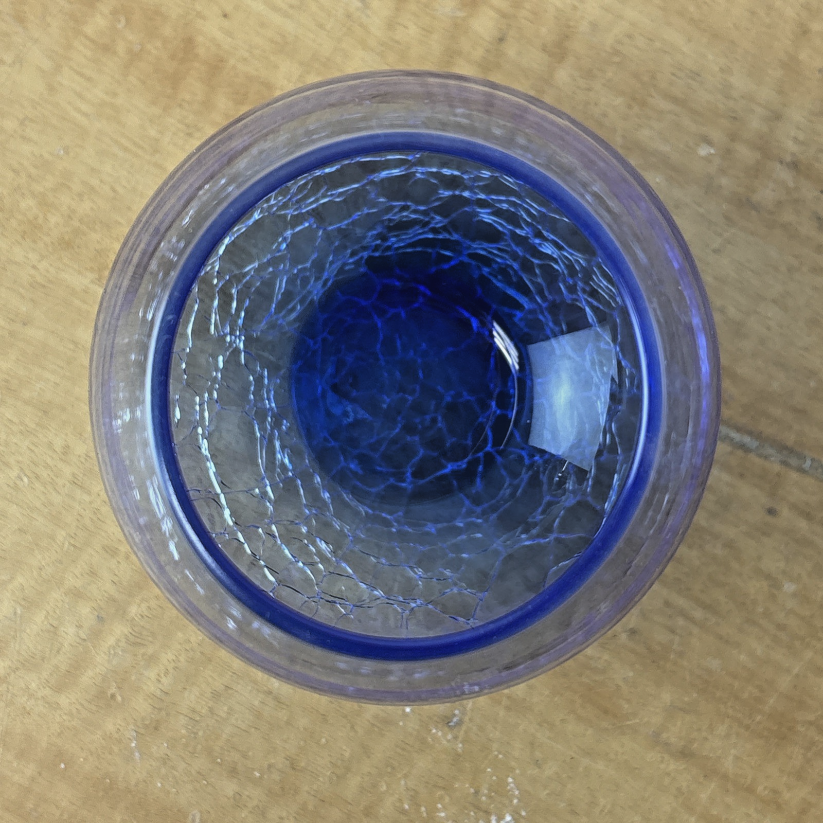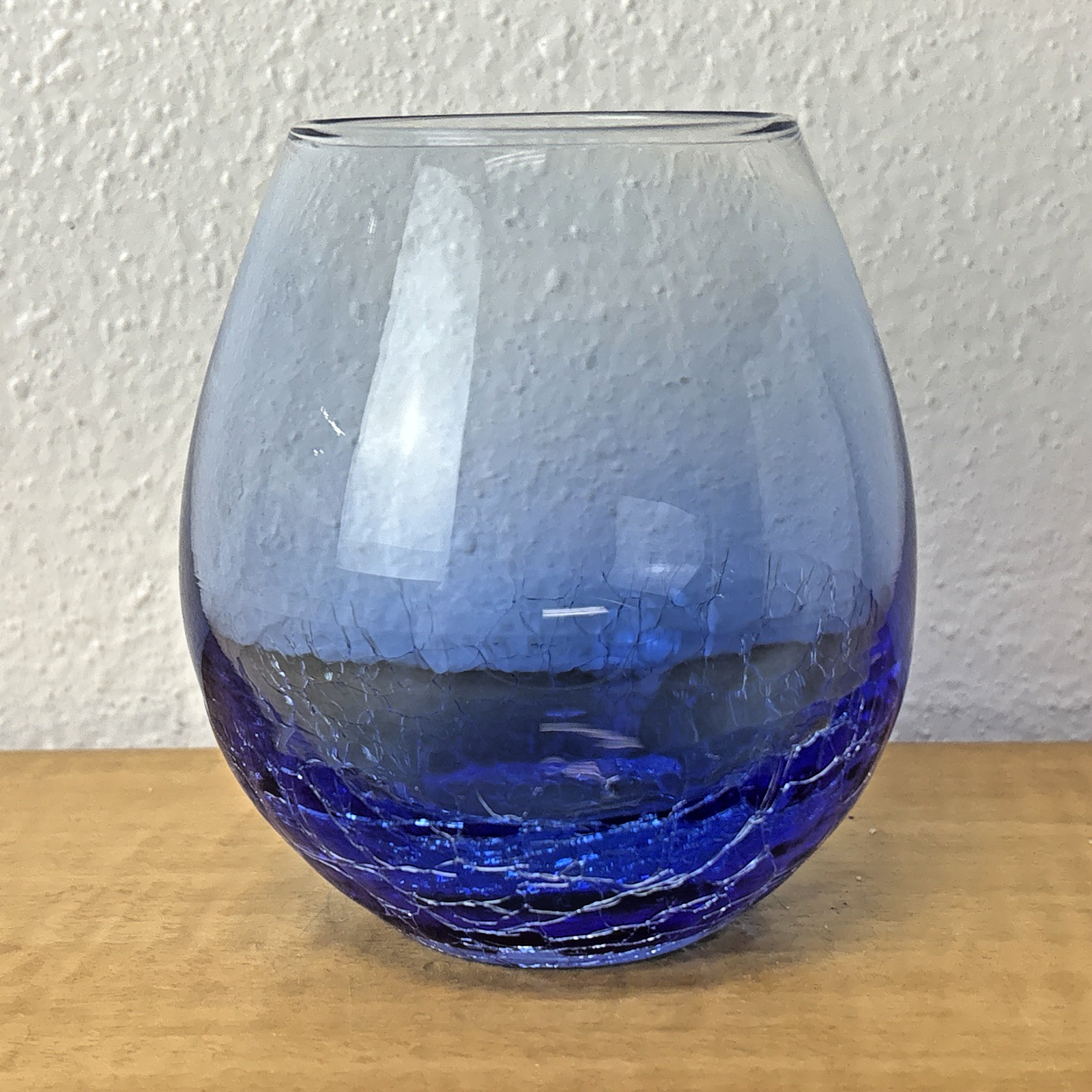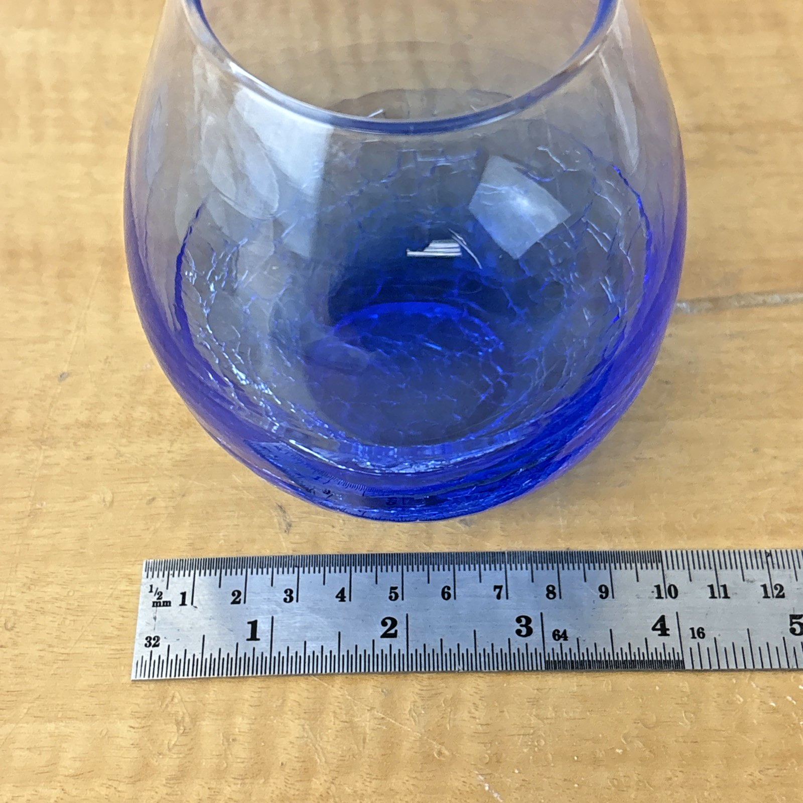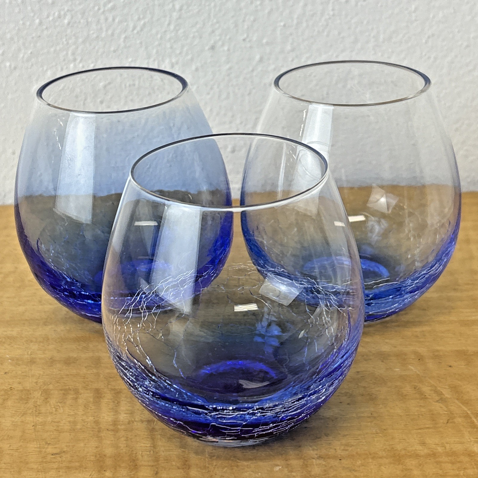 Pier 1 Crackle Blue Stemless Hand Blown Wine Glass ( 3 Available )