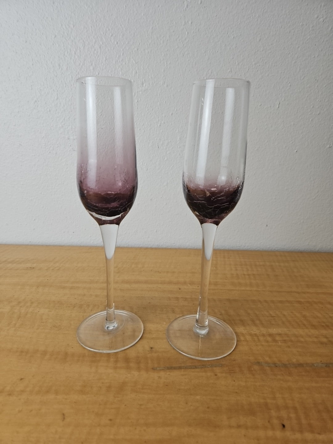 Pier 1 - Crackle Glass Purple Glasses Flutes 10" (2 avail)