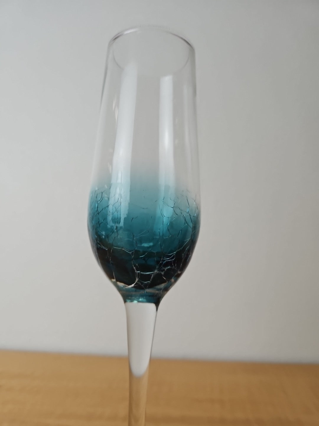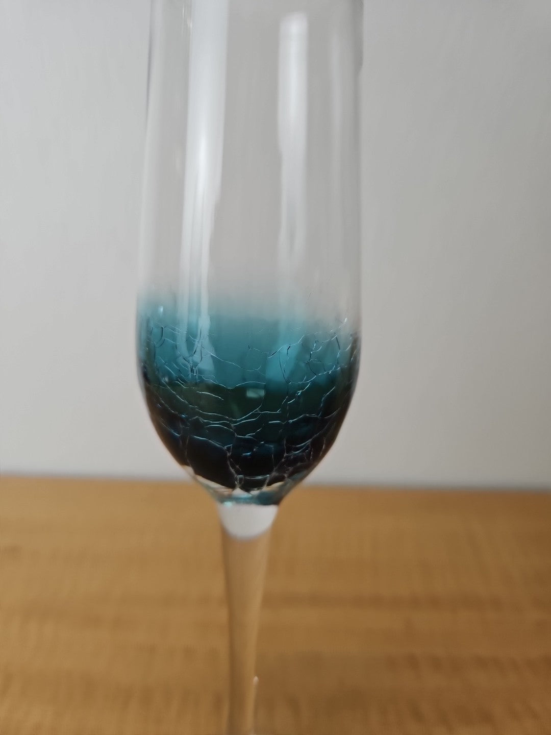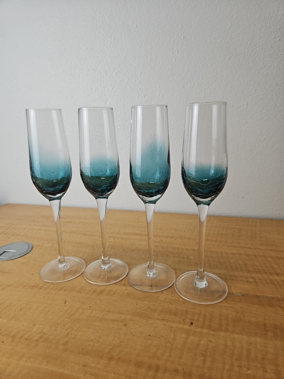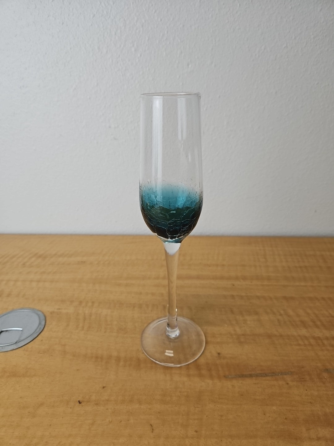 Pier 1 - Crackle Glass Teal Blue Glasses Flutes 10" (4 avail)