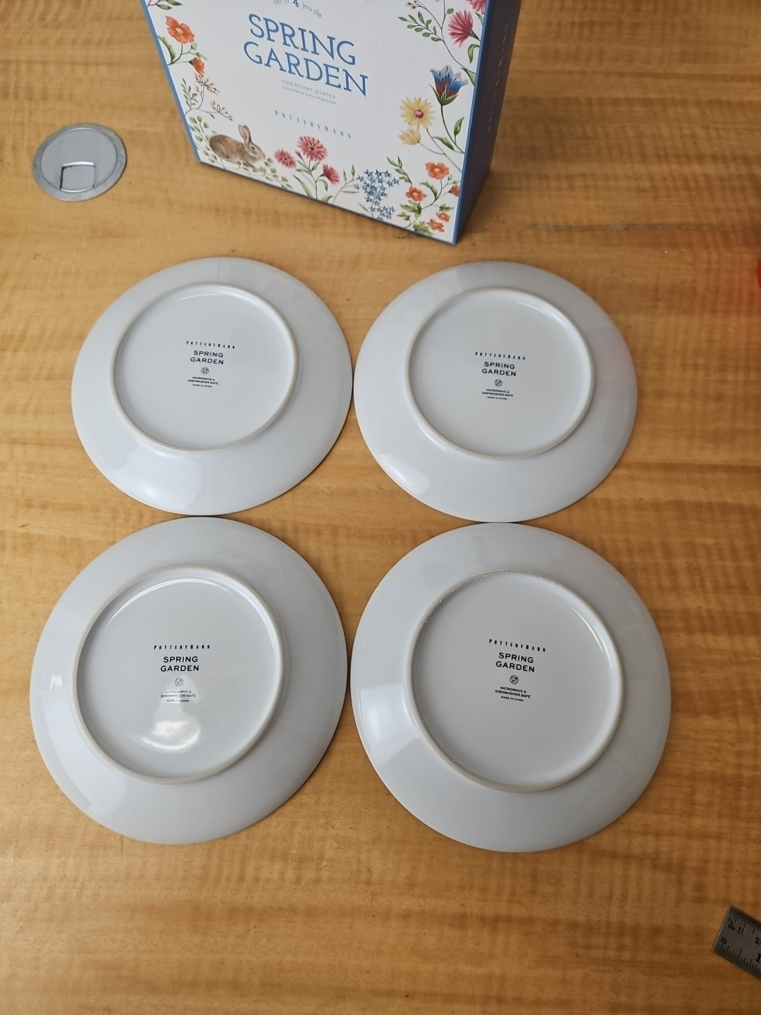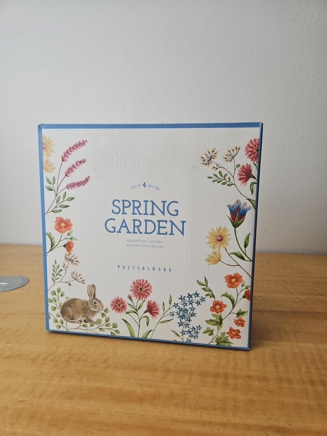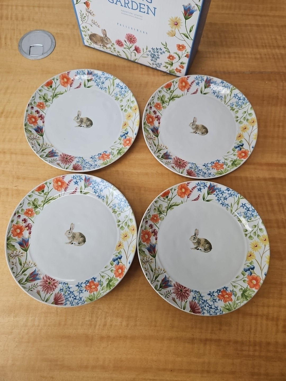 Pottery Barn Set of 4 Spring Garden Bunny Appetizer Plates Easter in box