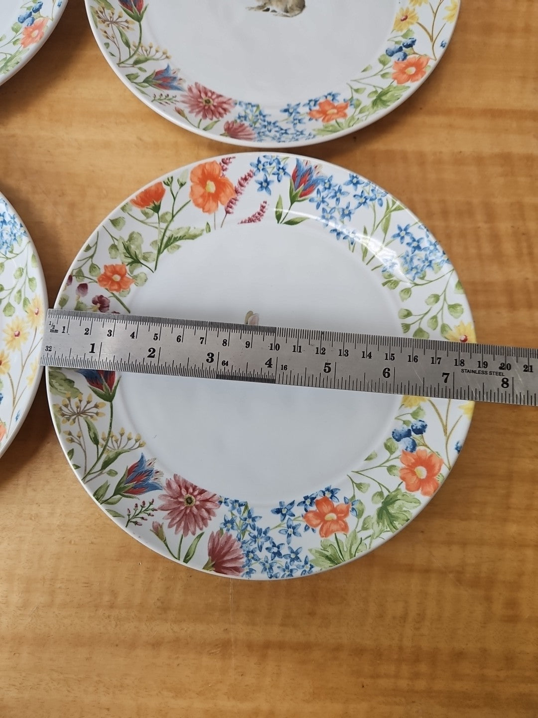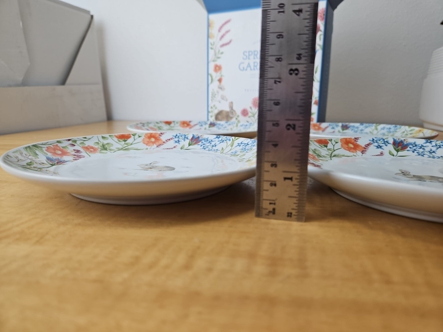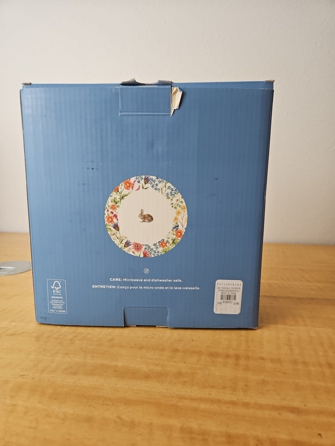 Pottery Barn Set of 4 Spring Garden Bunny Appetizer Plates Easter in box