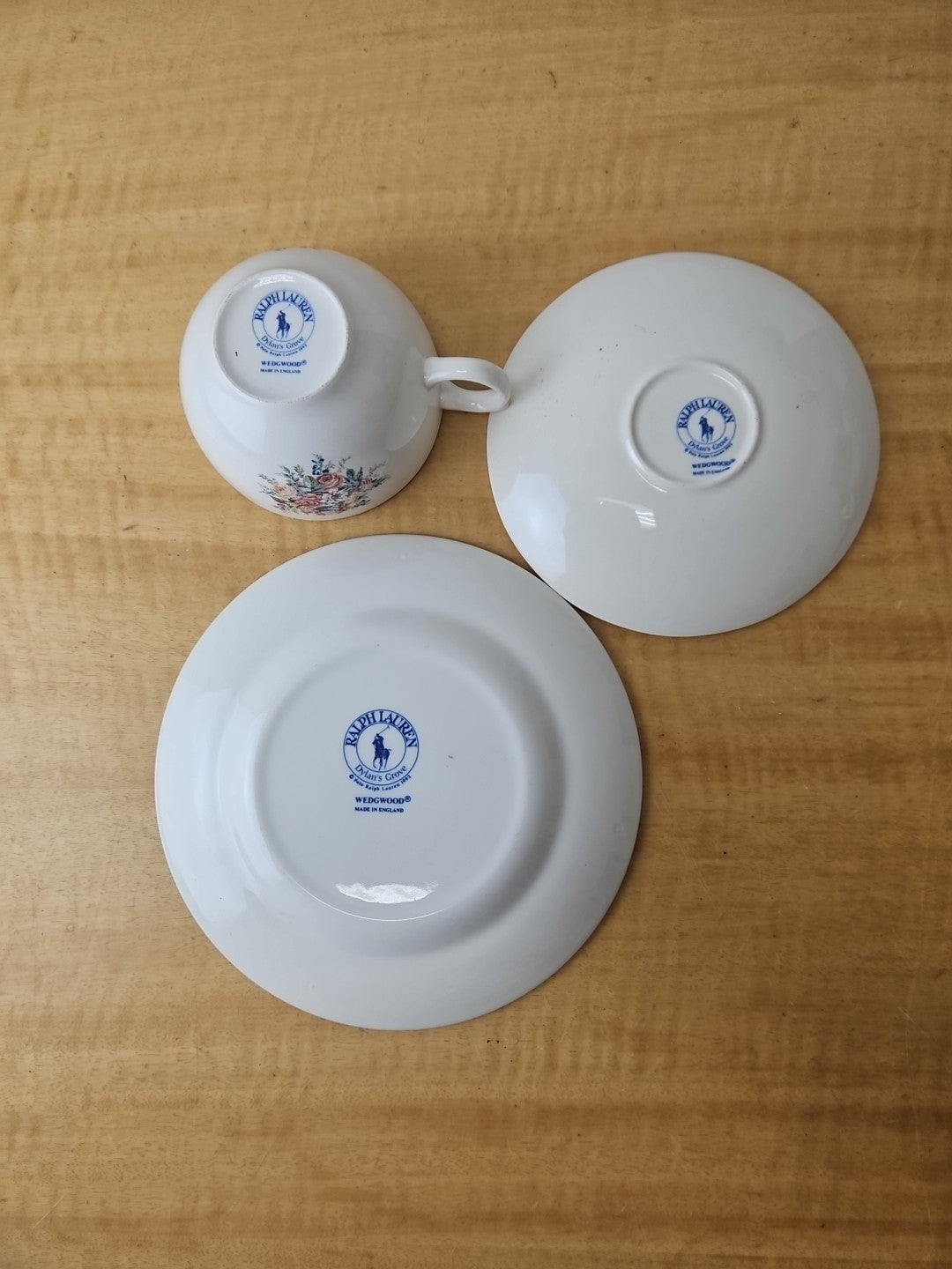 RALPH LAUREN WEDGWOOD DYLAN’S GROVE 3 piece set, cup, saucer, plate