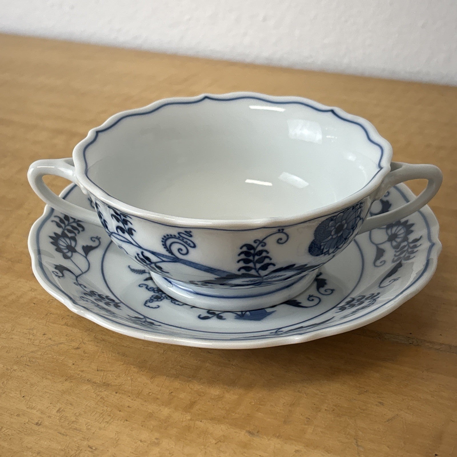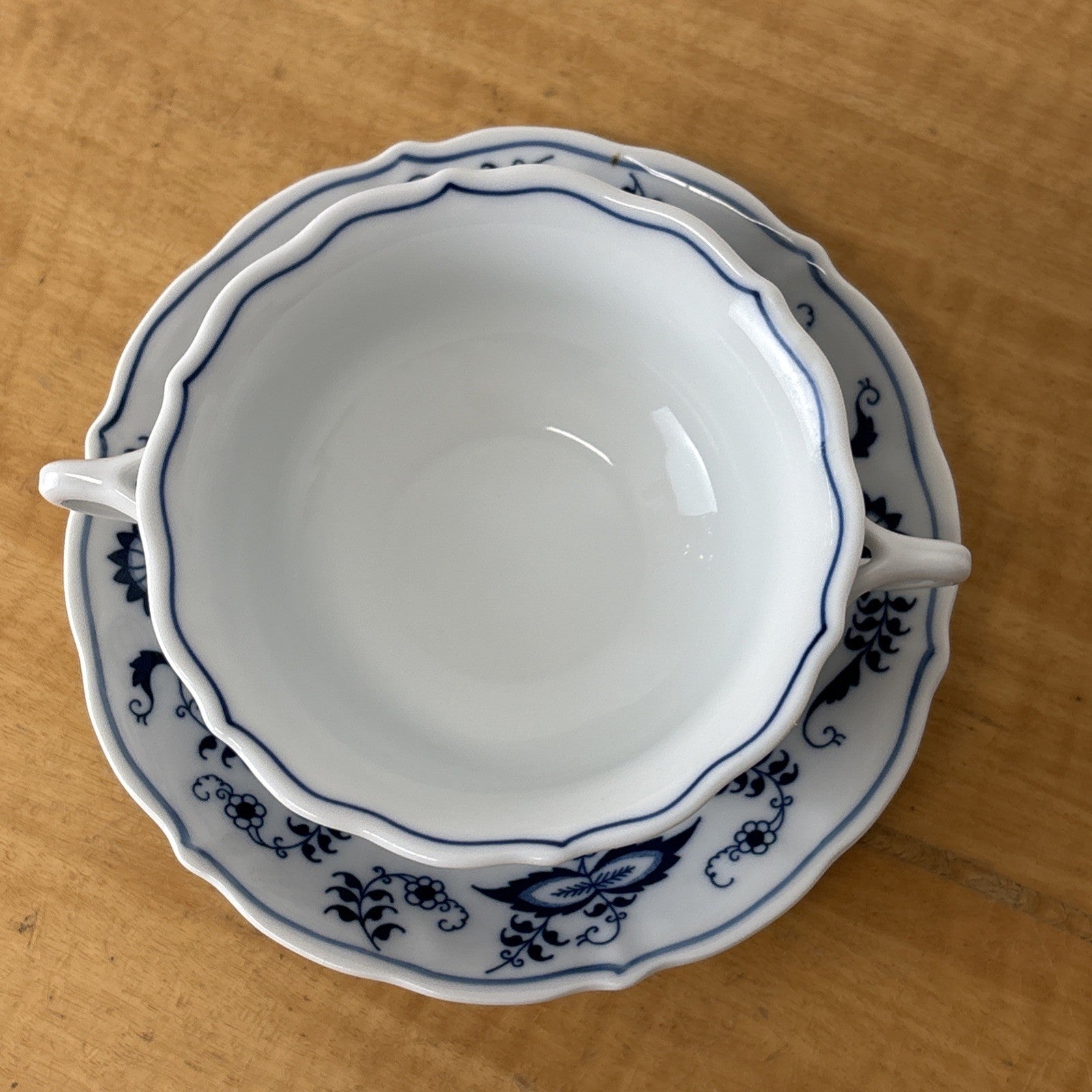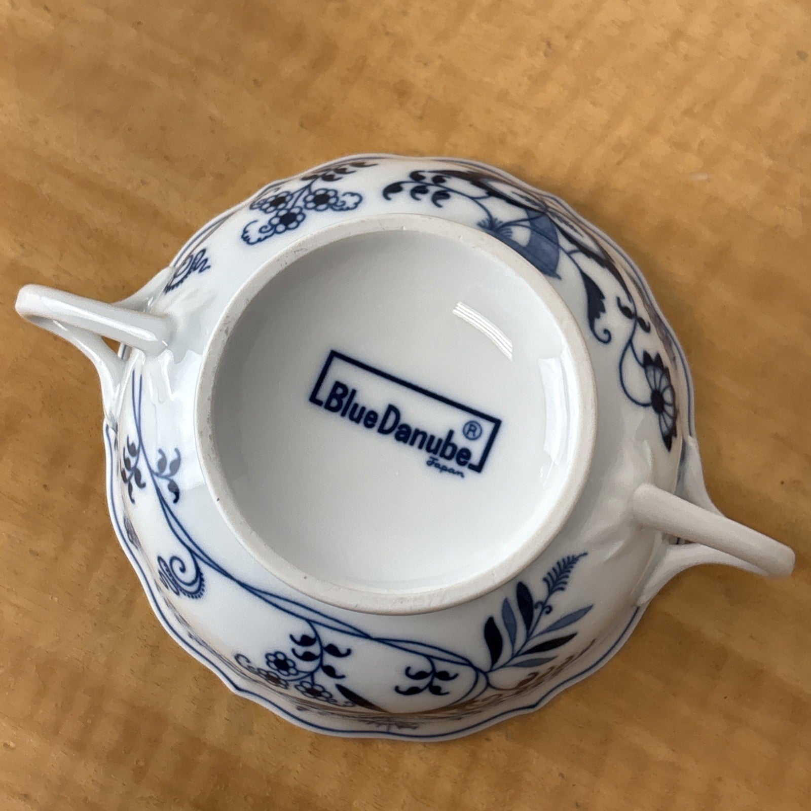 Rare Blue Danube Soup Bowl w/ Handles and Saucer / Underplate