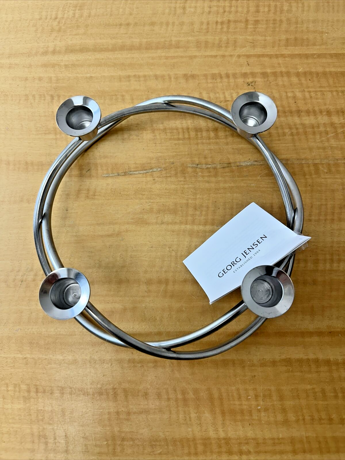 Rare Georg Jensen Seasons Candleholder Stainless Steel, Maria Berntsen 10"