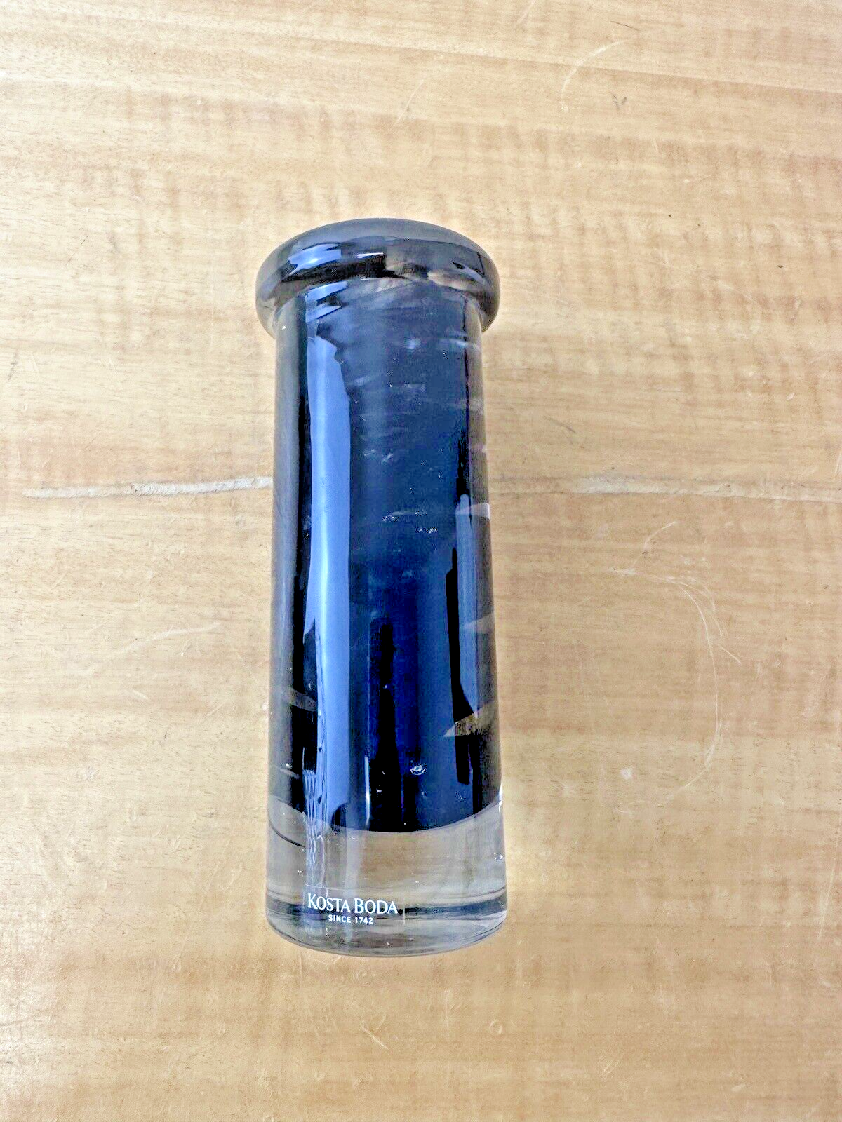 Rare KOSTA BODA Art Glass Candle Holder, Clear/Black