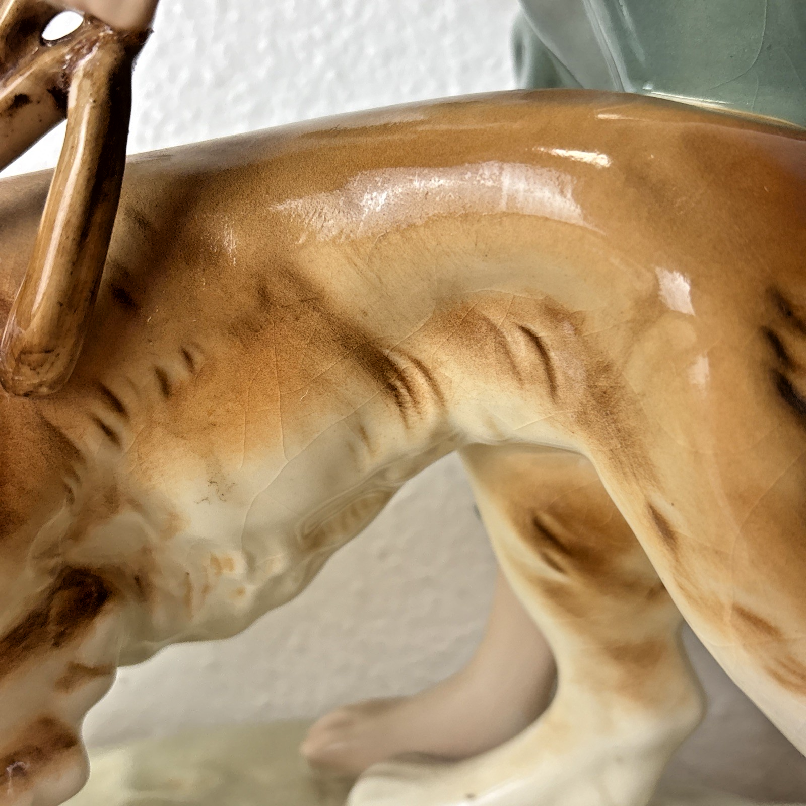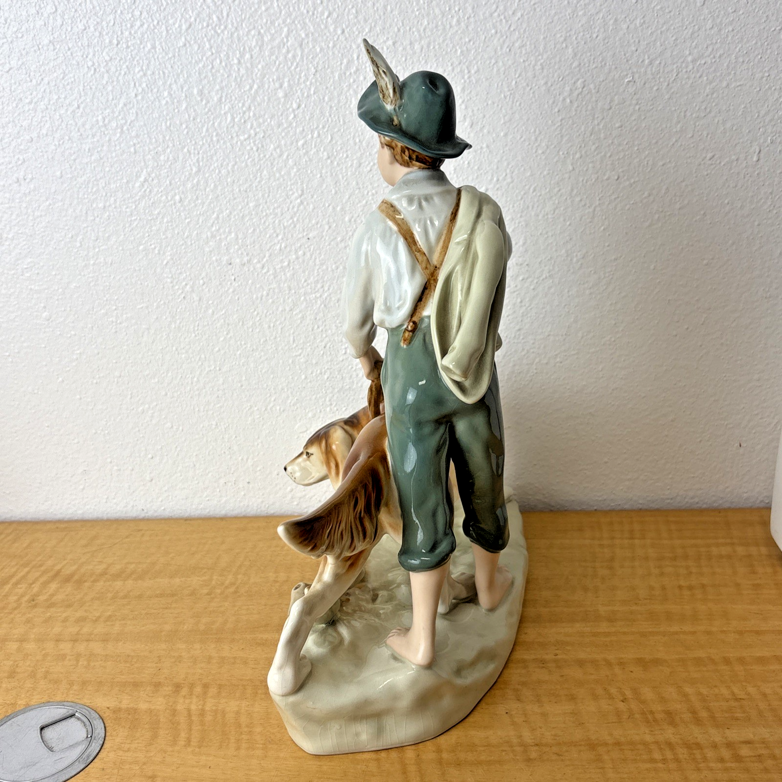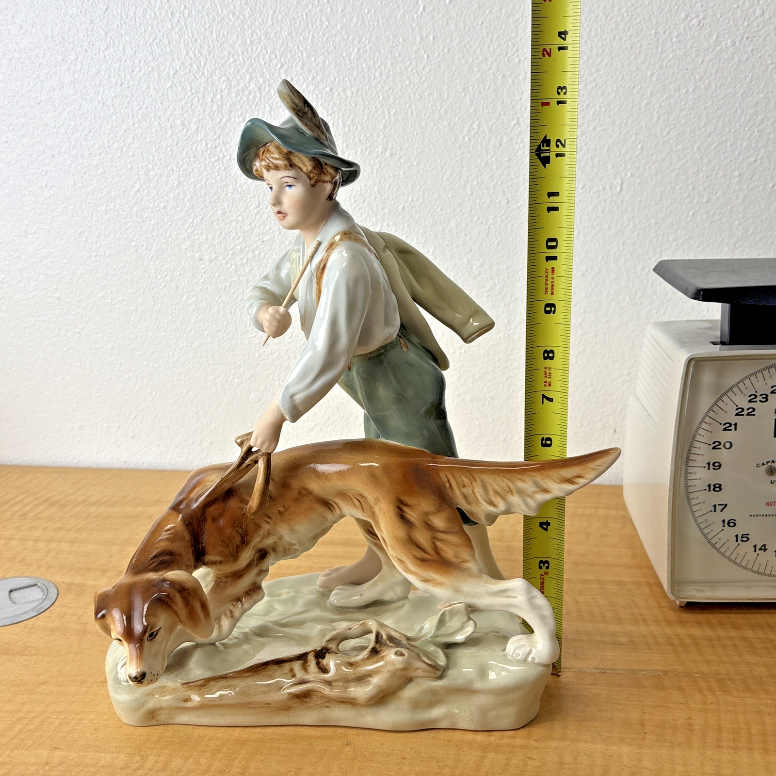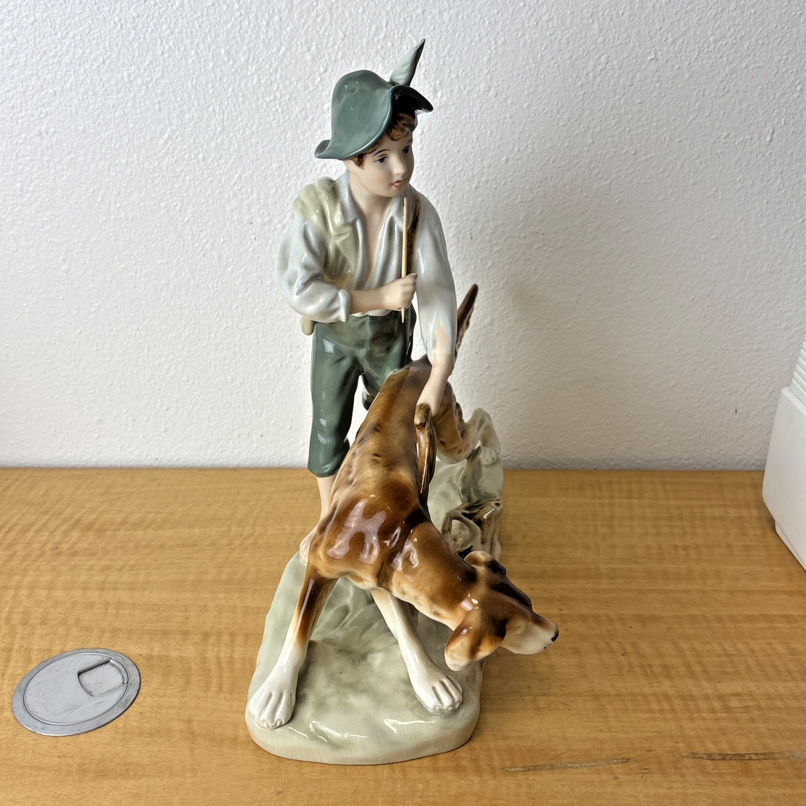 RARE Large Royal Dux Boy with Hound Golden Retriever Czech Republic Hand Painted