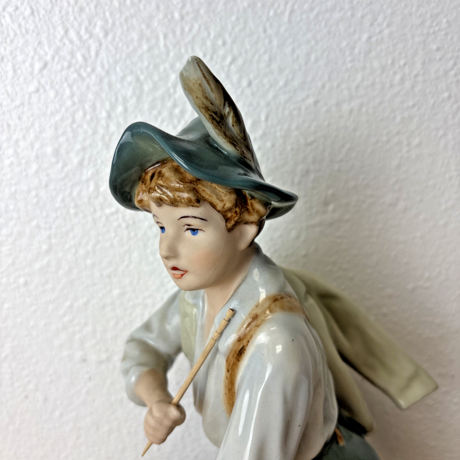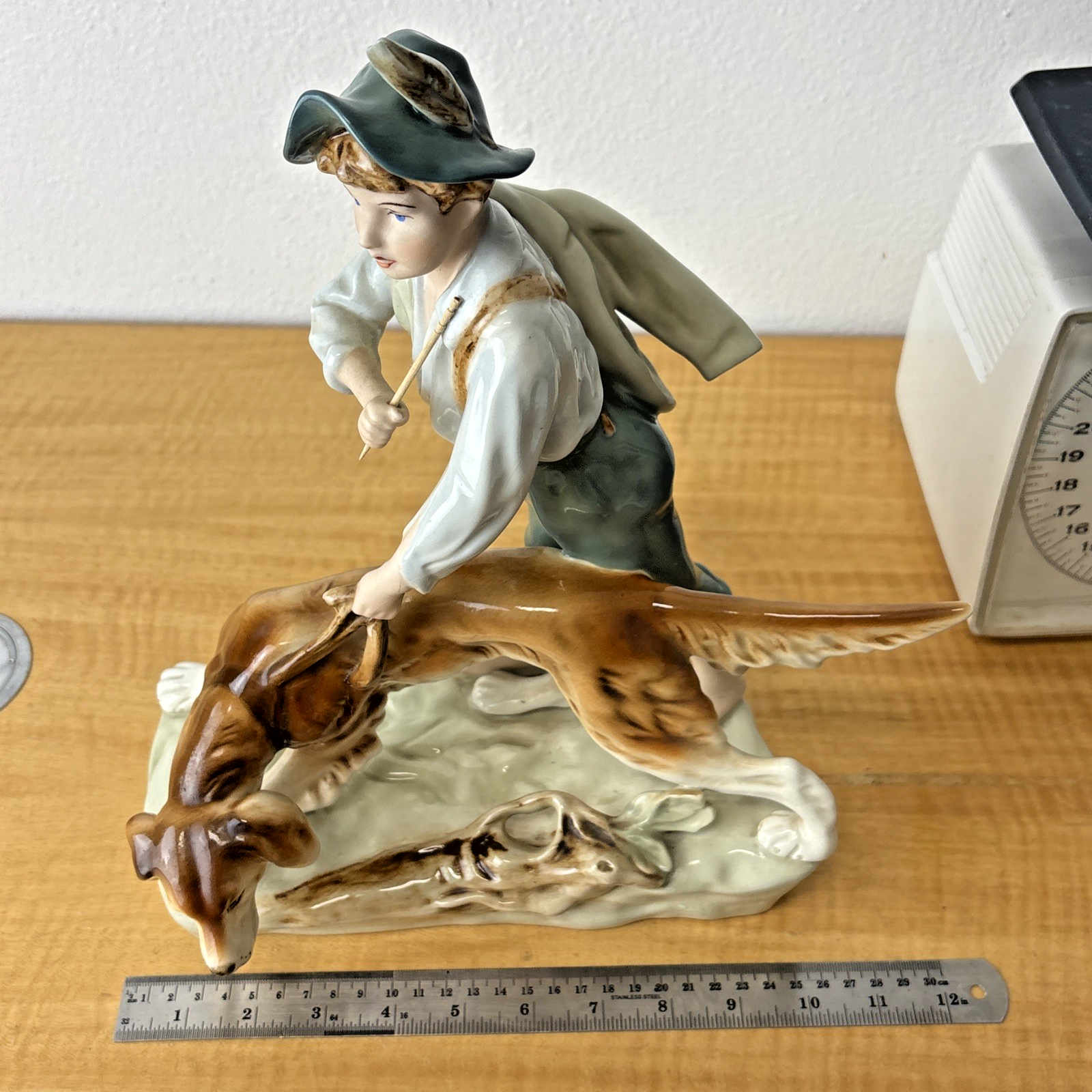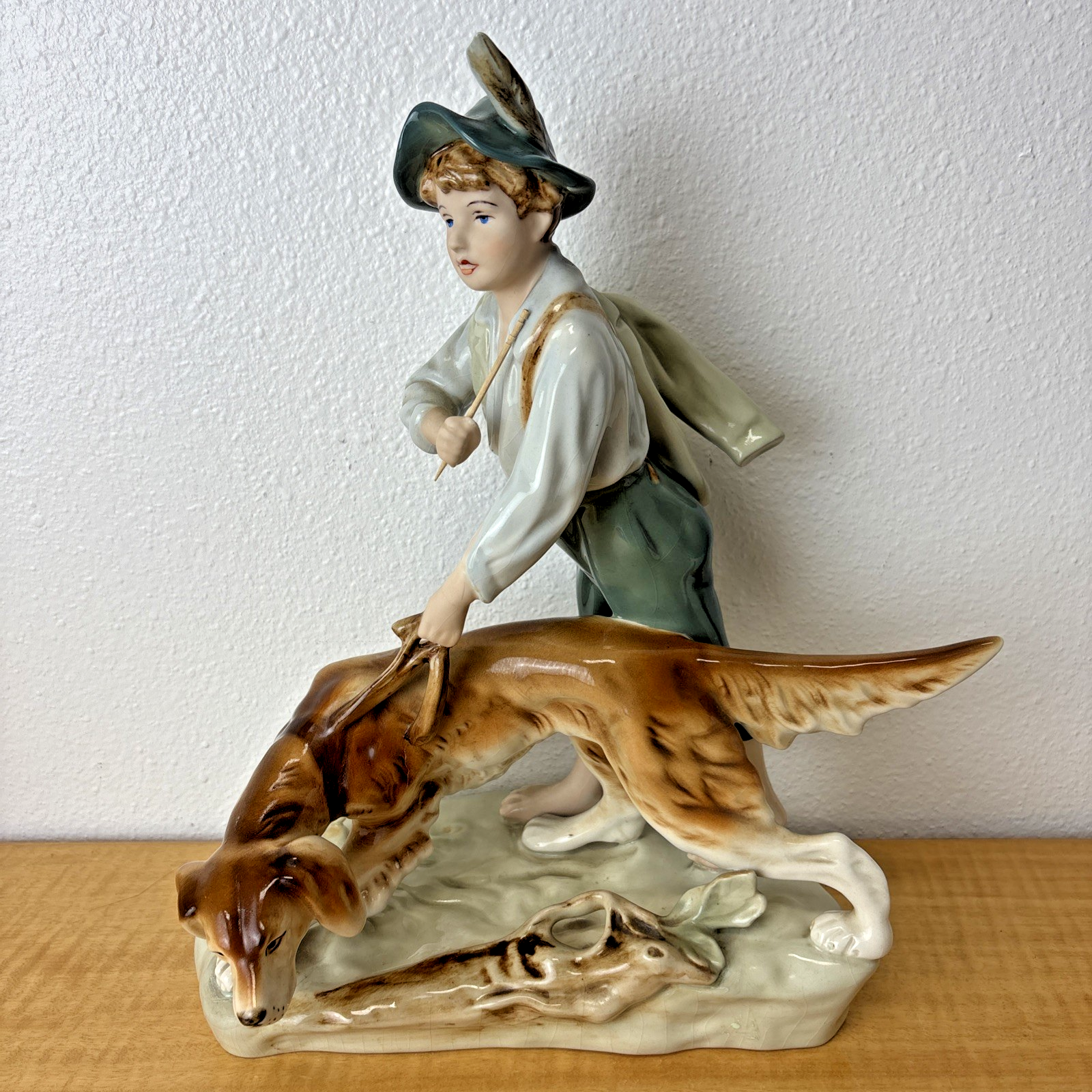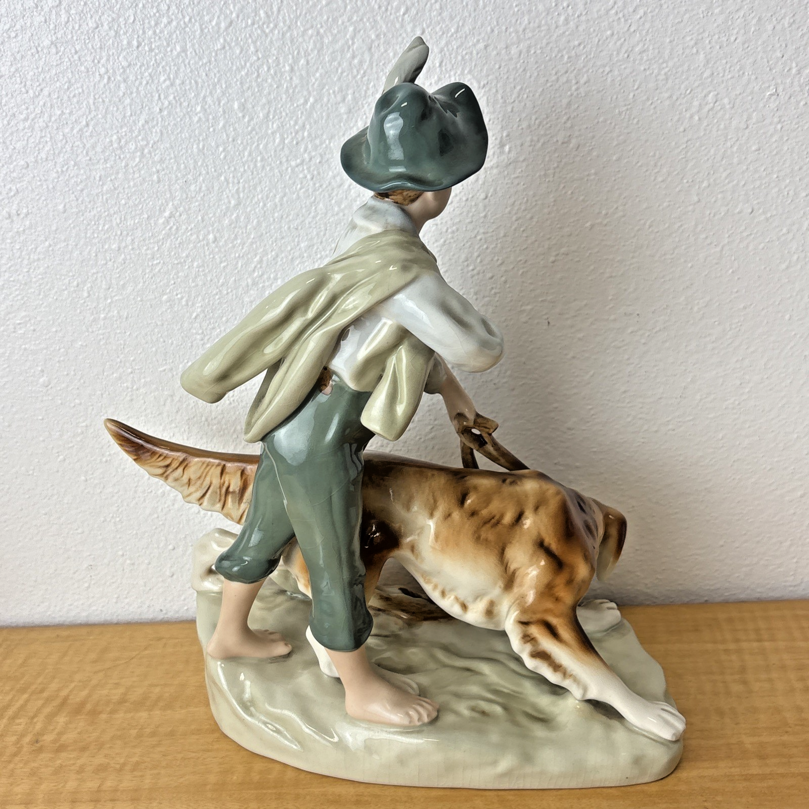 RARE Large Royal Dux Boy with Hound Golden Retriever Czech Republic Hand Painted