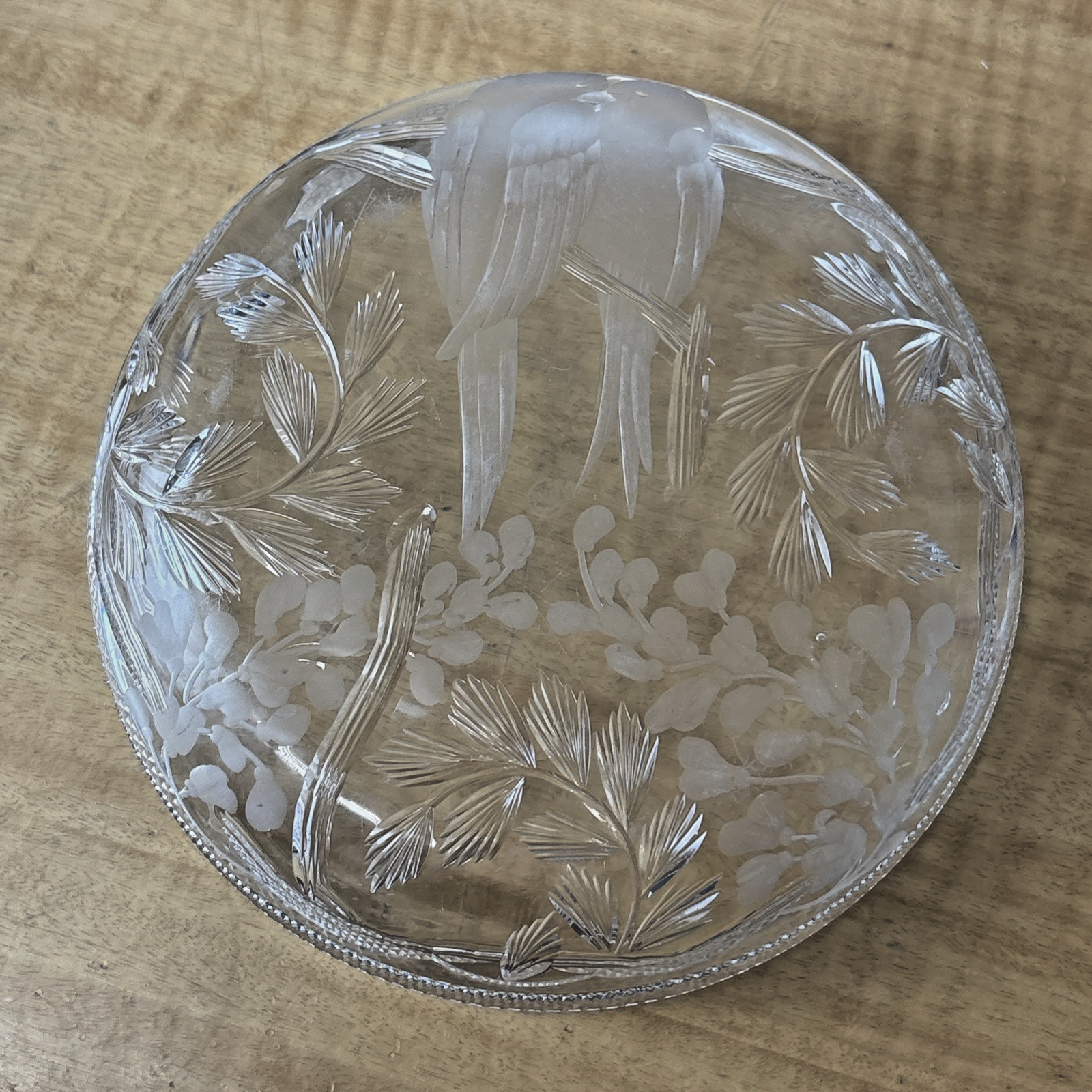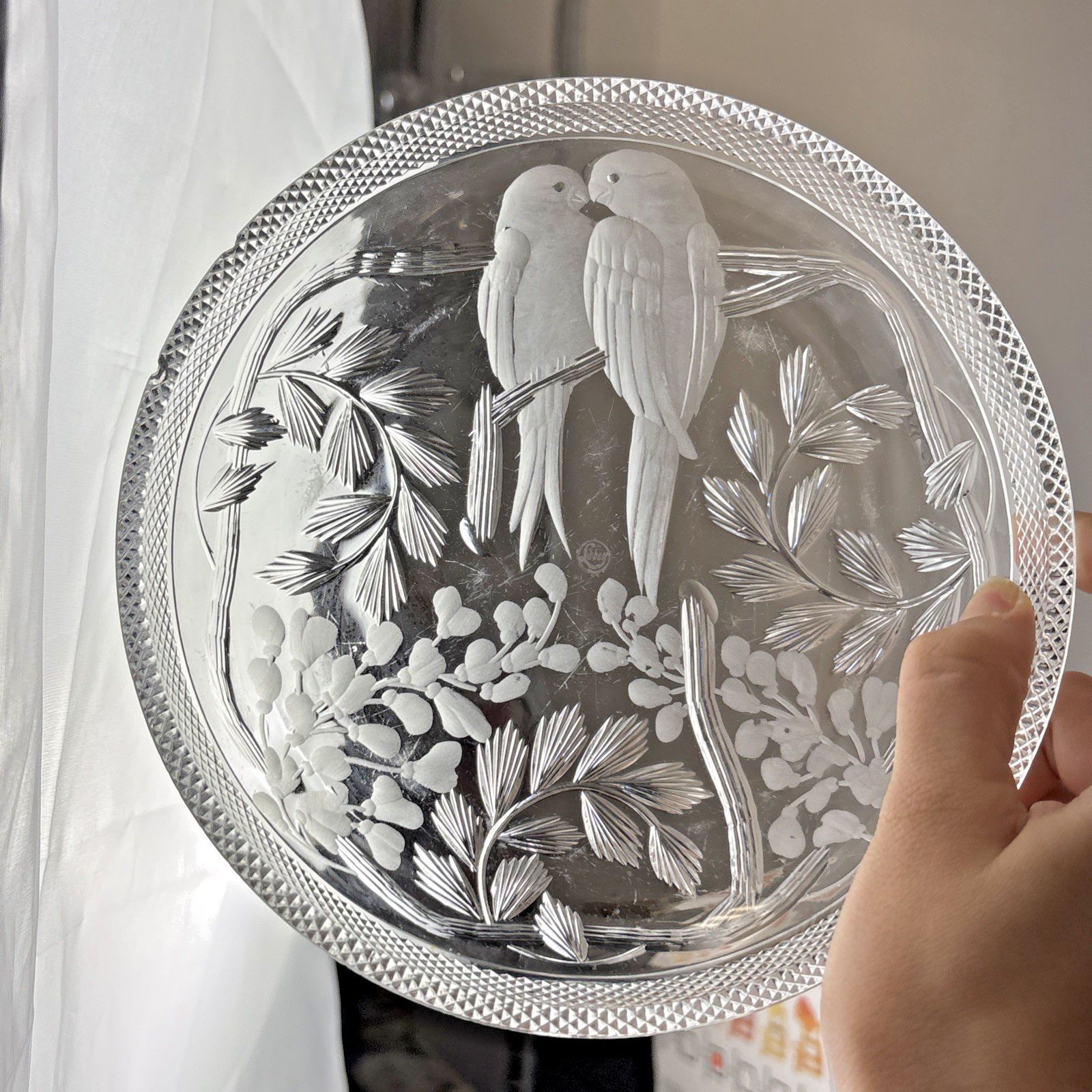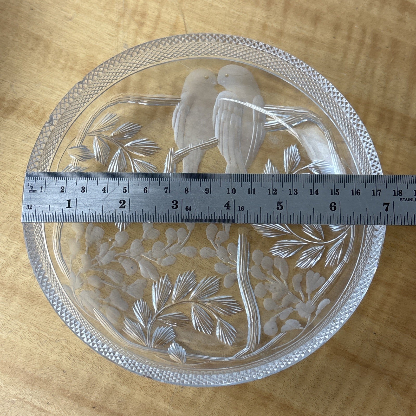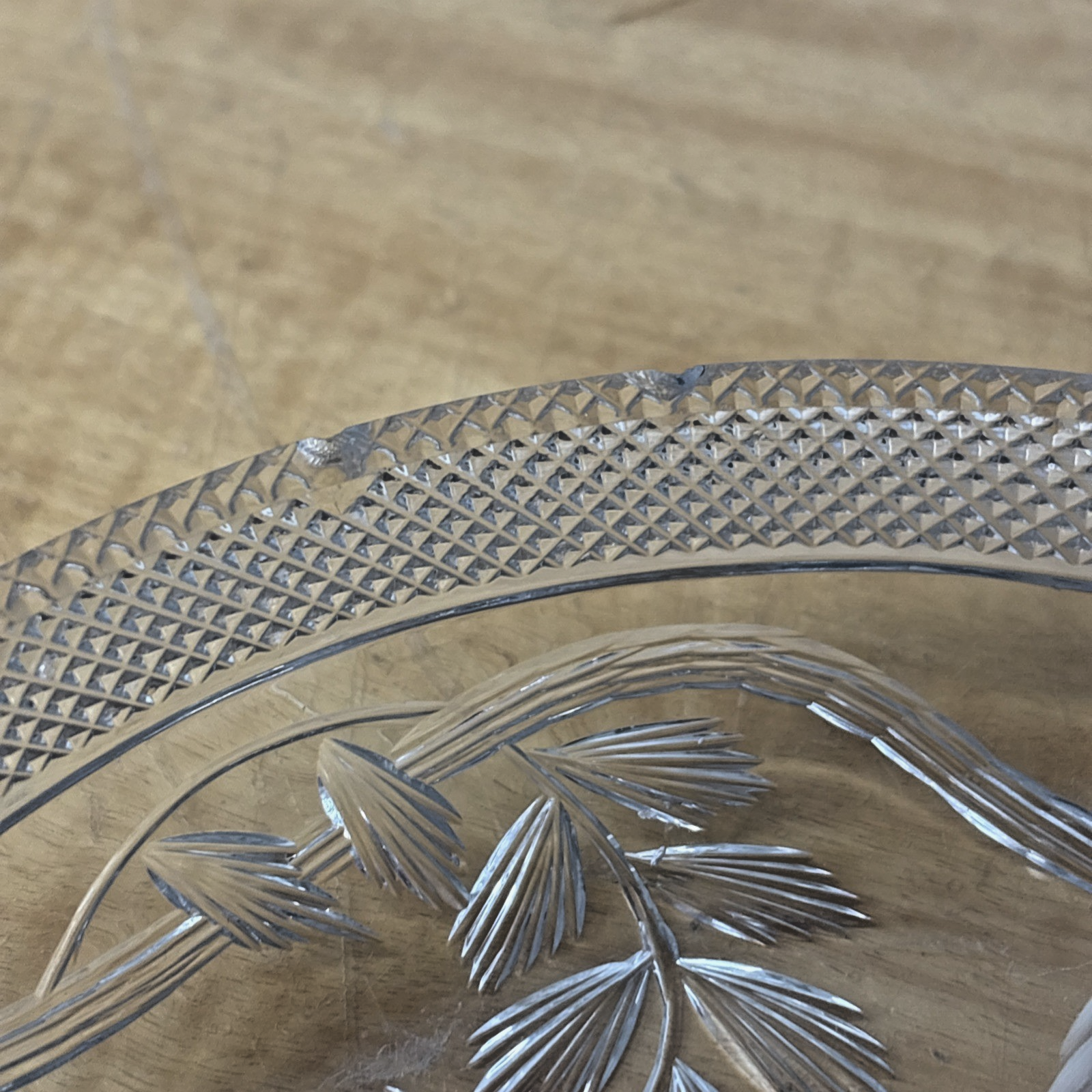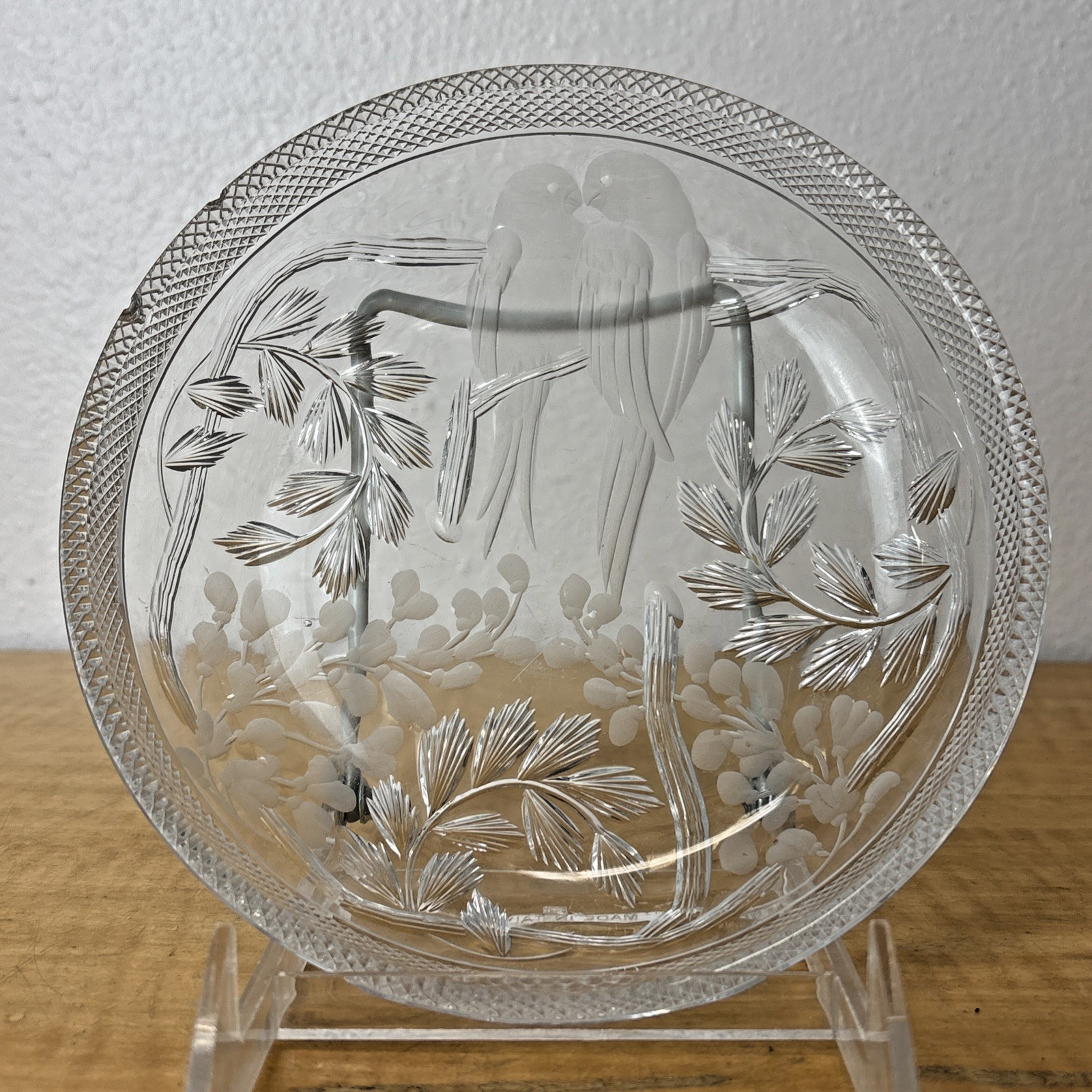 Rare Signed Libbey Intaglio Wisteria Shallow ABP Cut Glass Crystal Bowl